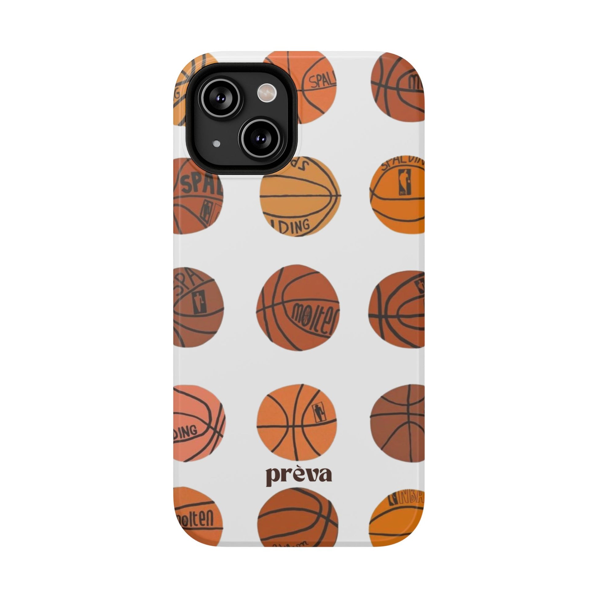This impact-resistant phone case brings playful basketball energy to your everyday carry. Built with a rigid polycarbonate exterior and a flexible TPU inner layer, it absorbs knocks and shields your phone from scratches while showing off a repeating pattern of hand-drawn basketballs in warm, vintage orange and brown hues. The full-wrap print keeps the design continuous across edges, and you can choose a glossy shine or muted matte finish to match your style. Thin enough to support wireless charging and made for newer iPhone models (including iPhone 17 series), it’s a protective, stylish layer that fits into the rhythm of active, design-minded lives.