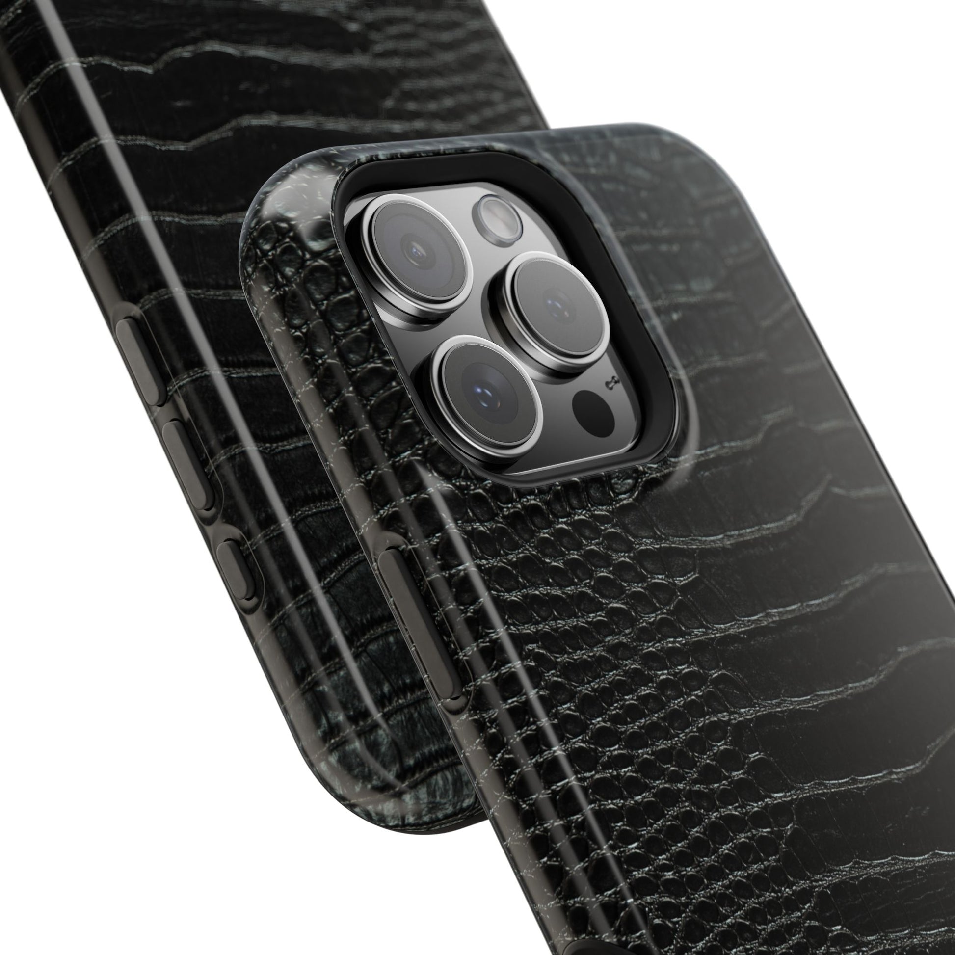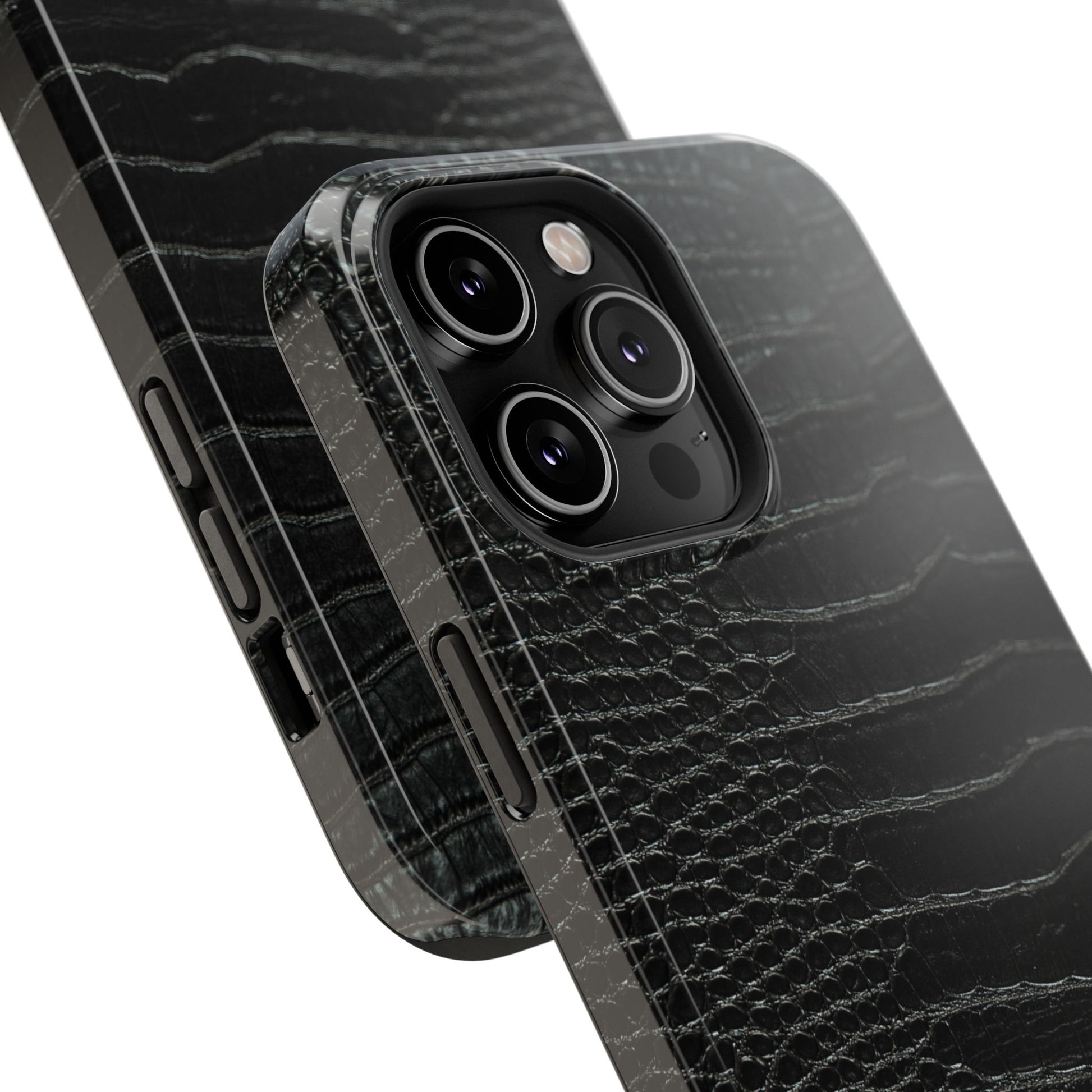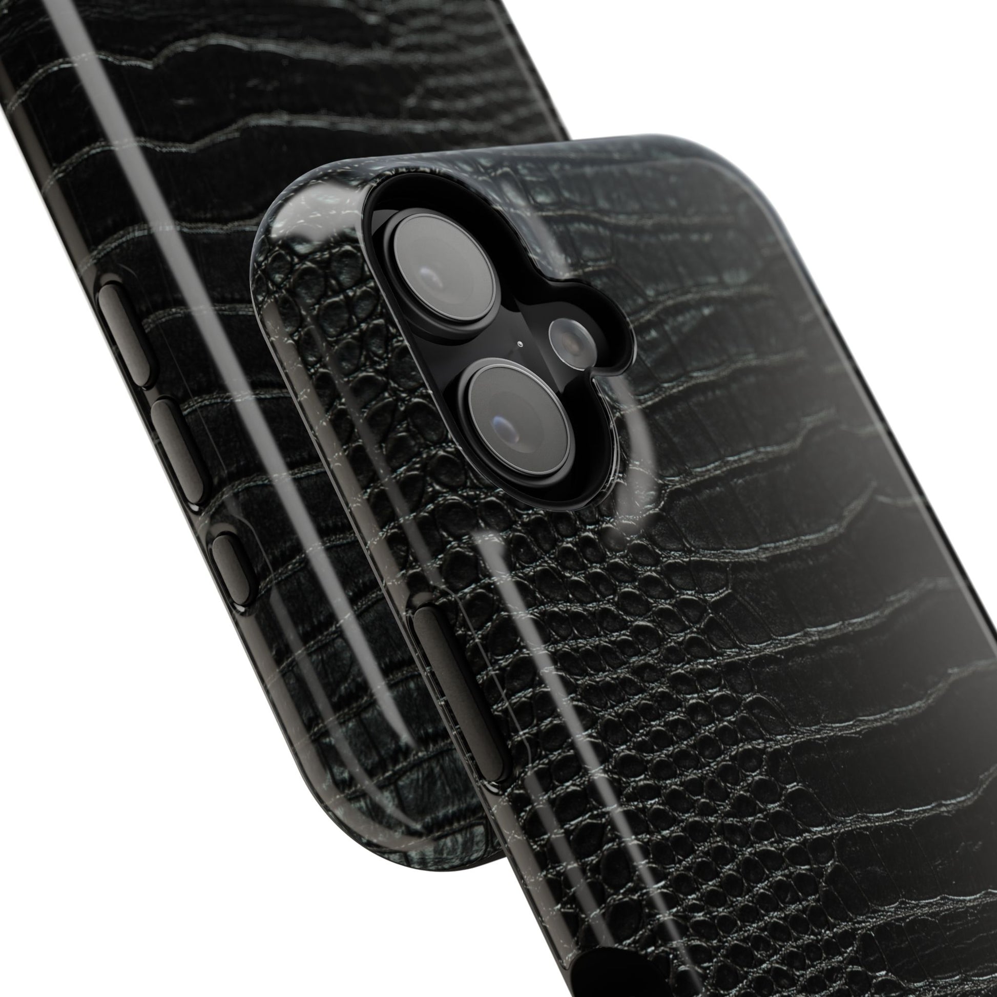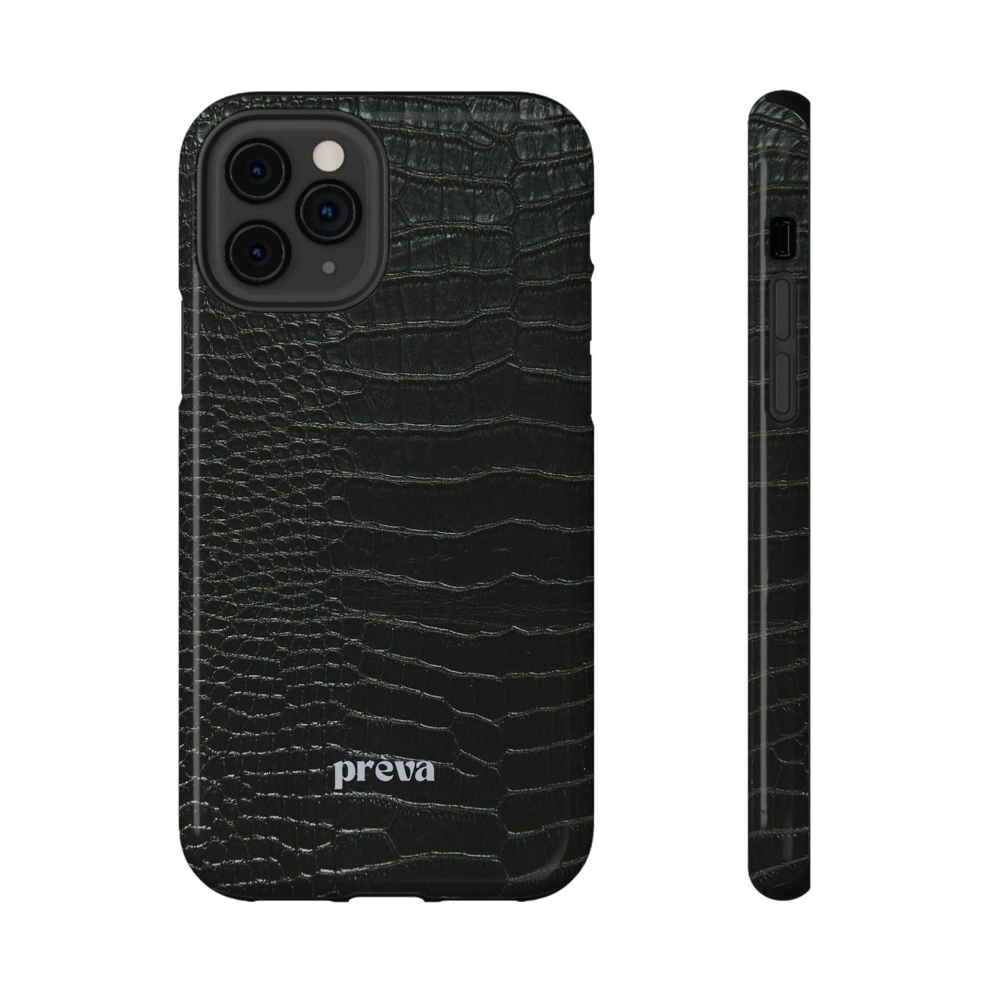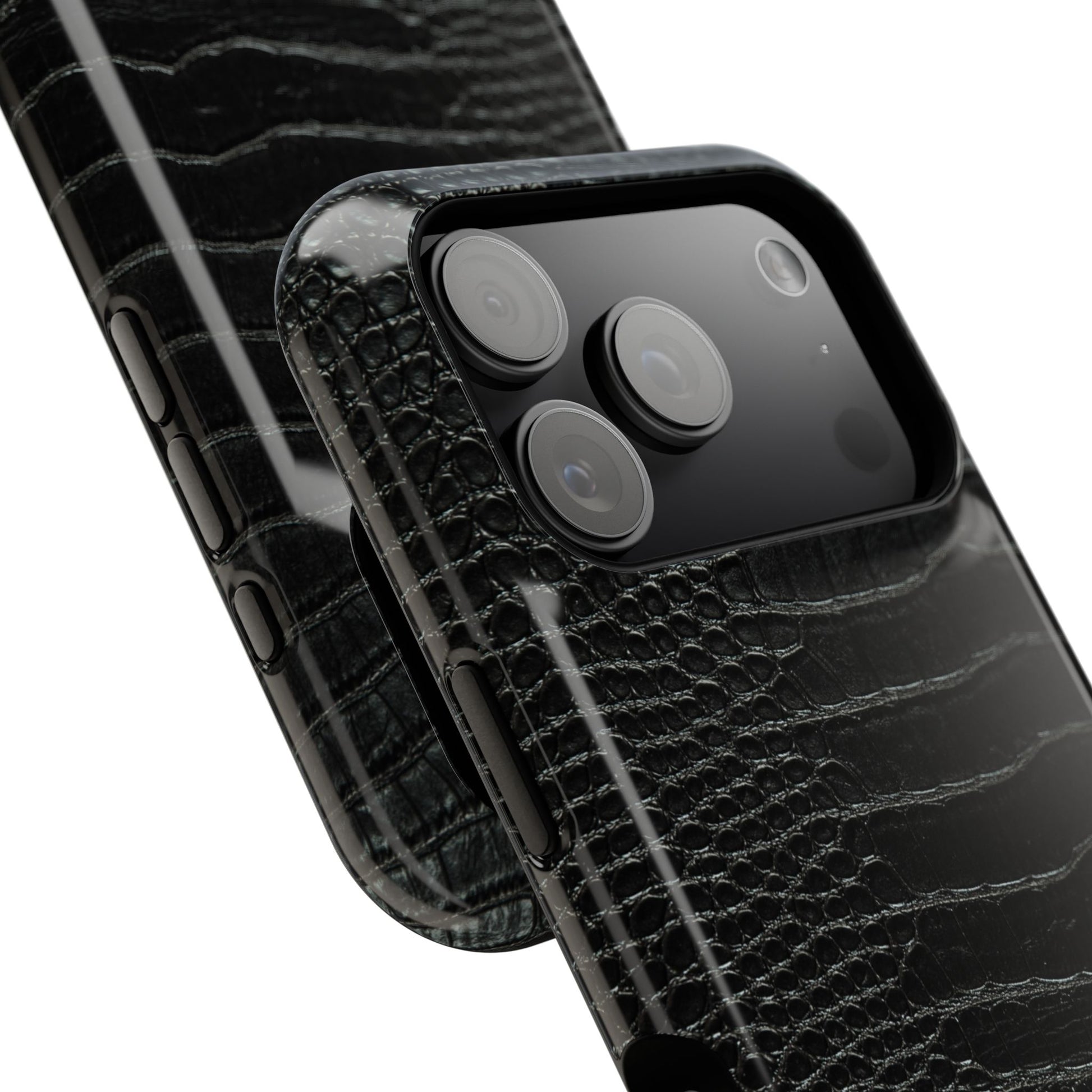 This slim, impact-resistant phone case brings understated luxury to everyday carry. The black crocodile-embossed finish reads like wearable leather, while the dual-layer construction—rigid polycarbonate shell with a removable TPU liner—gives confidence against drops and scuffs. Full-wrap printing keeps the textured pattern seamless around edges. Choose a glossy sheen for a sleek, reflective look or a matte finish for muted sophistication. It’s crafted for tactile grip, supports wireless charging, and fits the latest iPhone models so your device looks refined and stays protected without bulk.