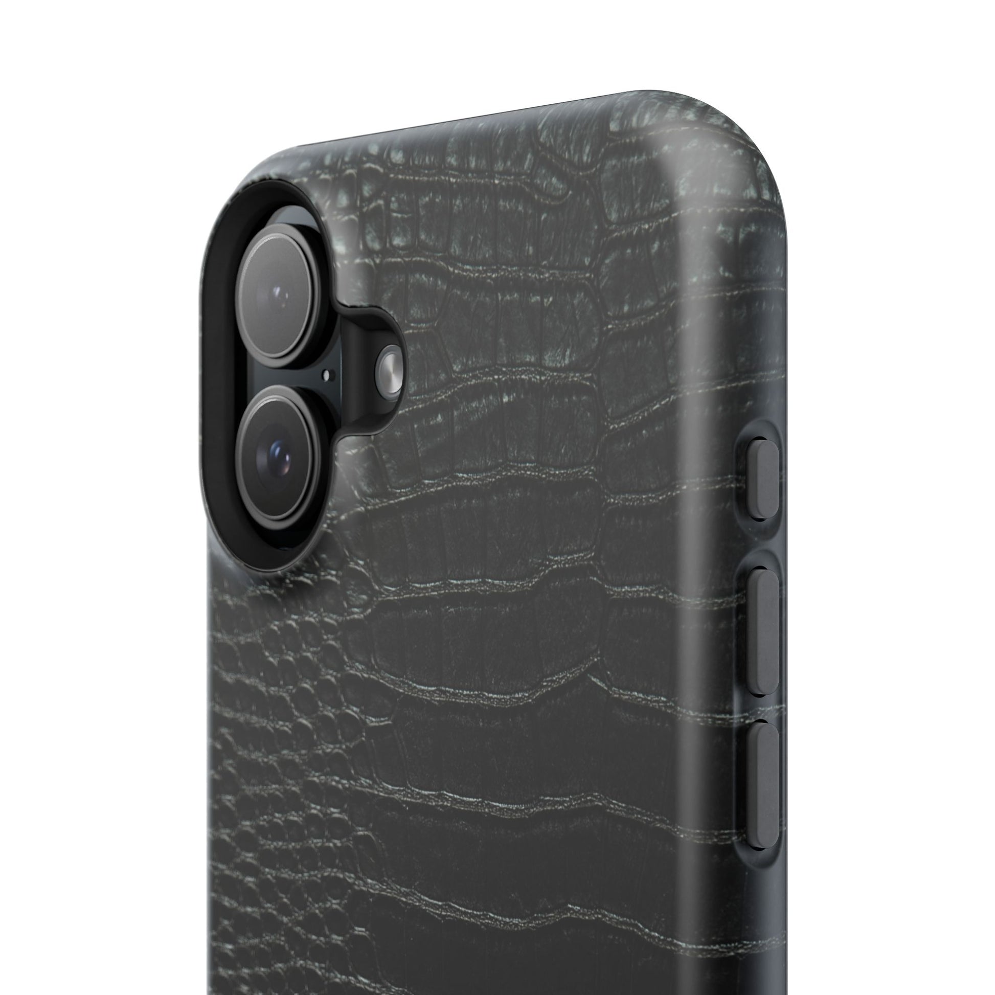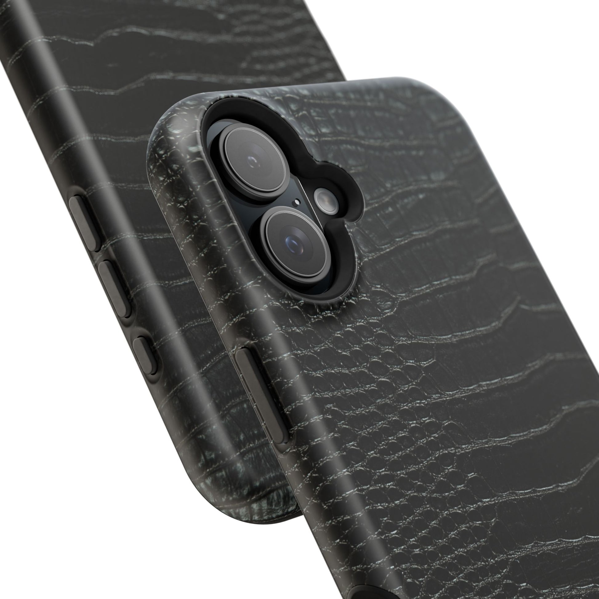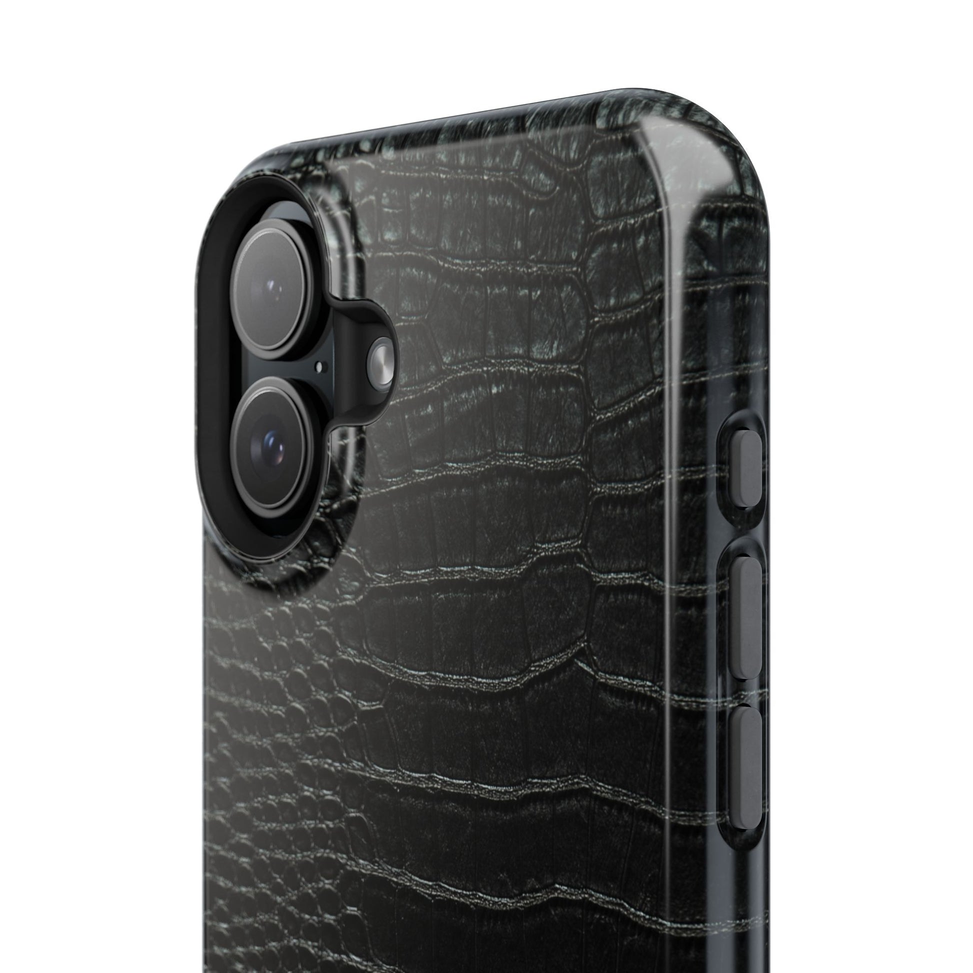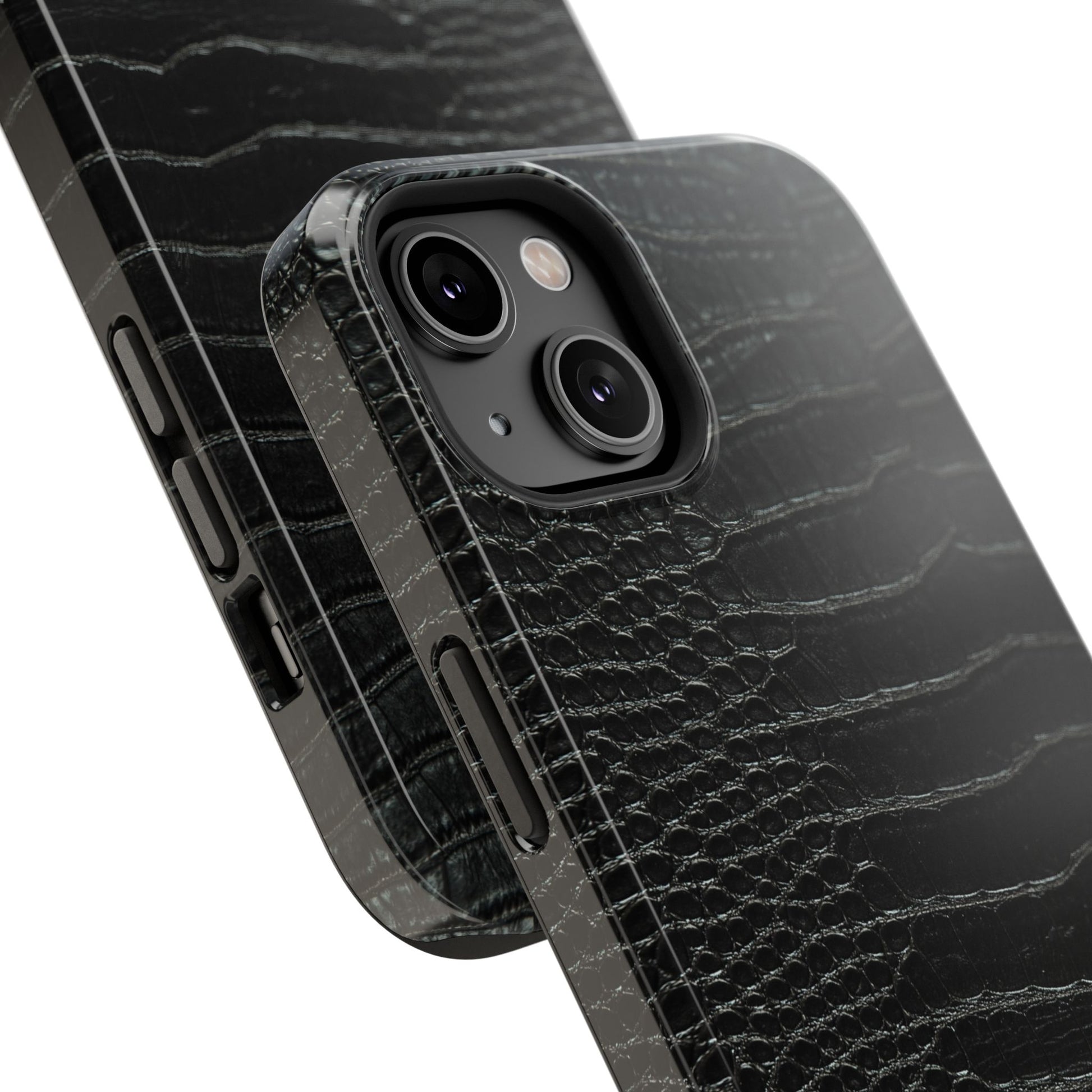 This slim, impact-resistant phone case brings understated luxury to everyday carry. The black crocodile-embossed finish reads like wearable leather, while the dual-layer construction—rigid polycarbonate shell with a removable TPU liner—gives confidence against drops and scuffs. Full-wrap printing keeps the textured pattern seamless around edges. Choose a glossy sheen for a sleek, reflective look or a matte finish for muted sophistication. It’s crafted for tactile grip, supports wireless charging, and fits the latest iPhone models so your device looks refined and stays protected without bulk.