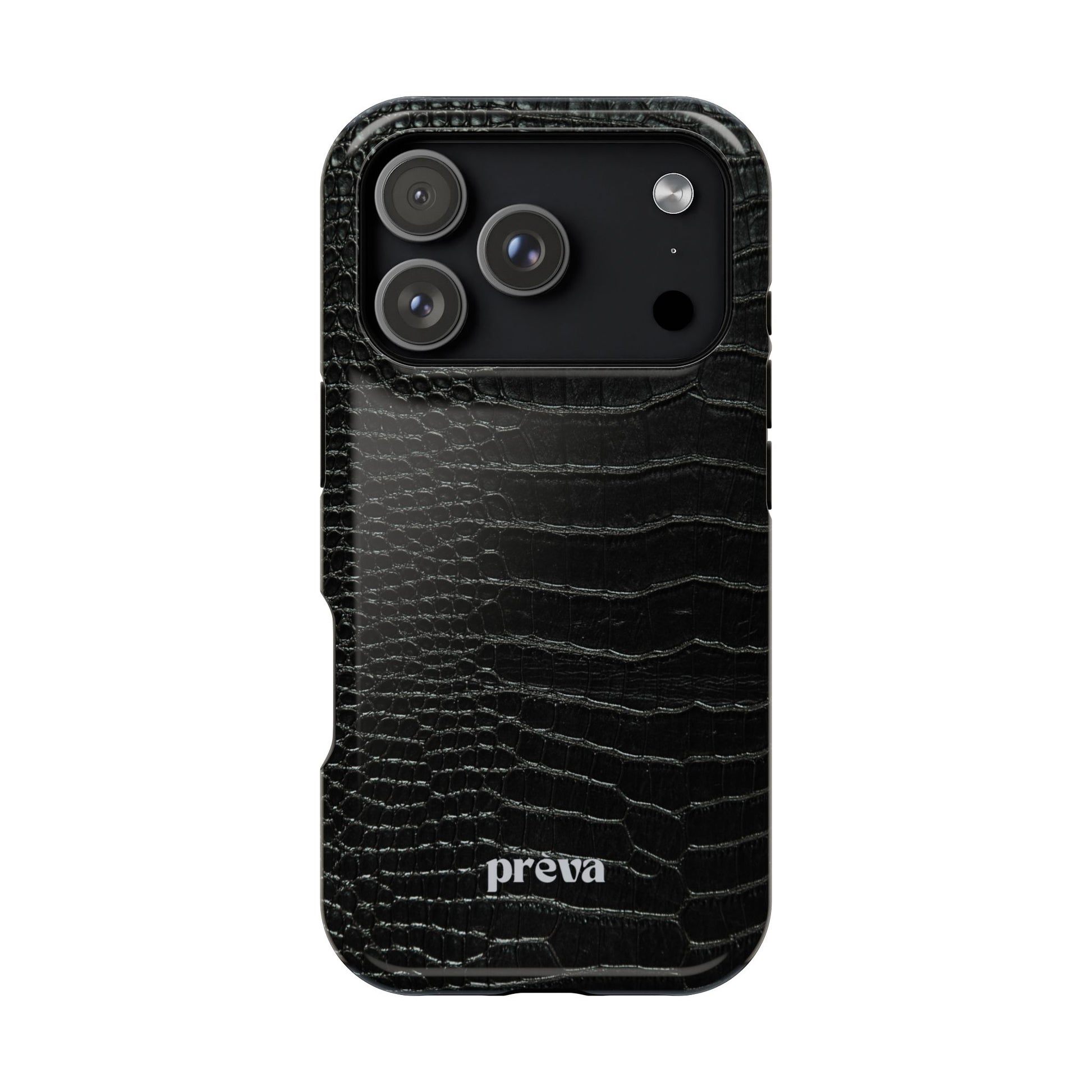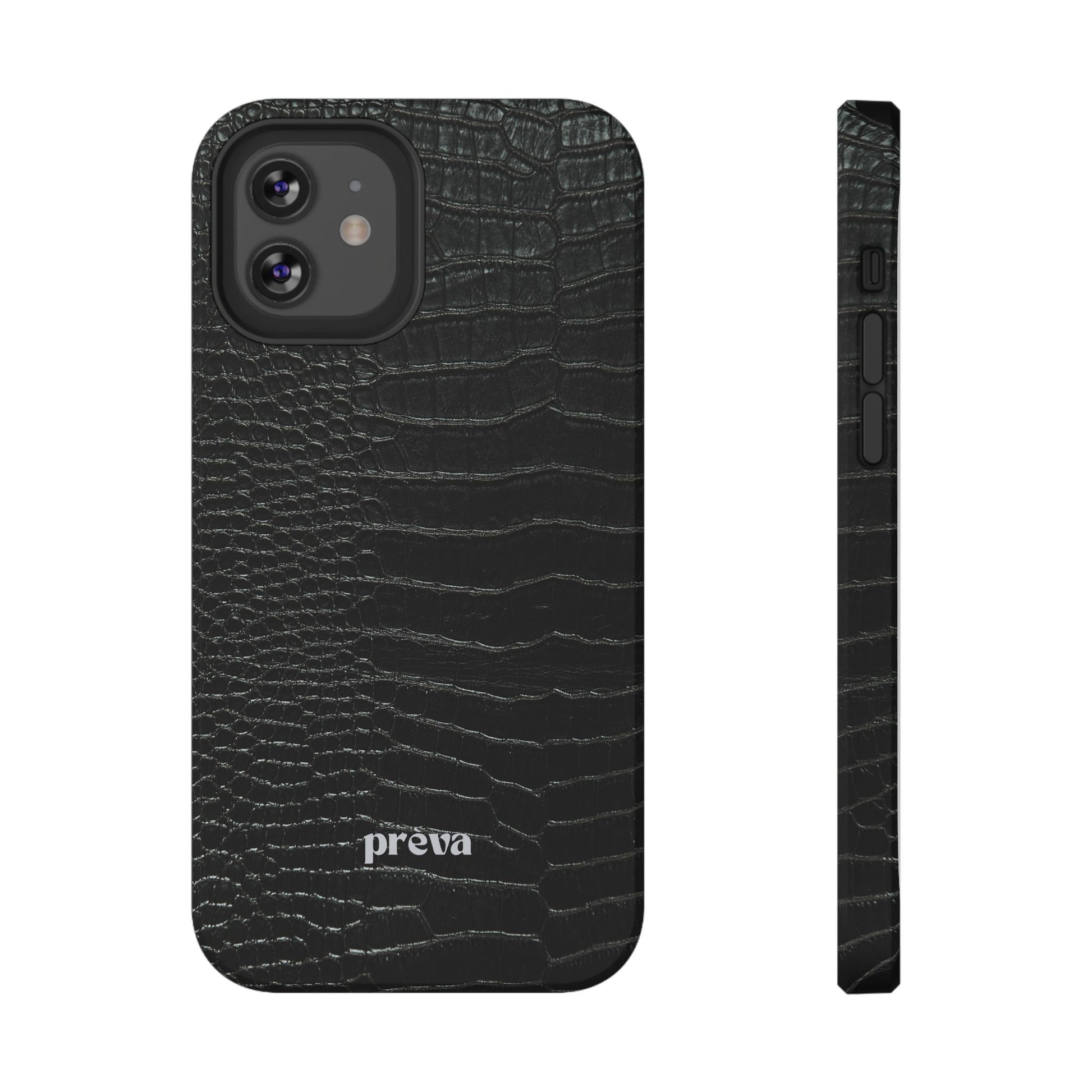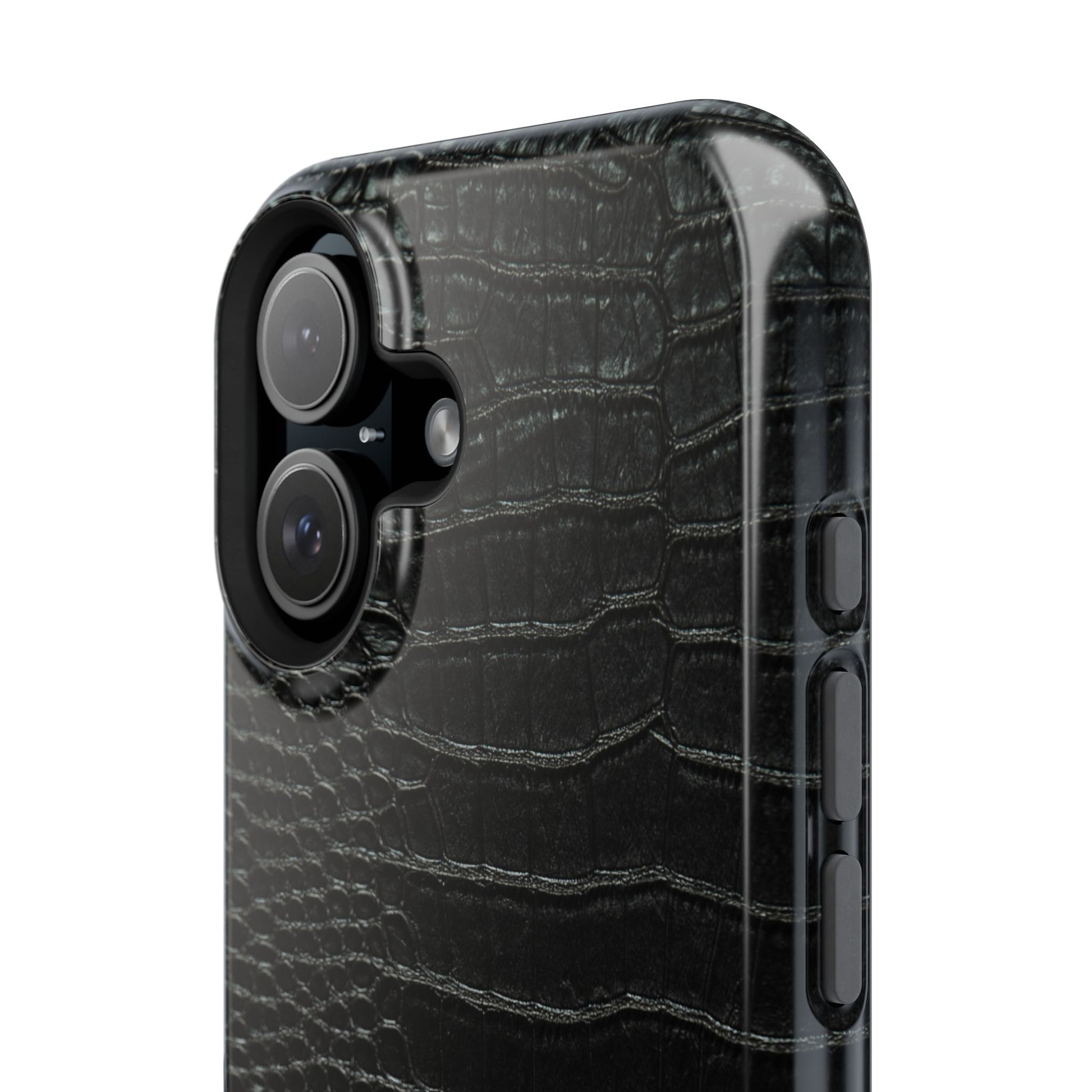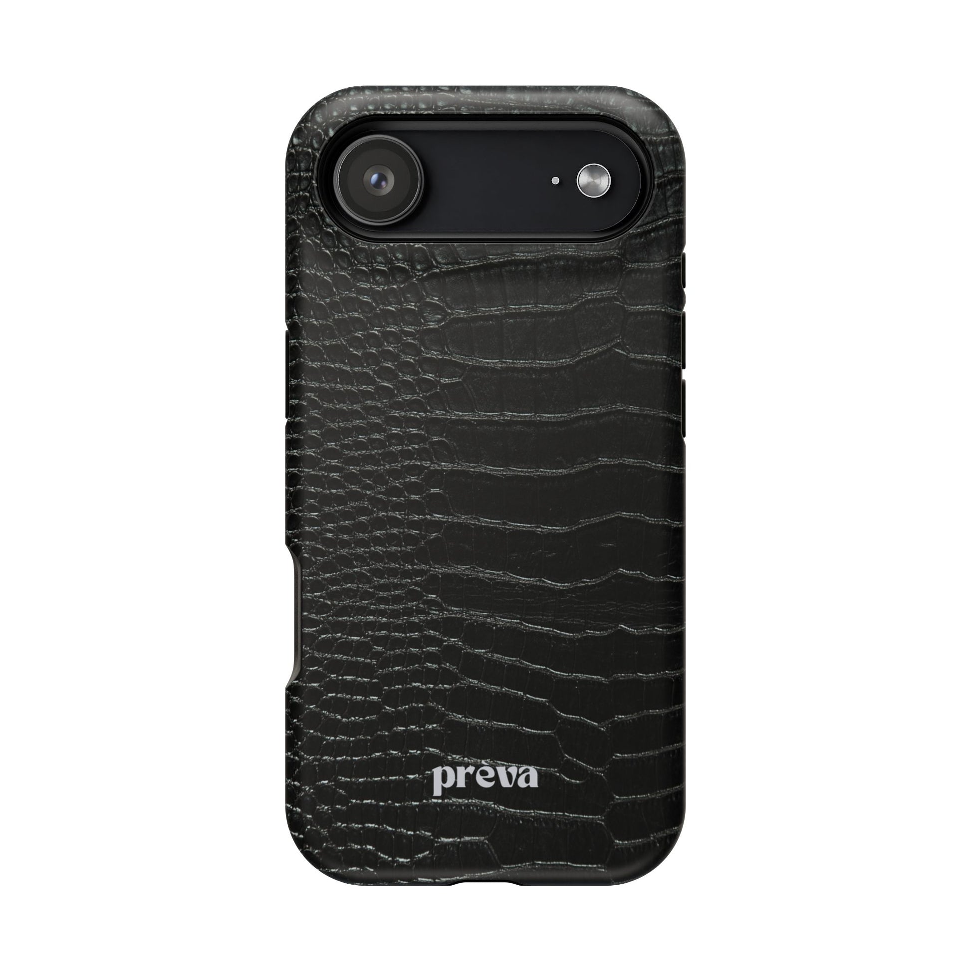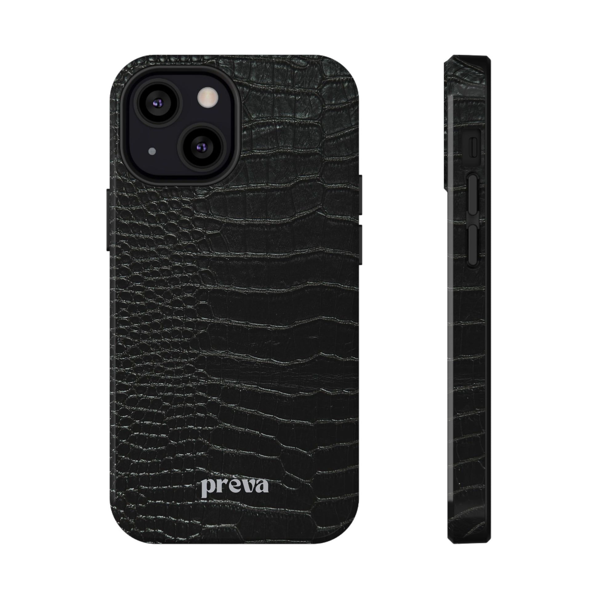 This slim, impact-resistant phone case brings understated luxury to everyday carry. The black crocodile-embossed finish reads like wearable leather, while the dual-layer construction—rigid polycarbonate shell with a removable TPU liner—gives confidence against drops and scuffs. Full-wrap printing keeps the textured pattern seamless around edges. Choose a glossy sheen for a sleek, reflective look or a matte finish for muted sophistication. It’s crafted for tactile grip, supports wireless charging, and fits the latest iPhone models so your device looks refined and stays protected without bulk.