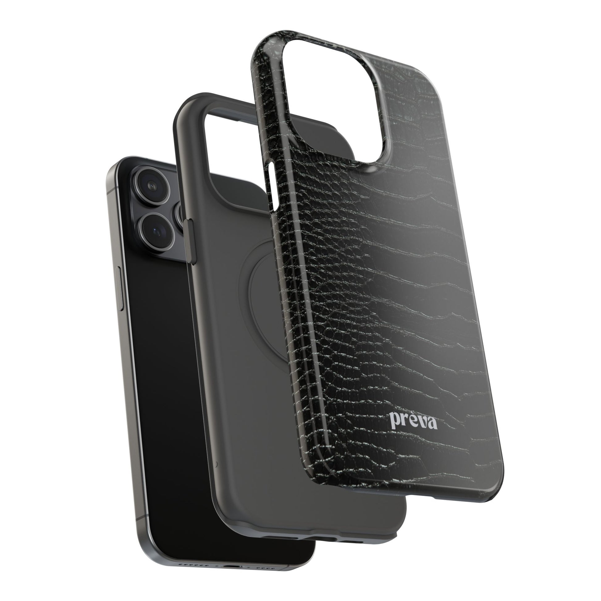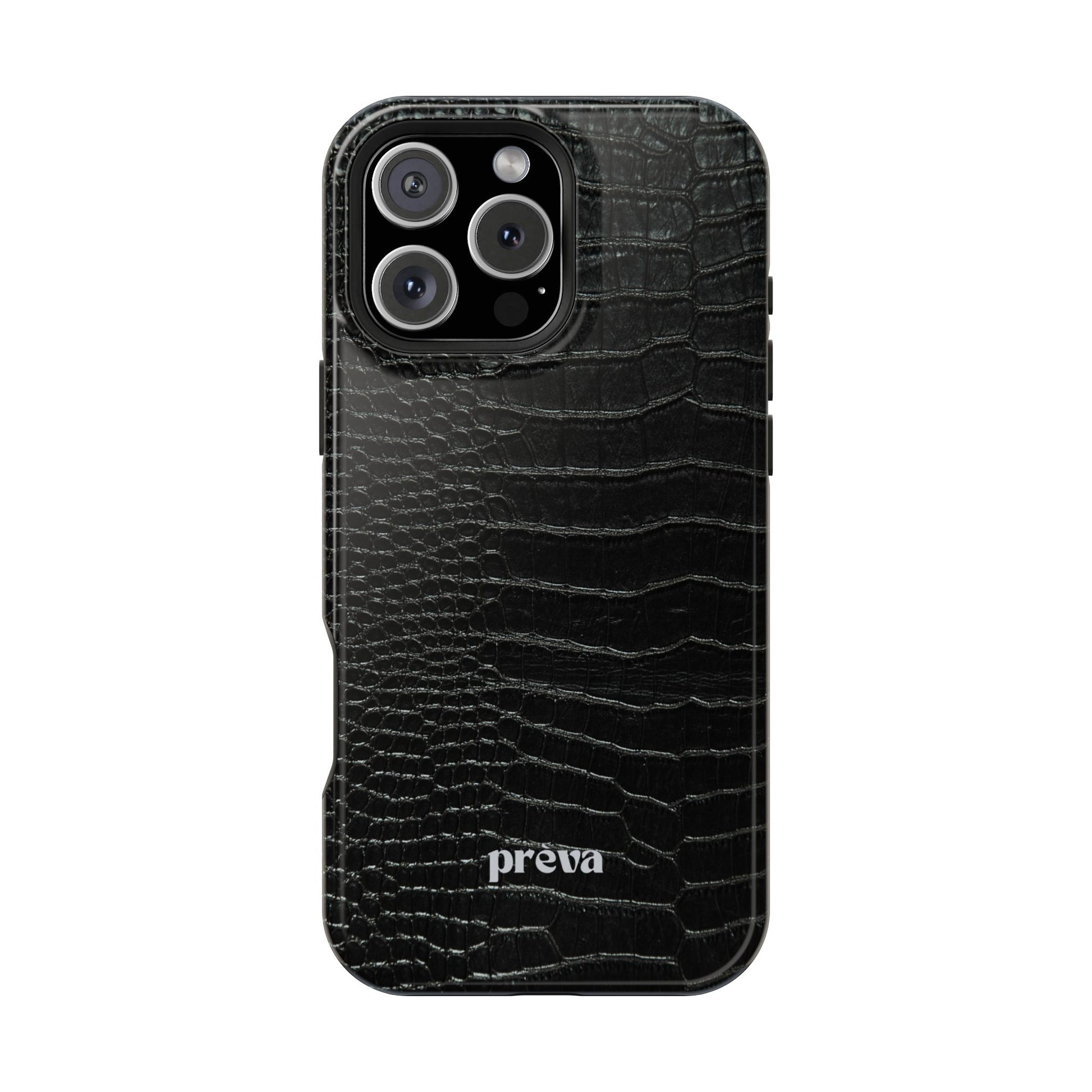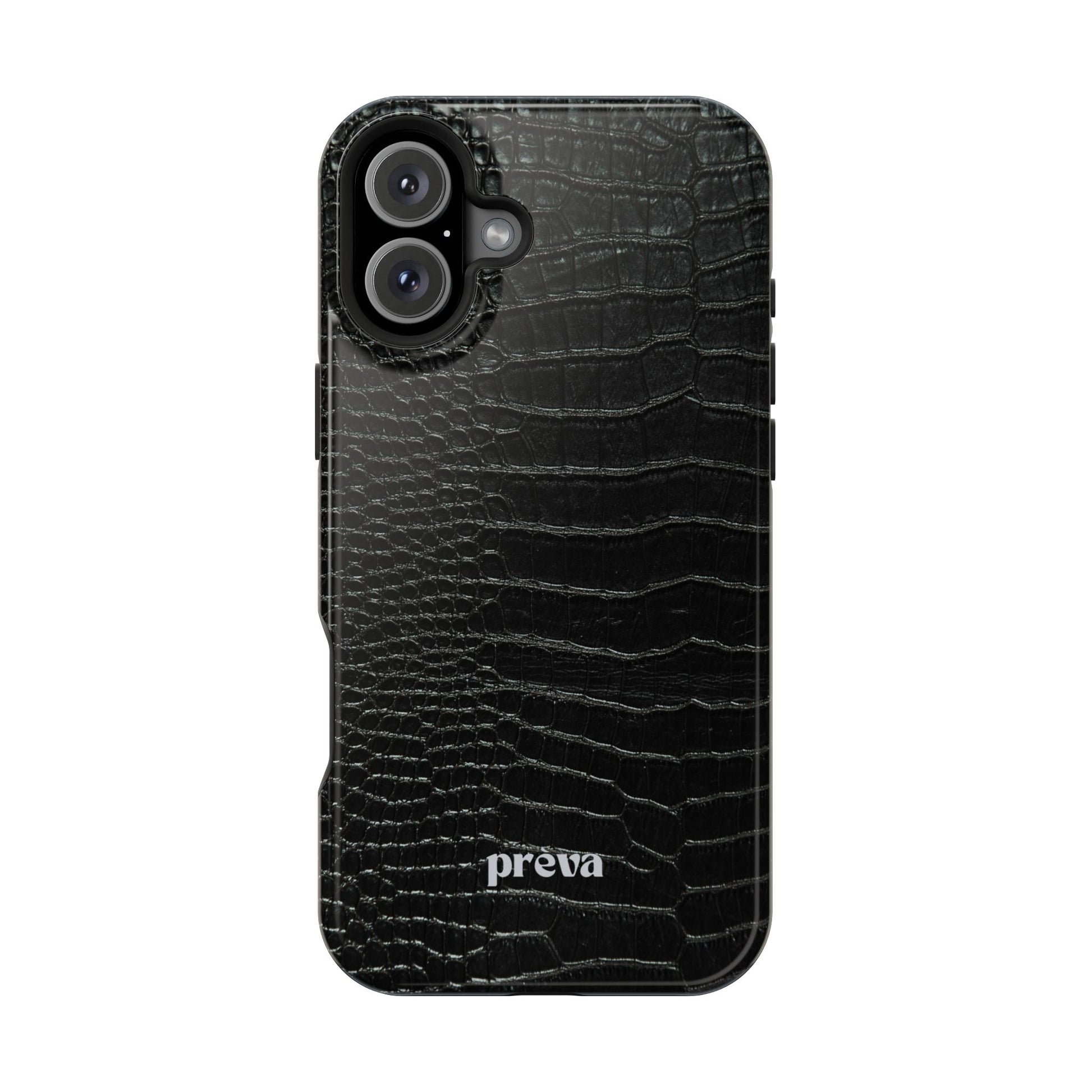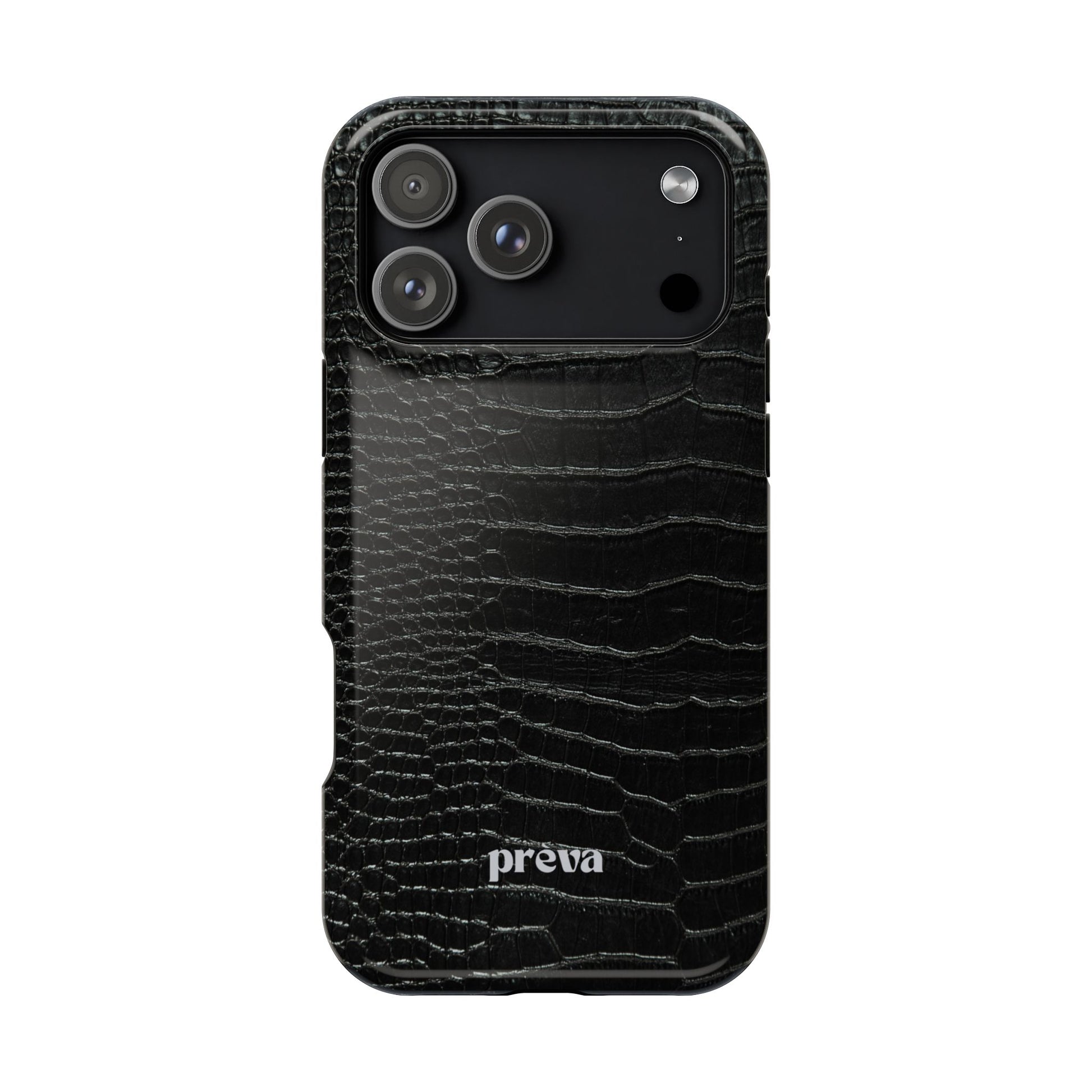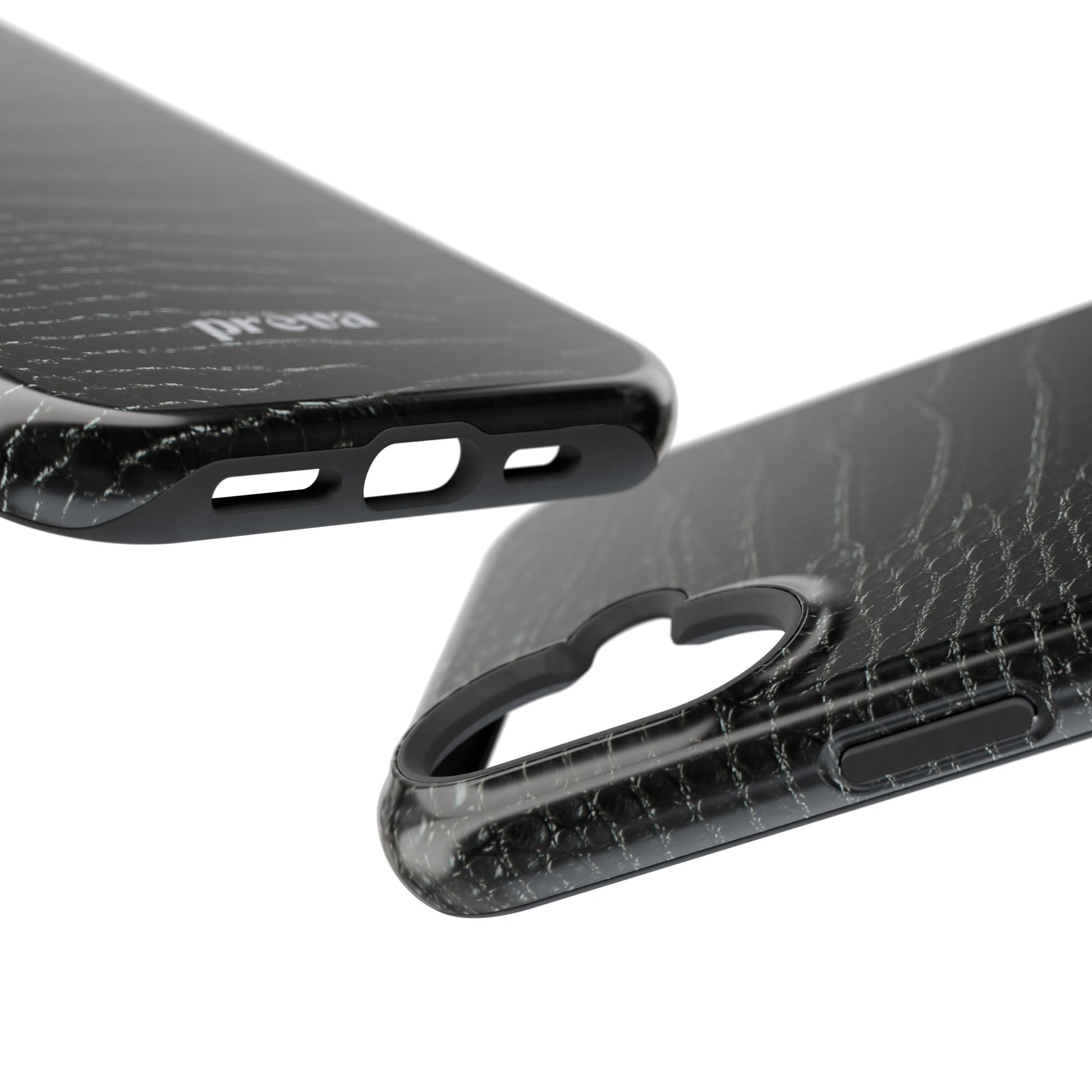 This slim, impact-resistant phone case brings understated luxury to everyday carry. The black crocodile-embossed finish reads like wearable leather, while the dual-layer construction—rigid polycarbonate shell with a removable TPU liner—gives confidence against drops and scuffs. Full-wrap printing keeps the textured pattern seamless around edges. Choose a glossy sheen for a sleek, reflective look or a matte finish for muted sophistication. It’s crafted for tactile grip, supports wireless charging, and fits the latest iPhone models so your device looks refined and stays protected without bulk.