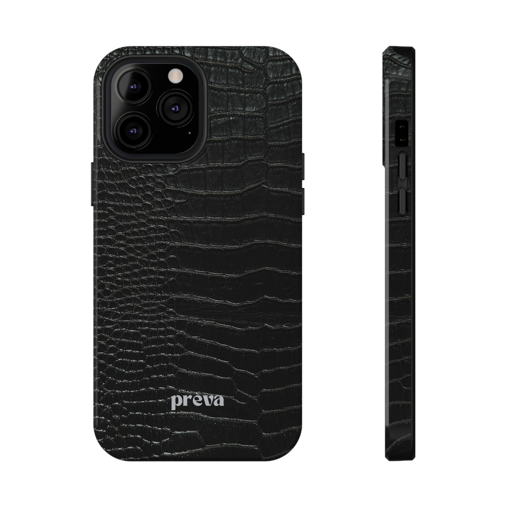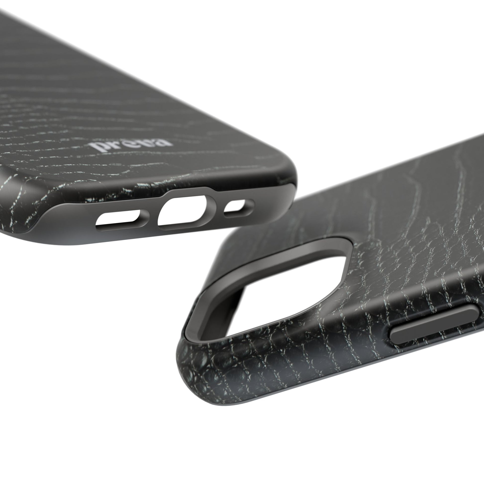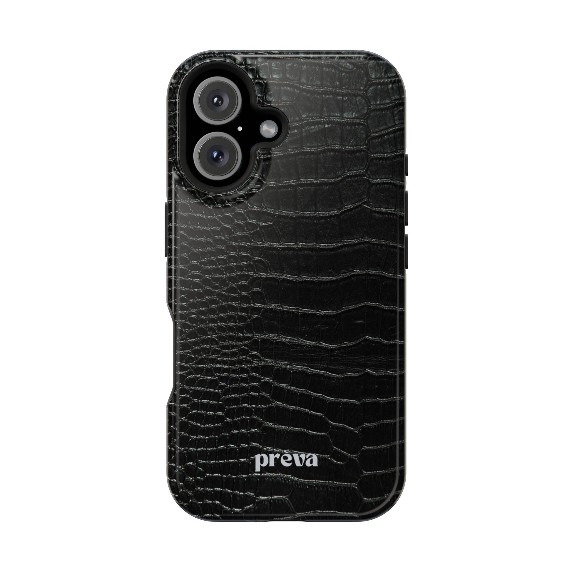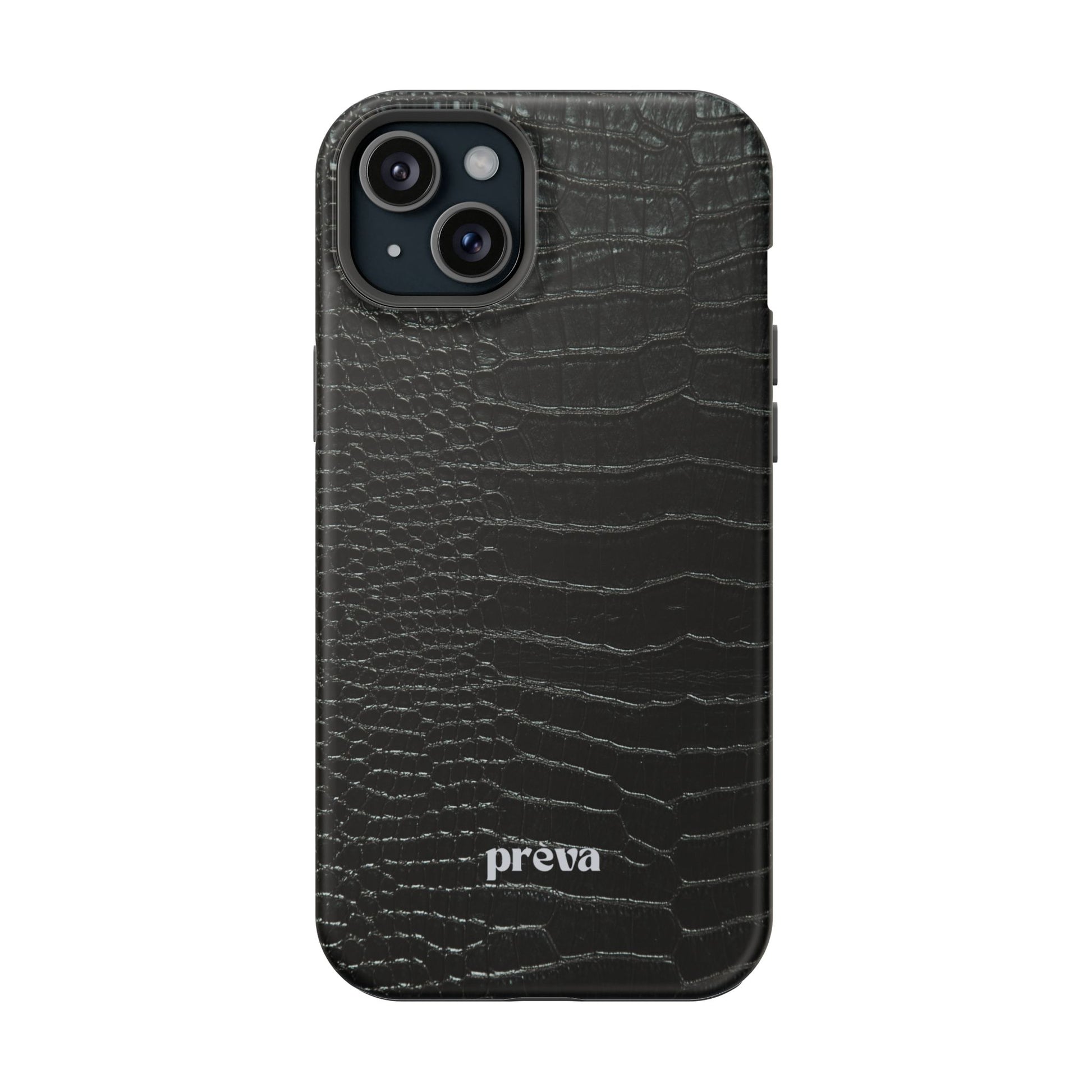This slim, impact-resistant phone case brings understated luxury to everyday carry. The black crocodile-embossed finish reads like wearable leather, while the dual-layer construction—rigid polycarbonate shell with a removable TPU liner—gives confidence against drops and scuffs. Full-wrap printing keeps the textured pattern seamless around edges. Choose a glossy sheen for a sleek, reflective look or a matte finish for muted sophistication. It’s crafted for tactile grip, supports wireless charging, and fits the latest iPhone models so your device looks refined and stays protected without bulk.
