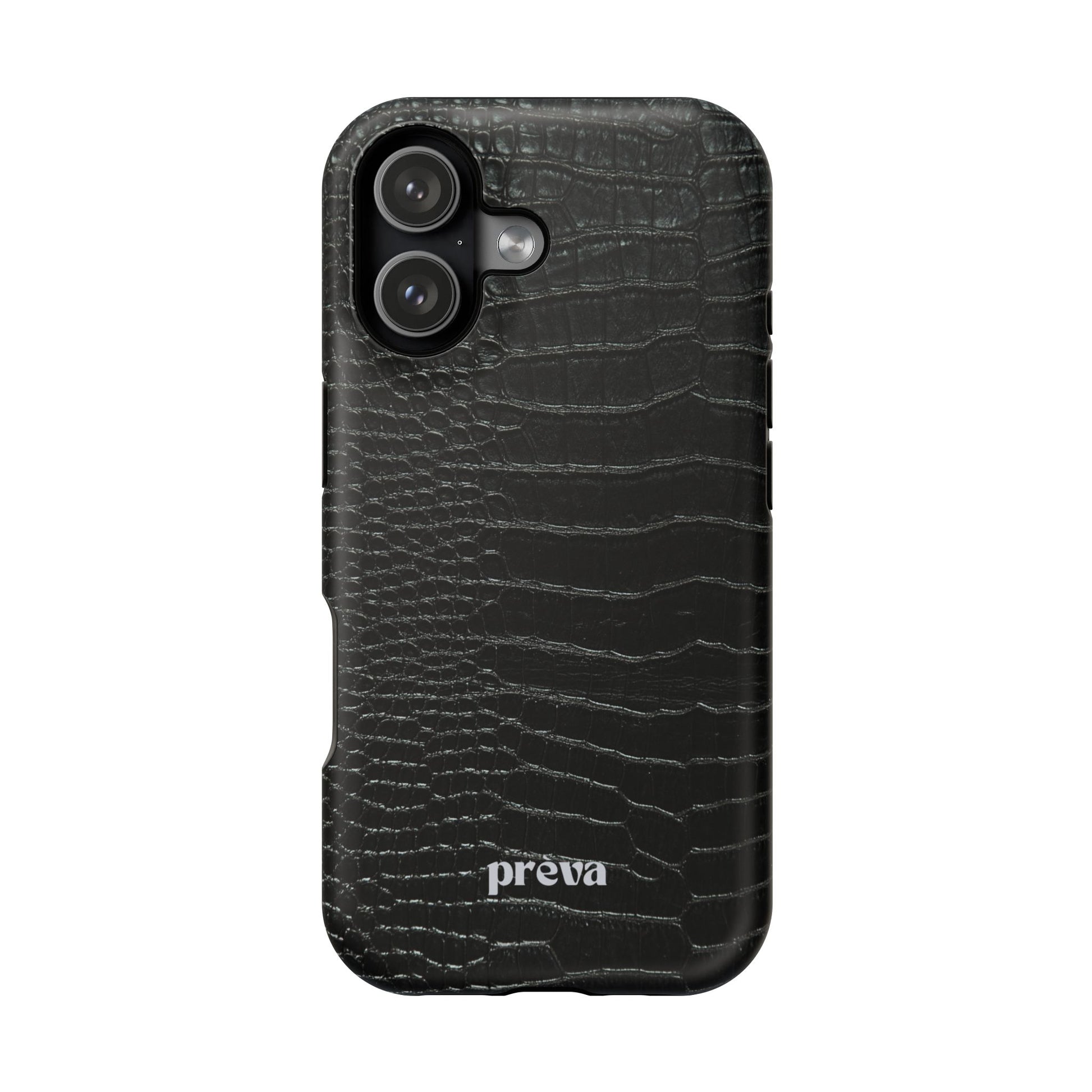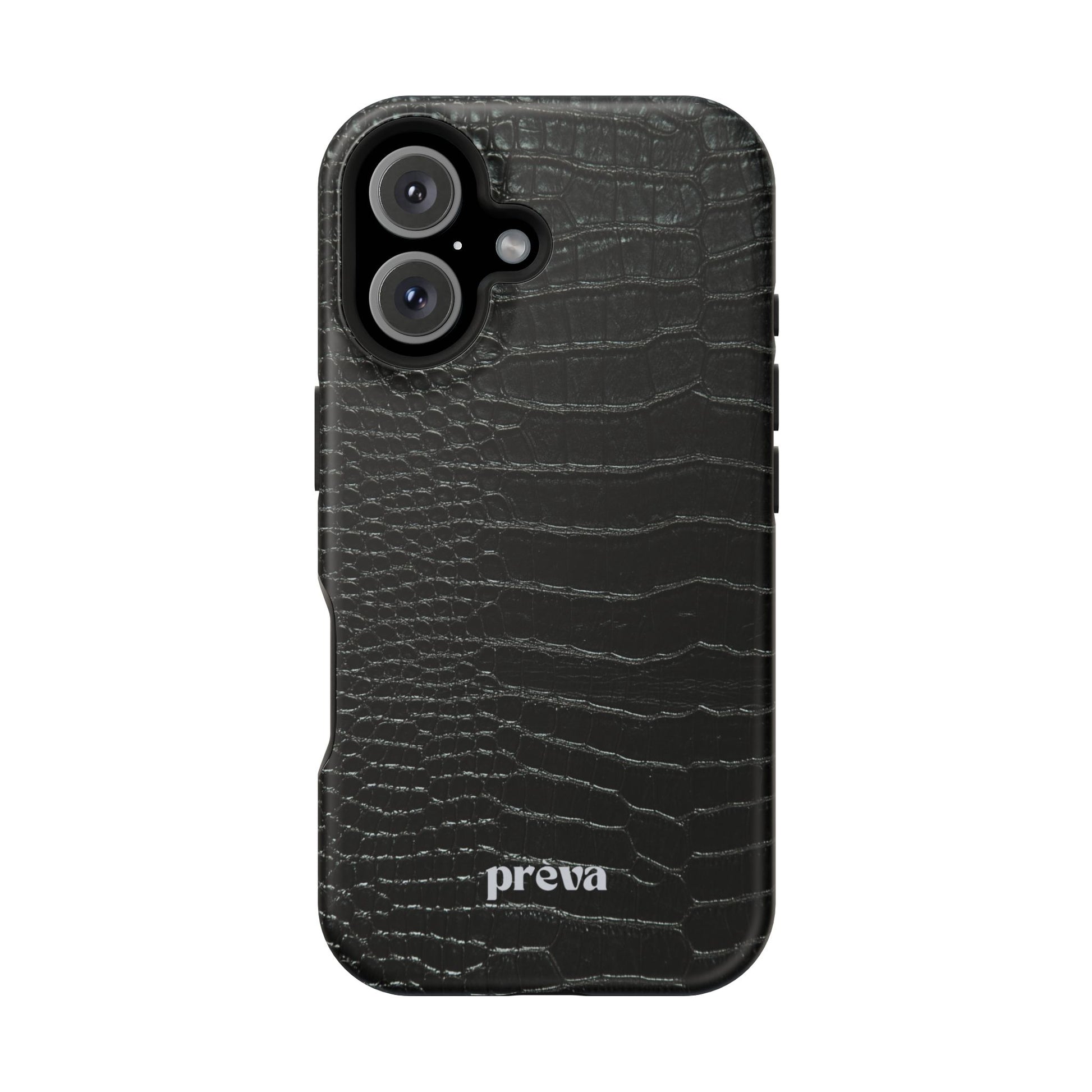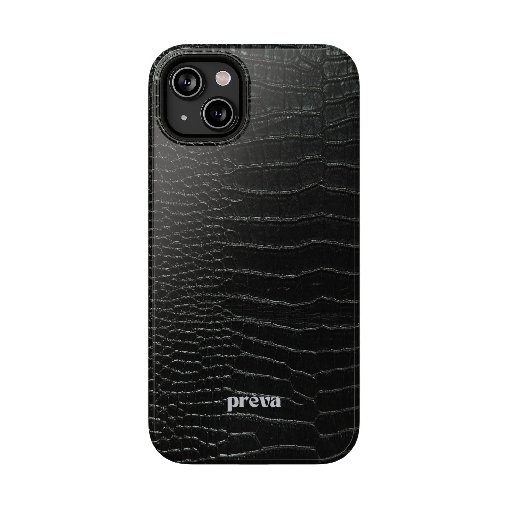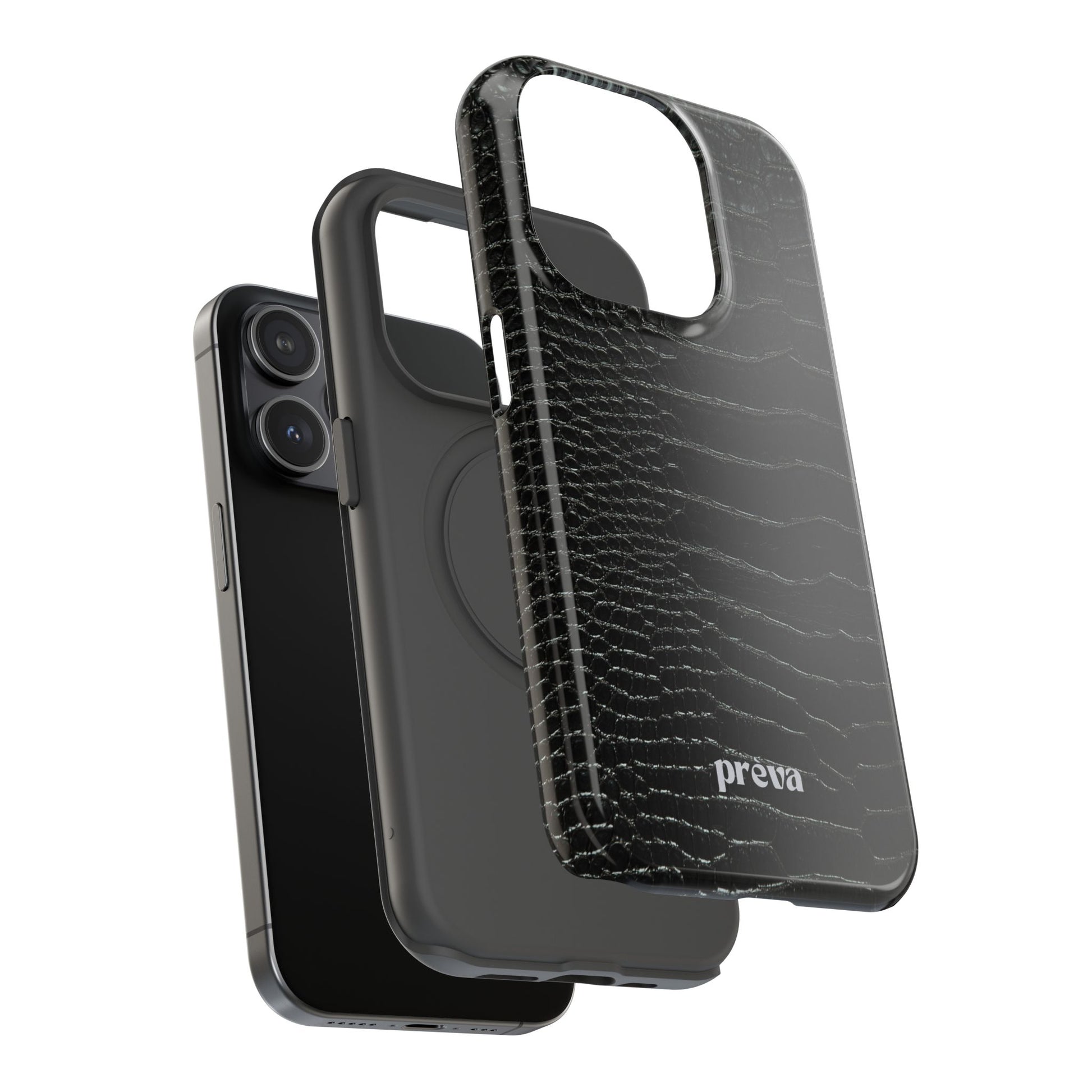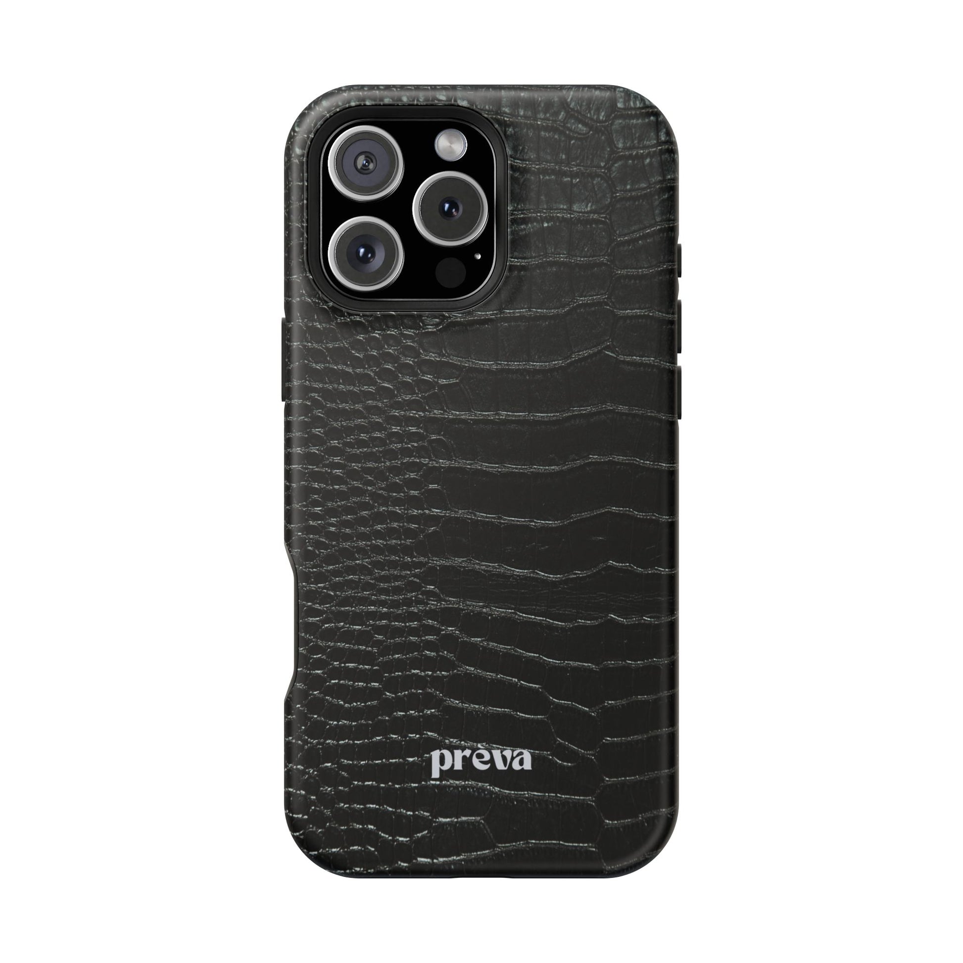 This slim, impact-resistant phone case brings understated luxury to everyday carry. The black crocodile-embossed finish reads like wearable leather, while the dual-layer construction—rigid polycarbonate shell with a removable TPU liner—gives confidence against drops and scuffs. Full-wrap printing keeps the textured pattern seamless around edges. Choose a glossy sheen for a sleek, reflective look or a matte finish for muted sophistication. It’s crafted for tactile grip, supports wireless charging, and fits the latest iPhone models so your device looks refined and stays protected without bulk.