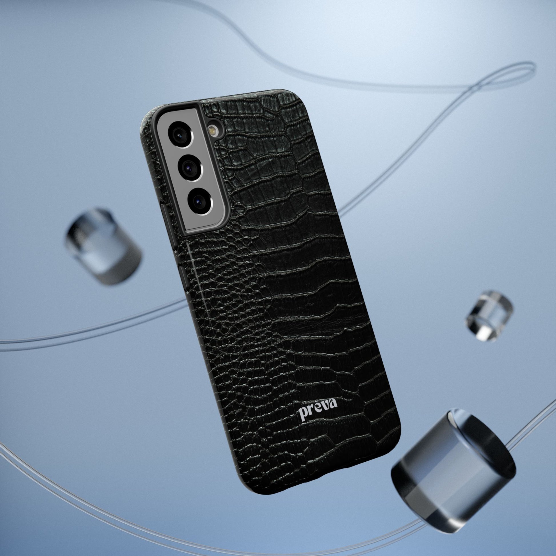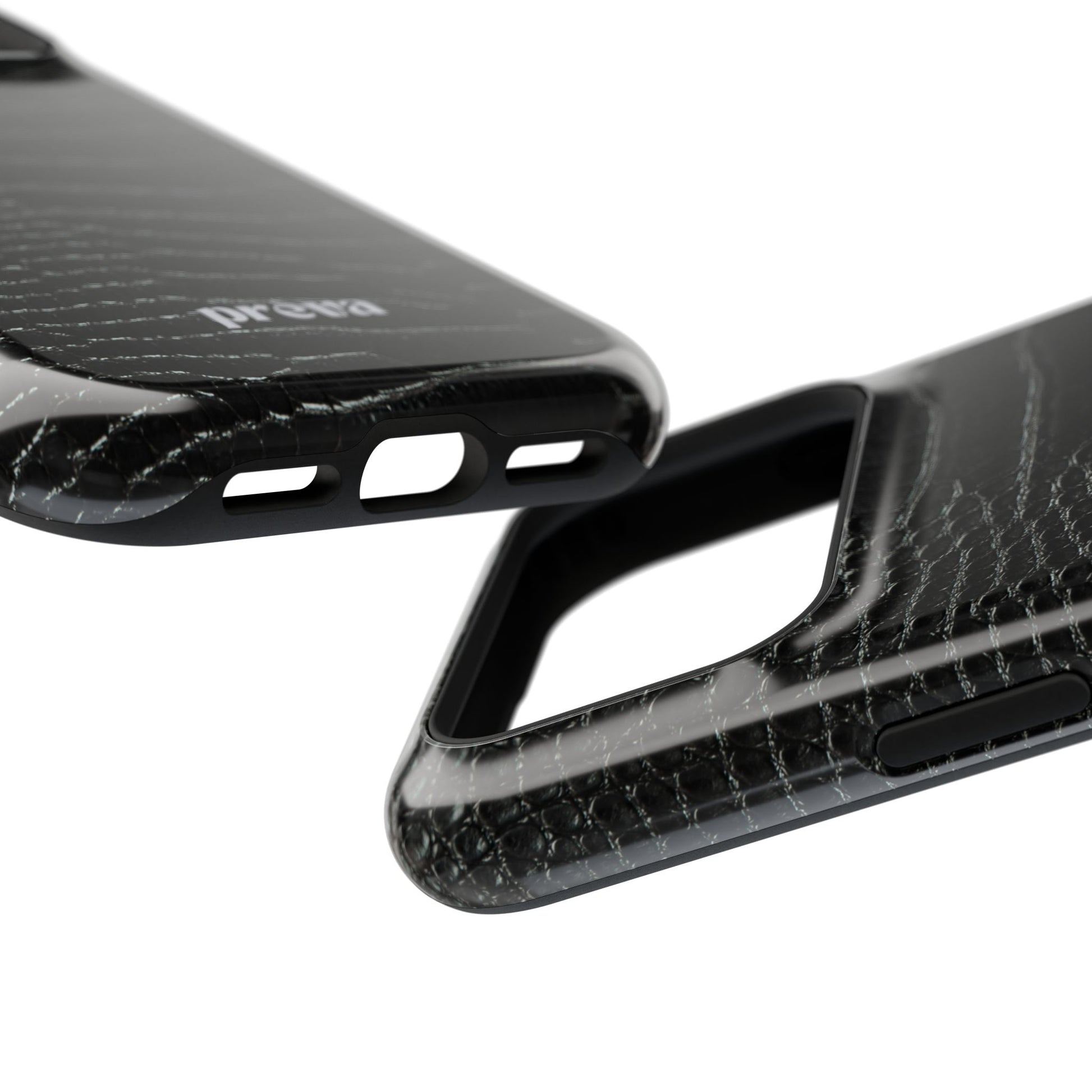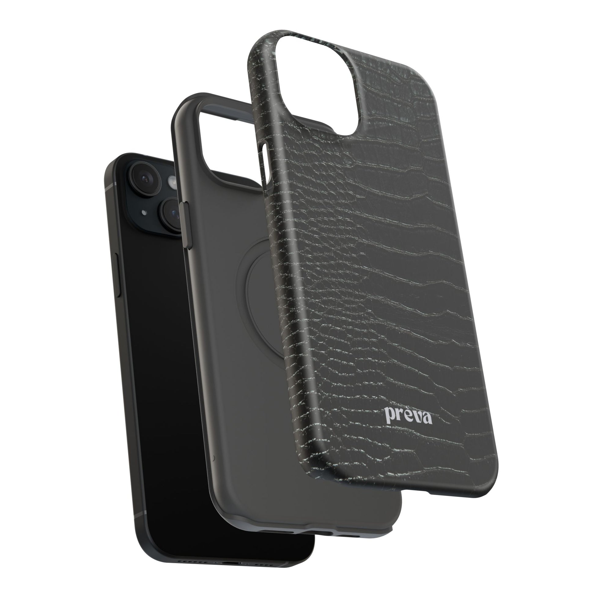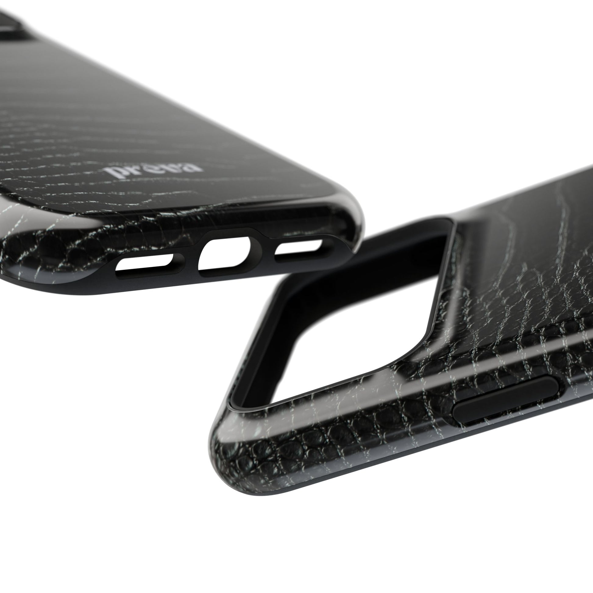 This slim, impact-resistant phone case brings understated luxury to everyday carry. The black crocodile-embossed finish reads like wearable leather, while the dual-layer construction—rigid polycarbonate shell with a removable TPU liner—gives confidence against drops and scuffs. Full-wrap printing keeps the textured pattern seamless around edges. Choose a glossy sheen for a sleek, reflective look or a matte finish for muted sophistication. It’s crafted for tactile grip, supports wireless charging, and fits the latest iPhone models so your device looks refined and stays protected without bulk.