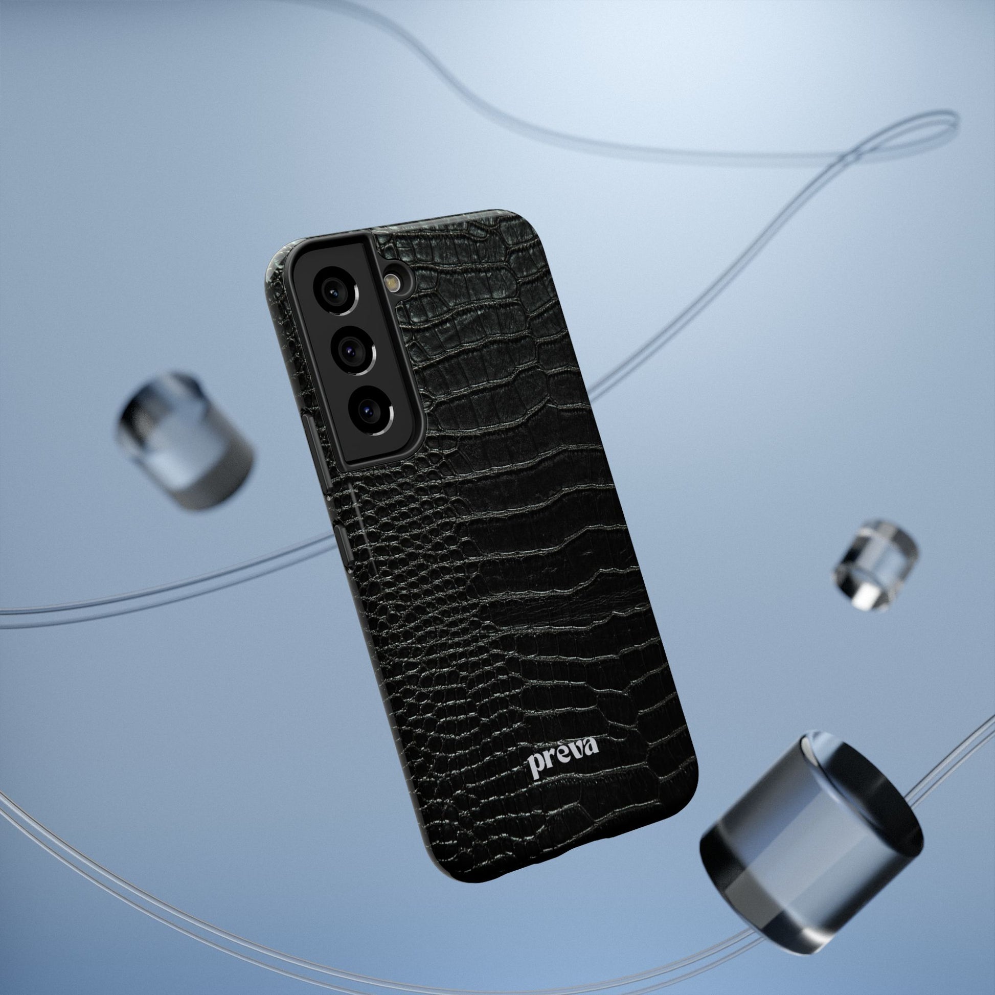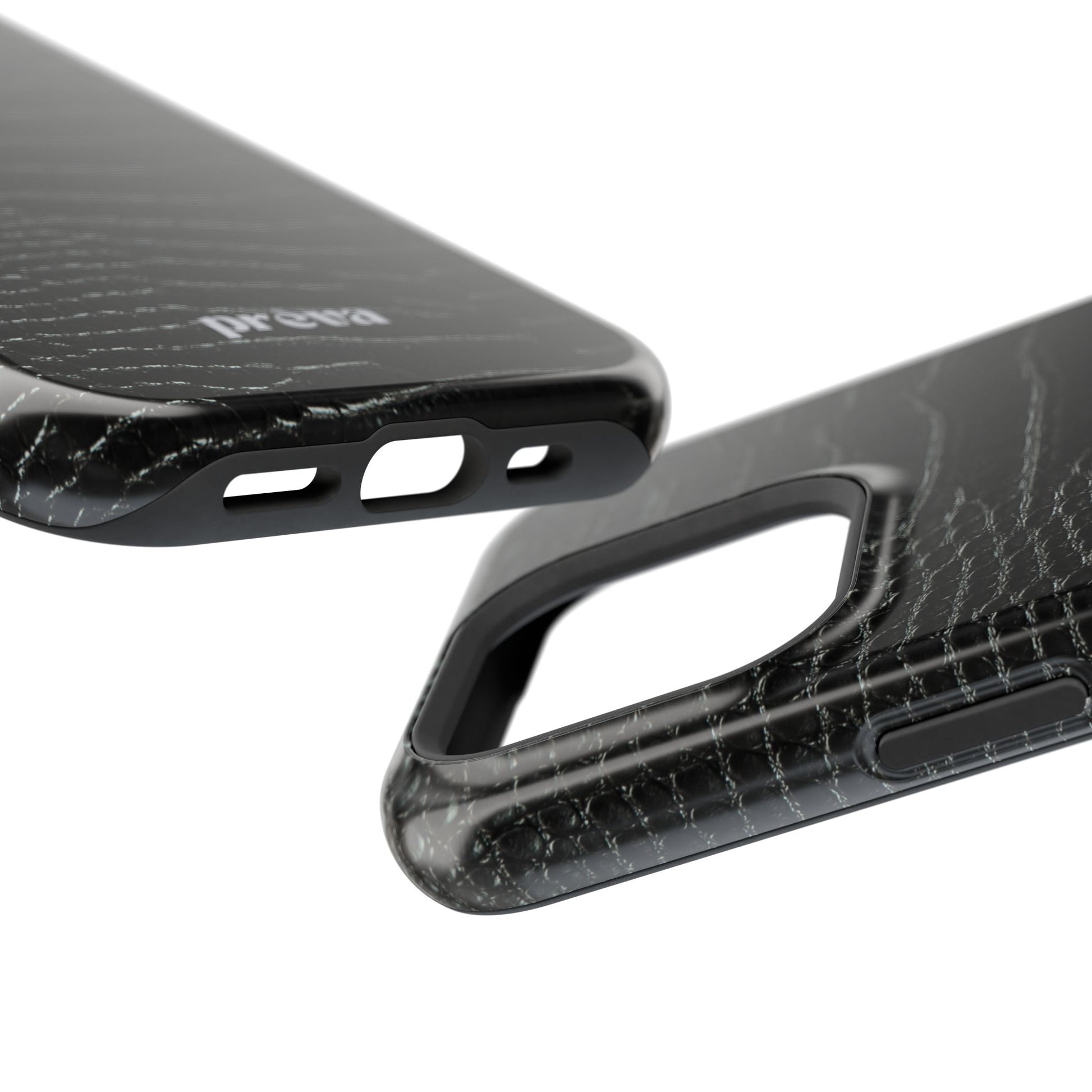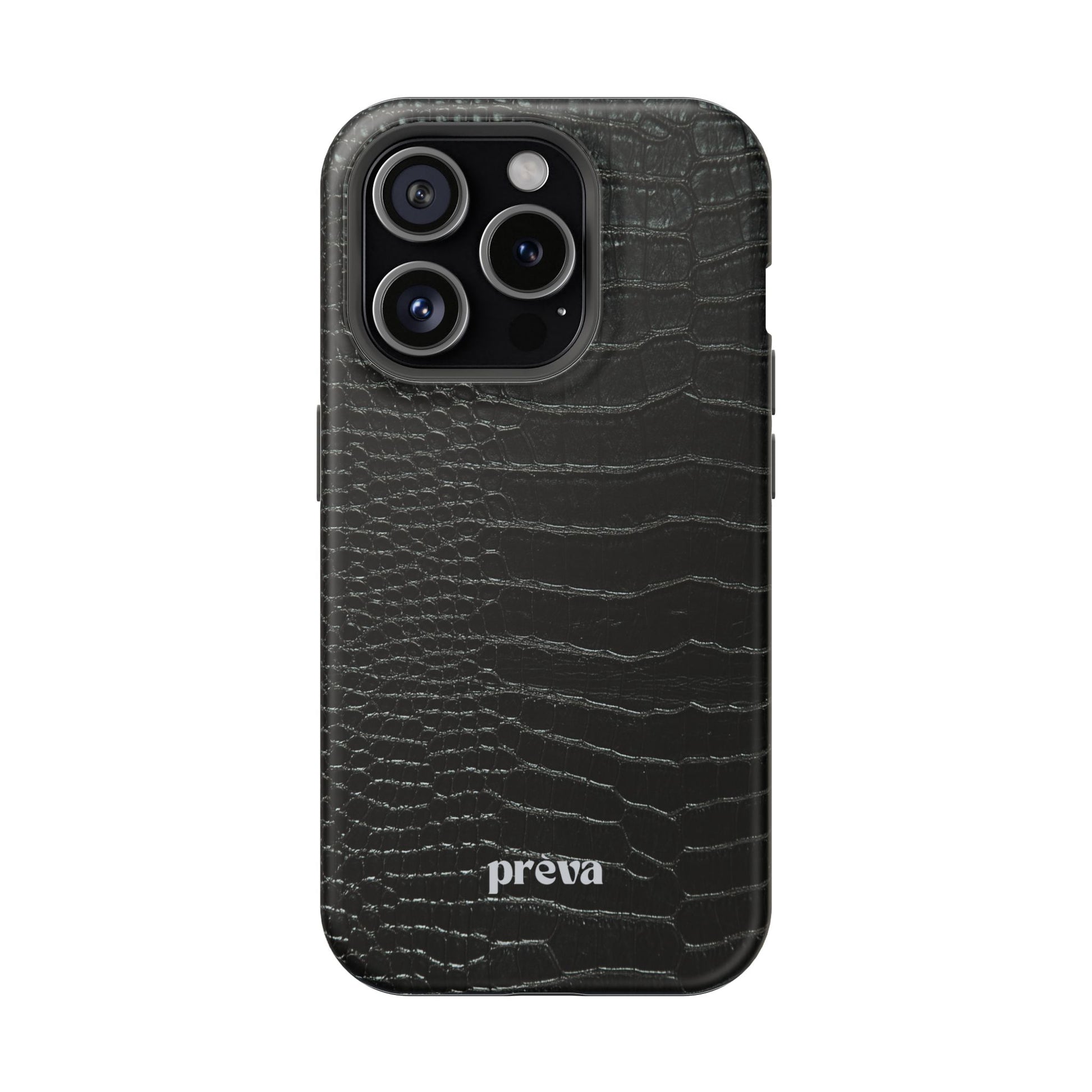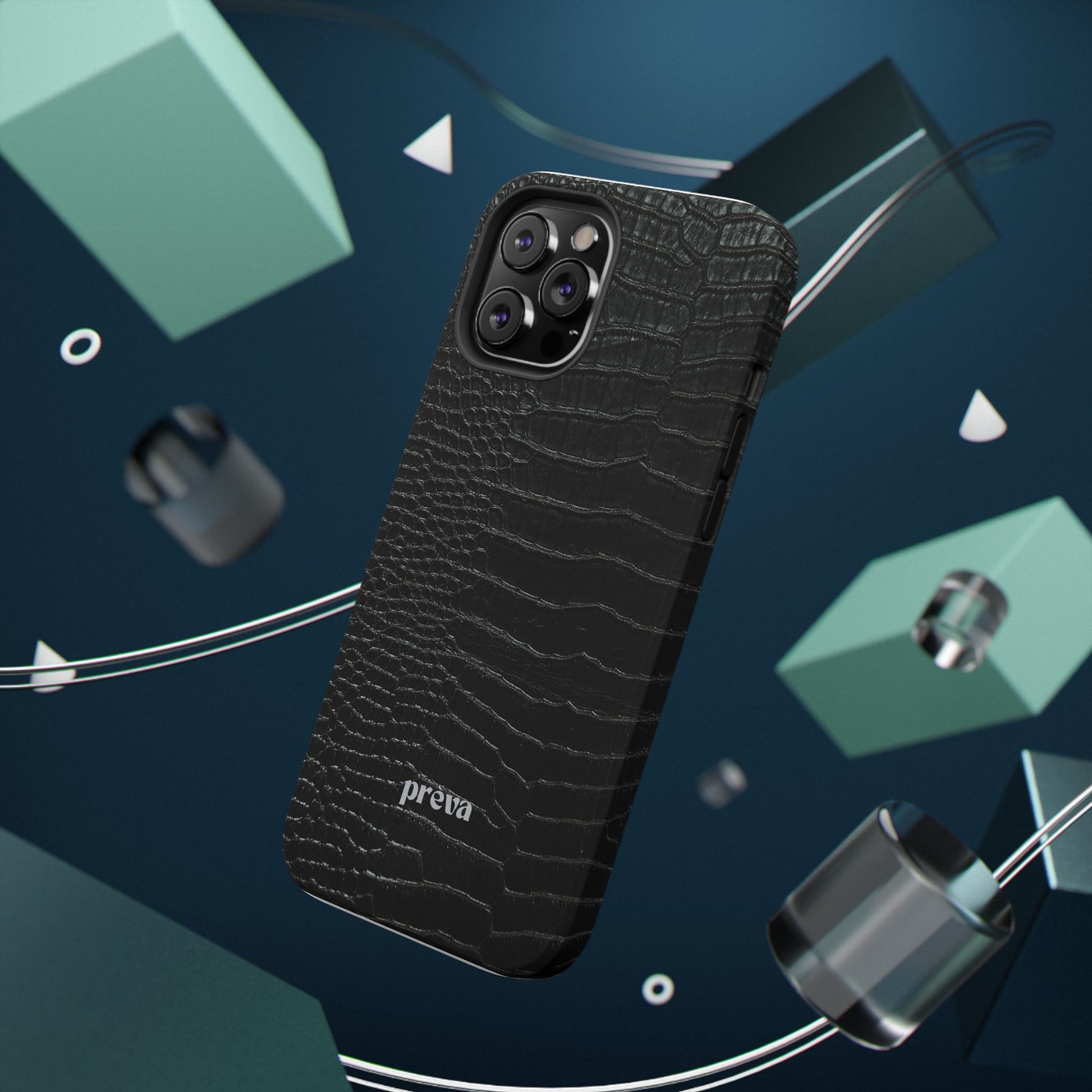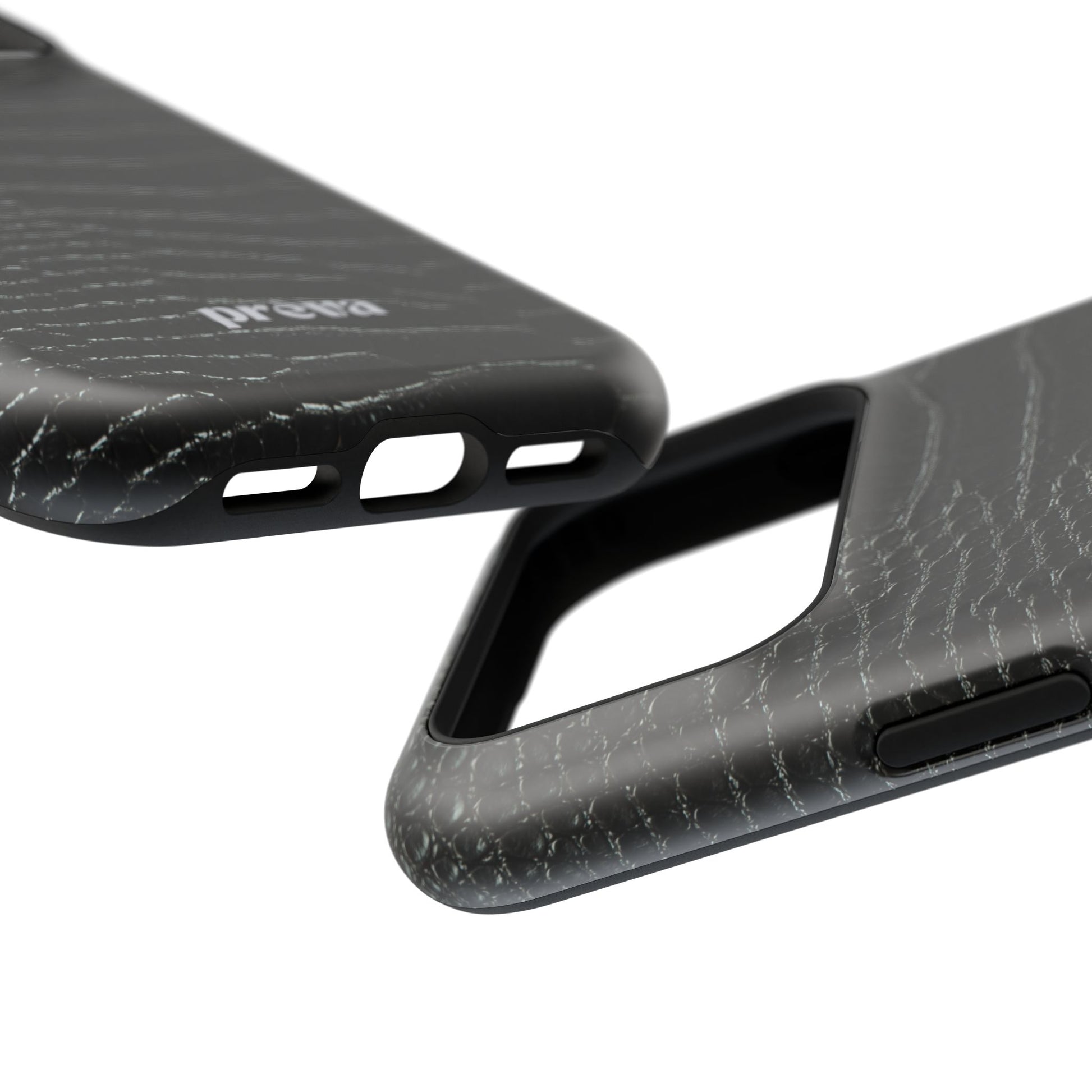 This slim, impact-resistant phone case brings understated luxury to everyday carry. The black crocodile-embossed finish reads like wearable leather, while the dual-layer construction—rigid polycarbonate shell with a removable TPU liner—gives confidence against drops and scuffs. Full-wrap printing keeps the textured pattern seamless around edges. Choose a glossy sheen for a sleek, reflective look or a matte finish for muted sophistication. It’s crafted for tactile grip, supports wireless charging, and fits the latest iPhone models so your device looks refined and stays protected without bulk.