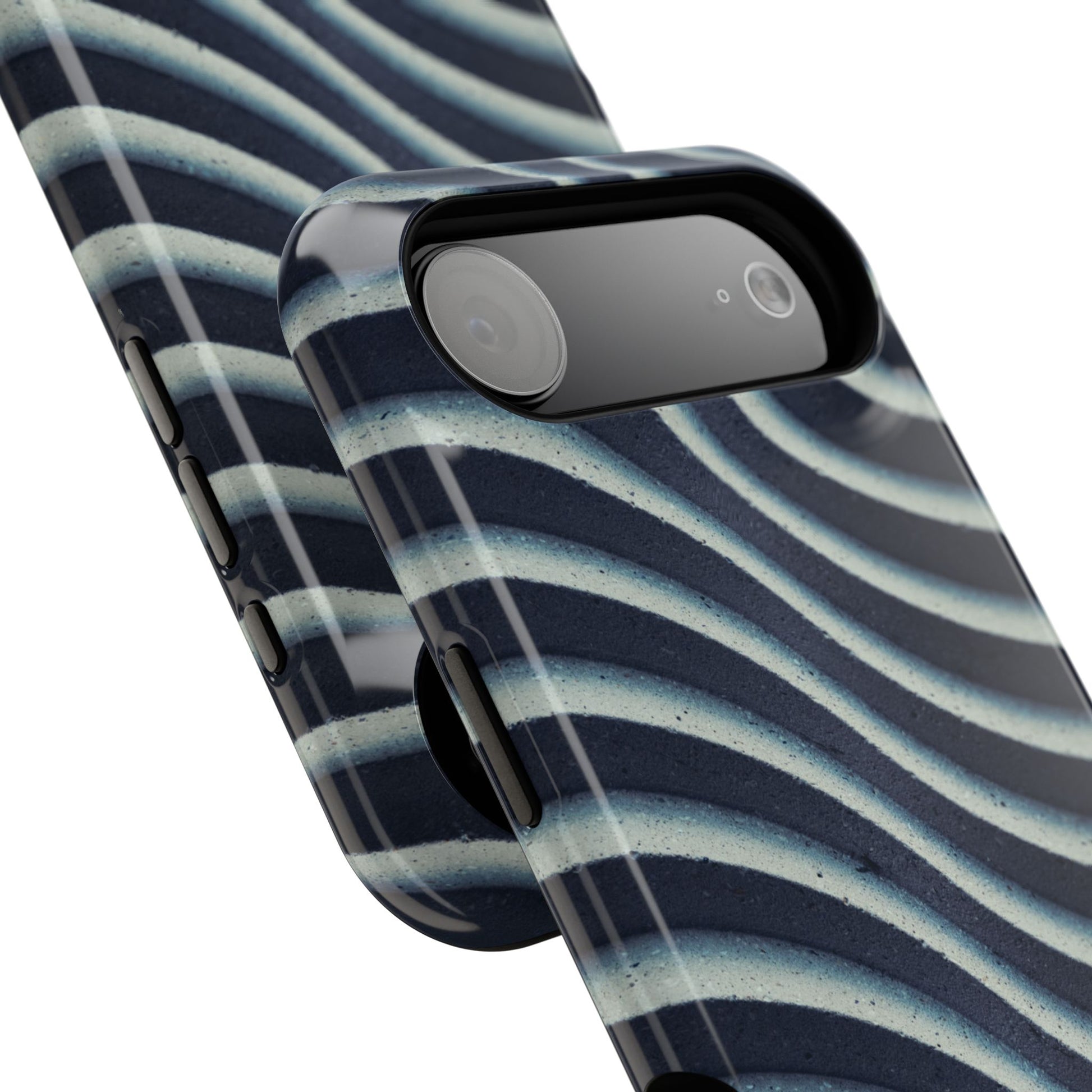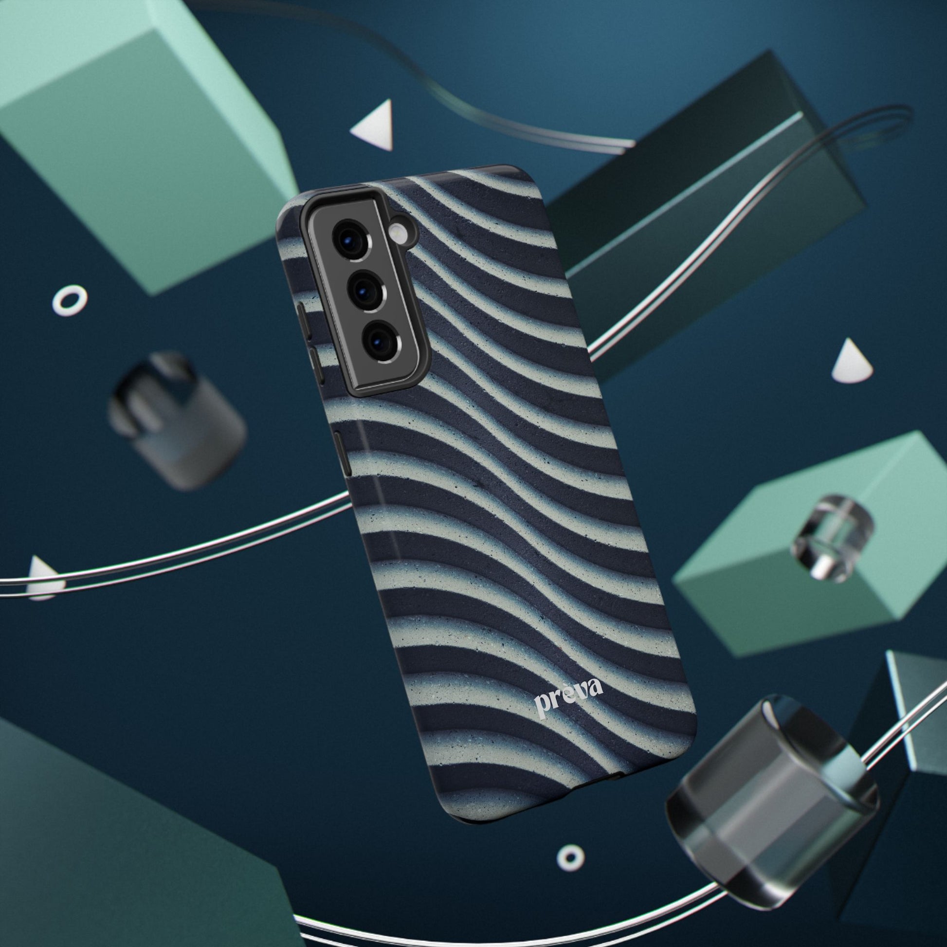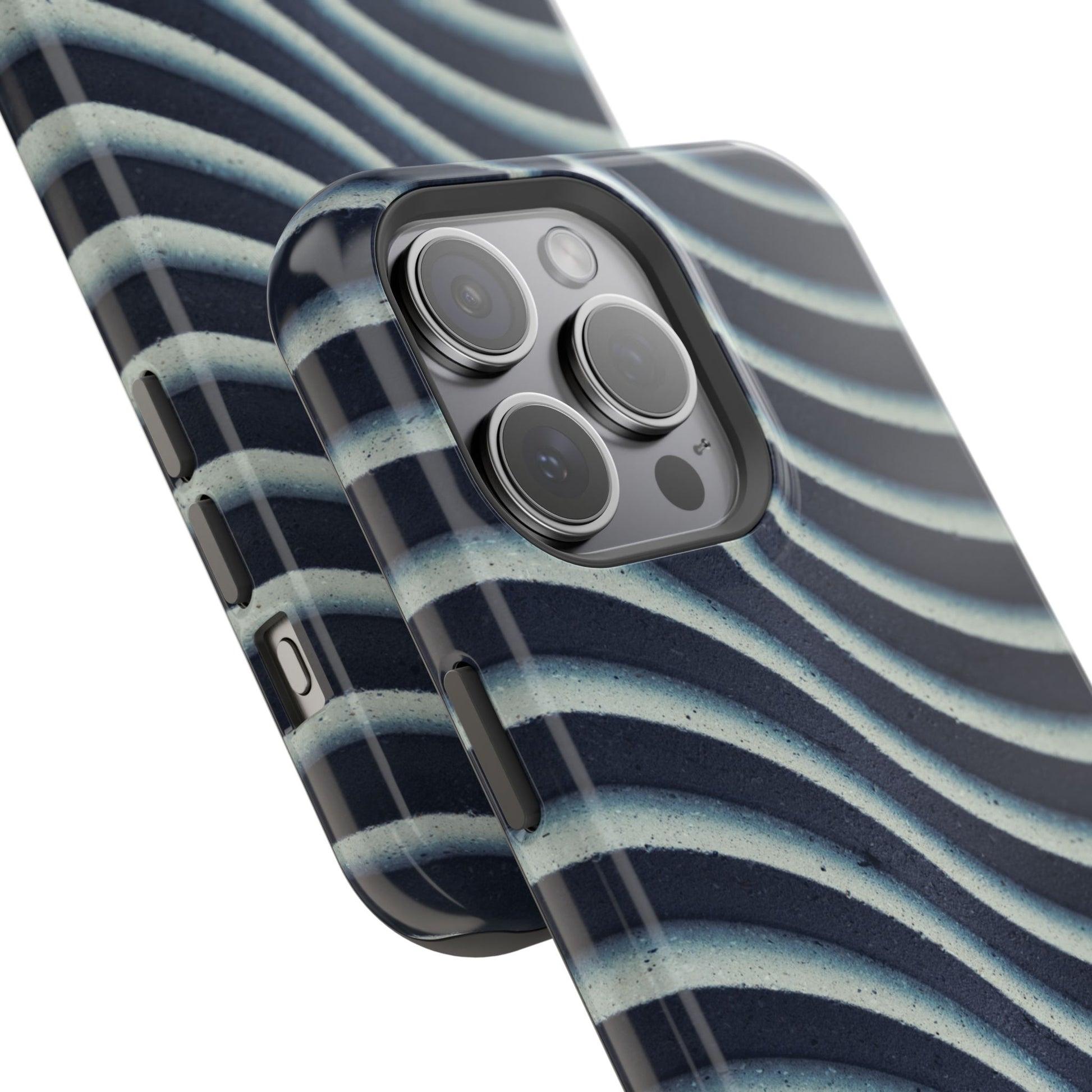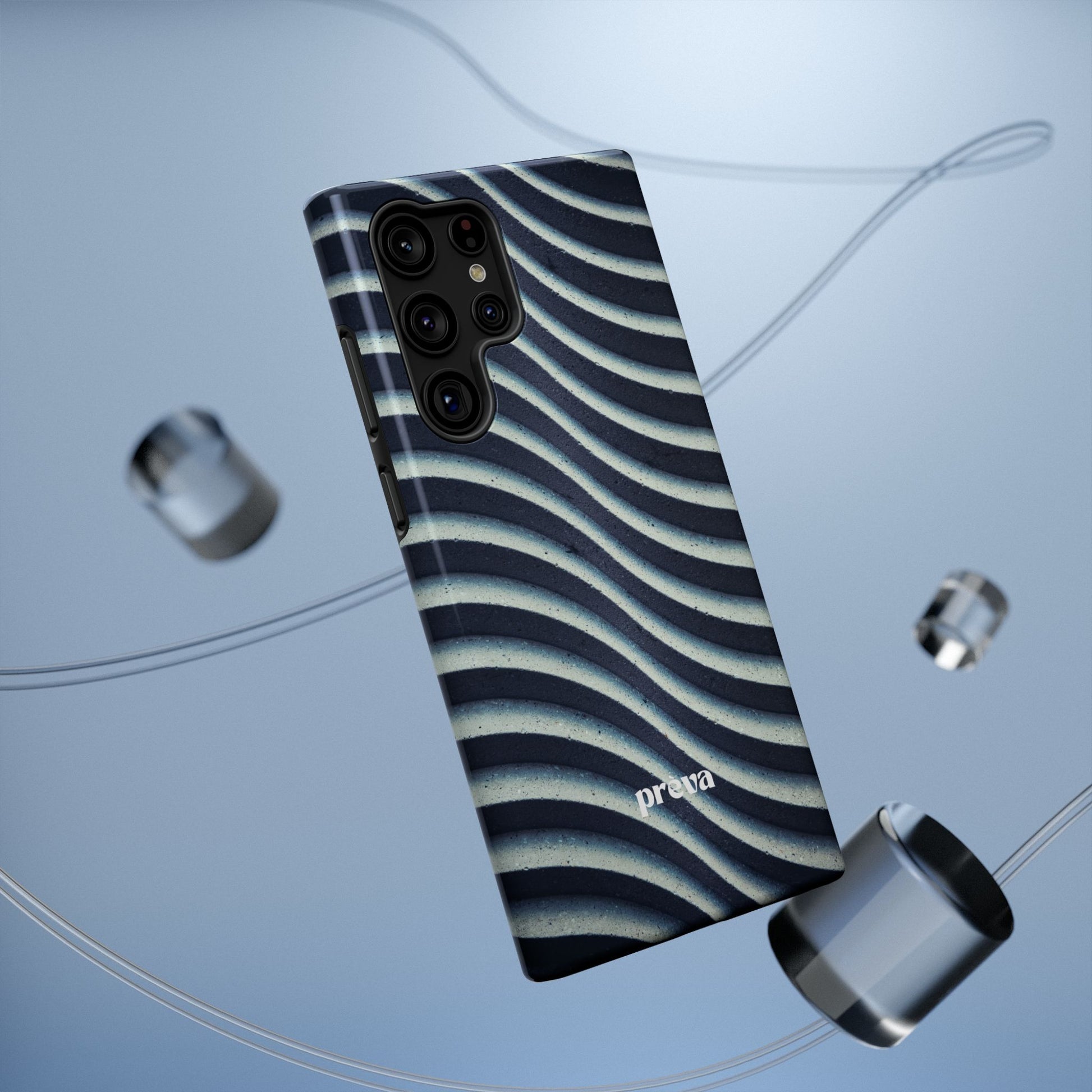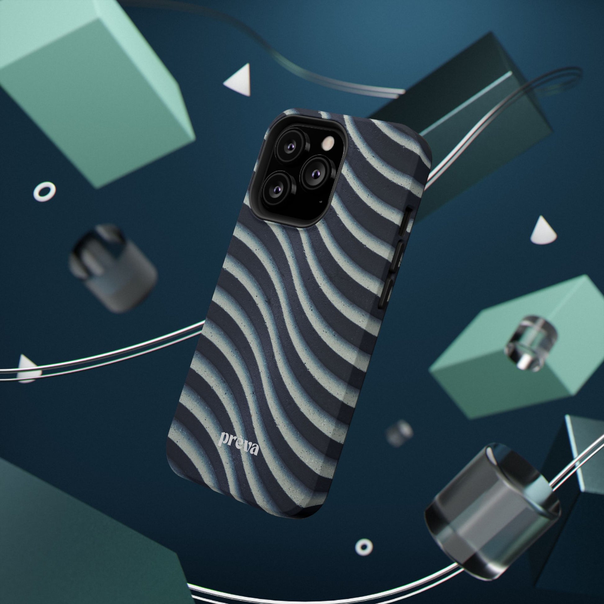 Sculpted waves ripple across this impact-resistant phone case, catching light in a deep, matte-ready finish. The design feels modern and tactile — like a quiet architecture for your pocket. The dual-layer construction gives weight and reassurance without bulk, while wireless charging stays effortless. Slip it on before a commute or creative meet-up; it wears like a thoughtful detail that complements minimal, design-forward wardrobes.
