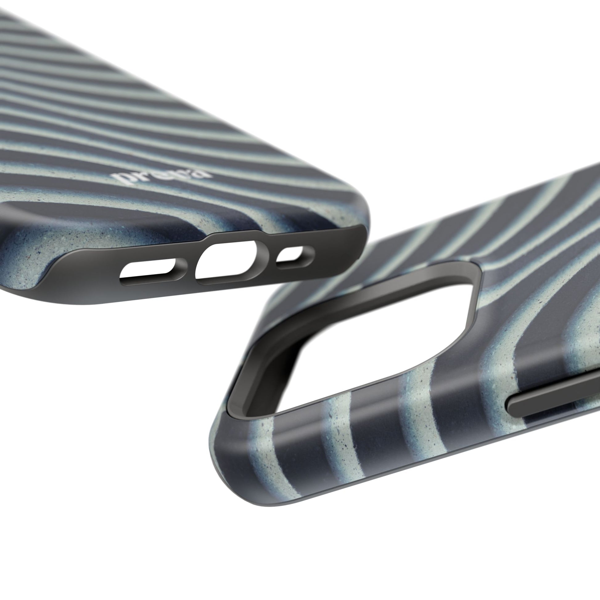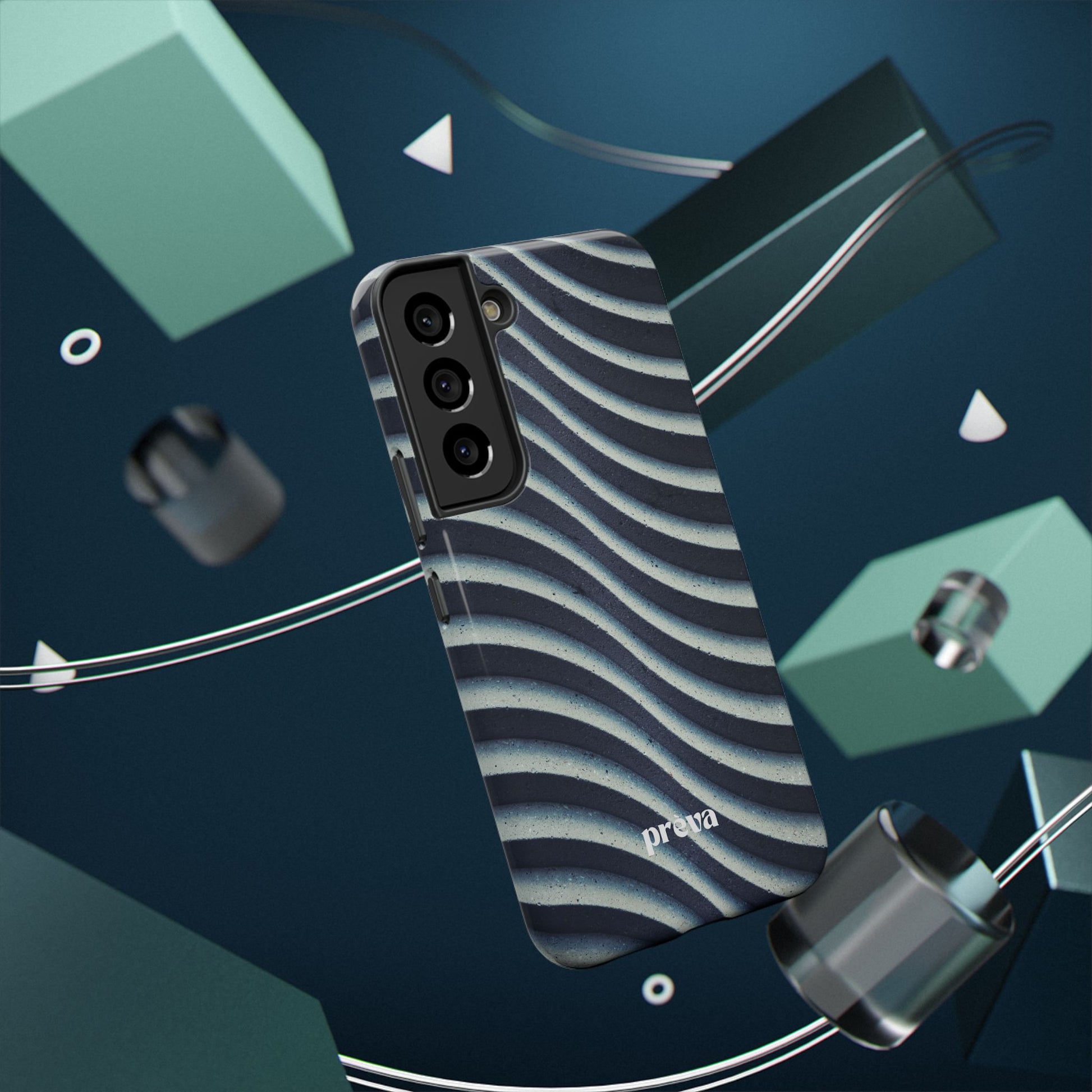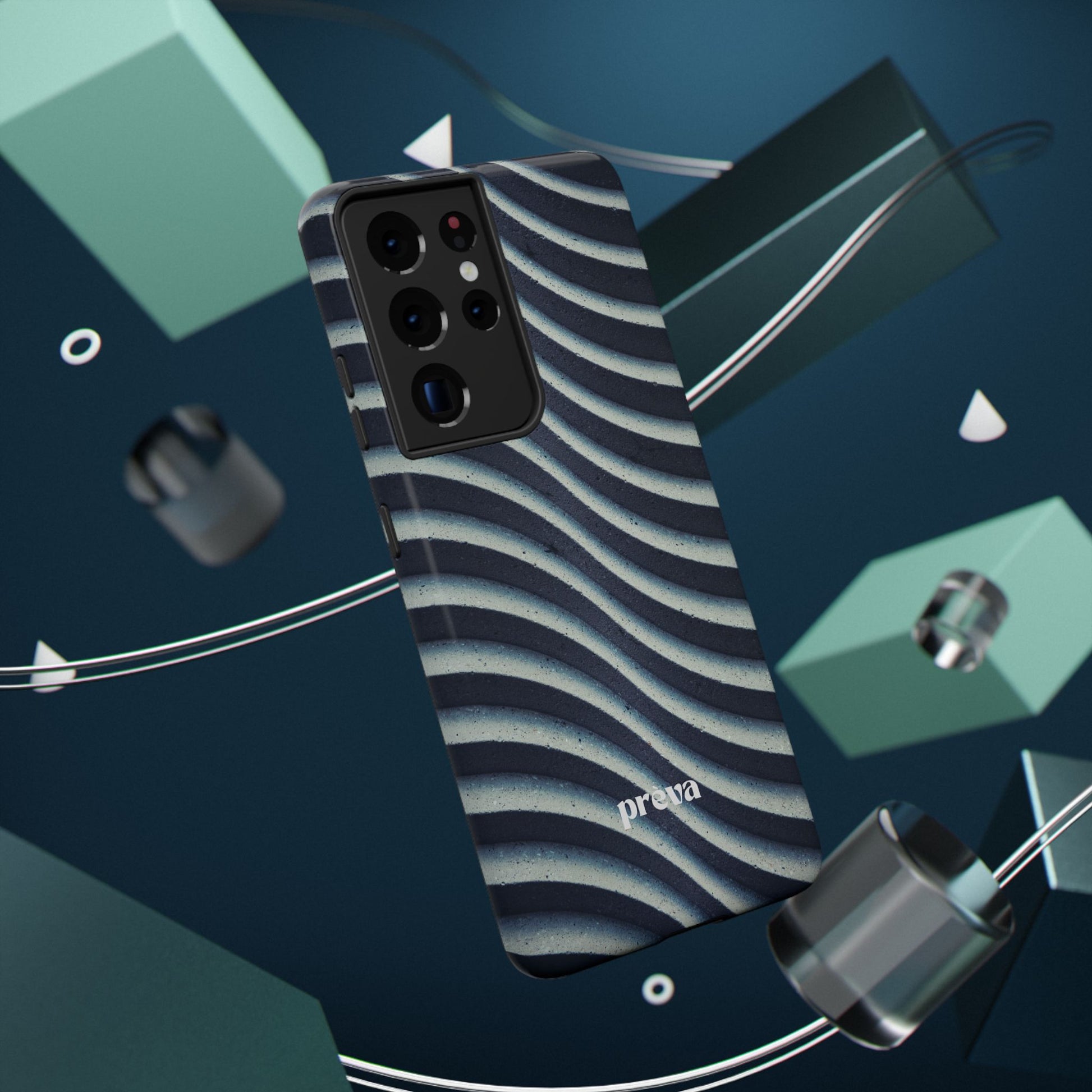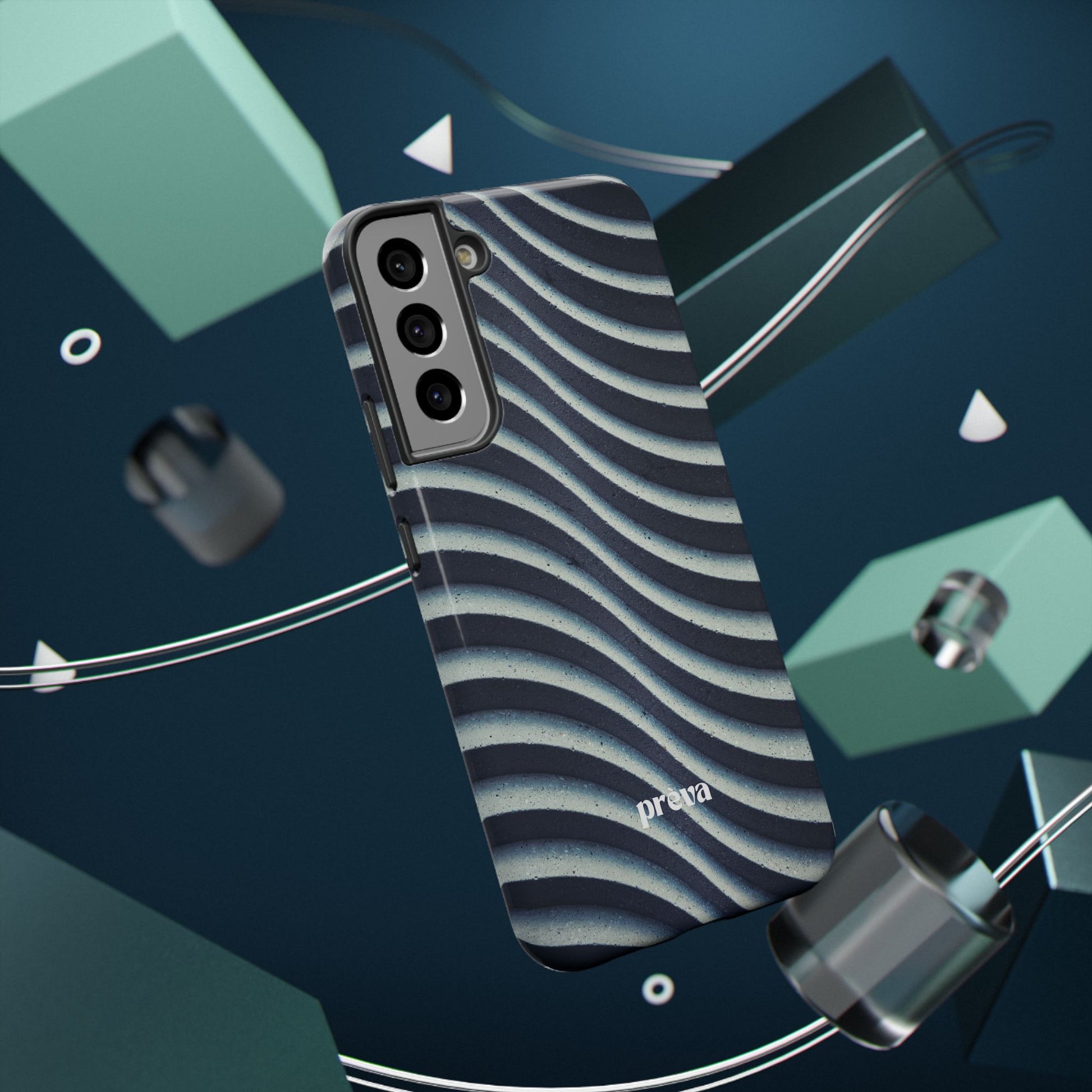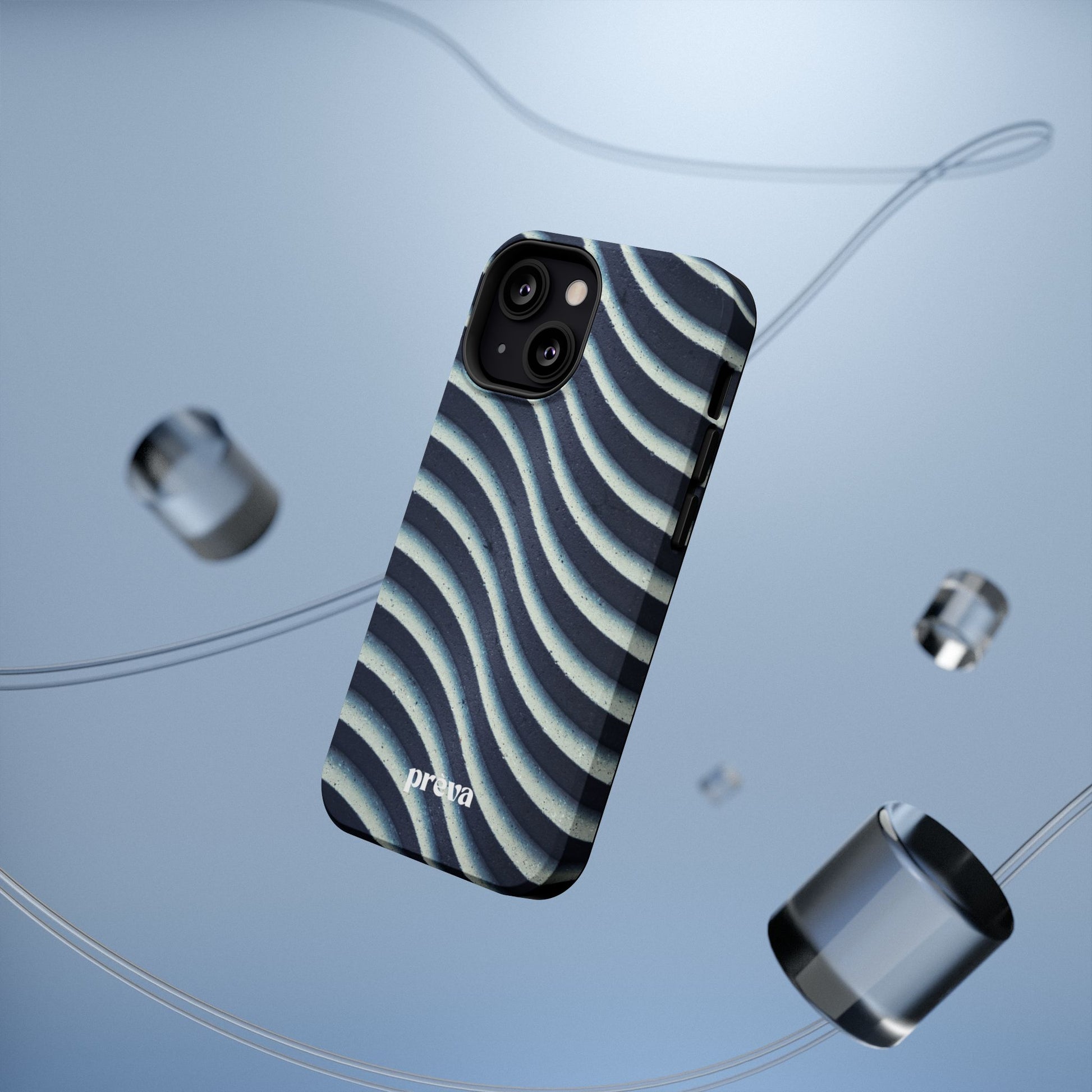 Sculpted waves ripple across this impact-resistant phone case, catching light in a deep, matte-ready finish. The design feels modern and tactile — like a quiet architecture for your pocket. The dual-layer construction gives weight and reassurance without bulk, while wireless charging stays effortless. Slip it on before a commute or creative meet-up; it wears like a thoughtful detail that complements minimal, design-forward wardrobes.