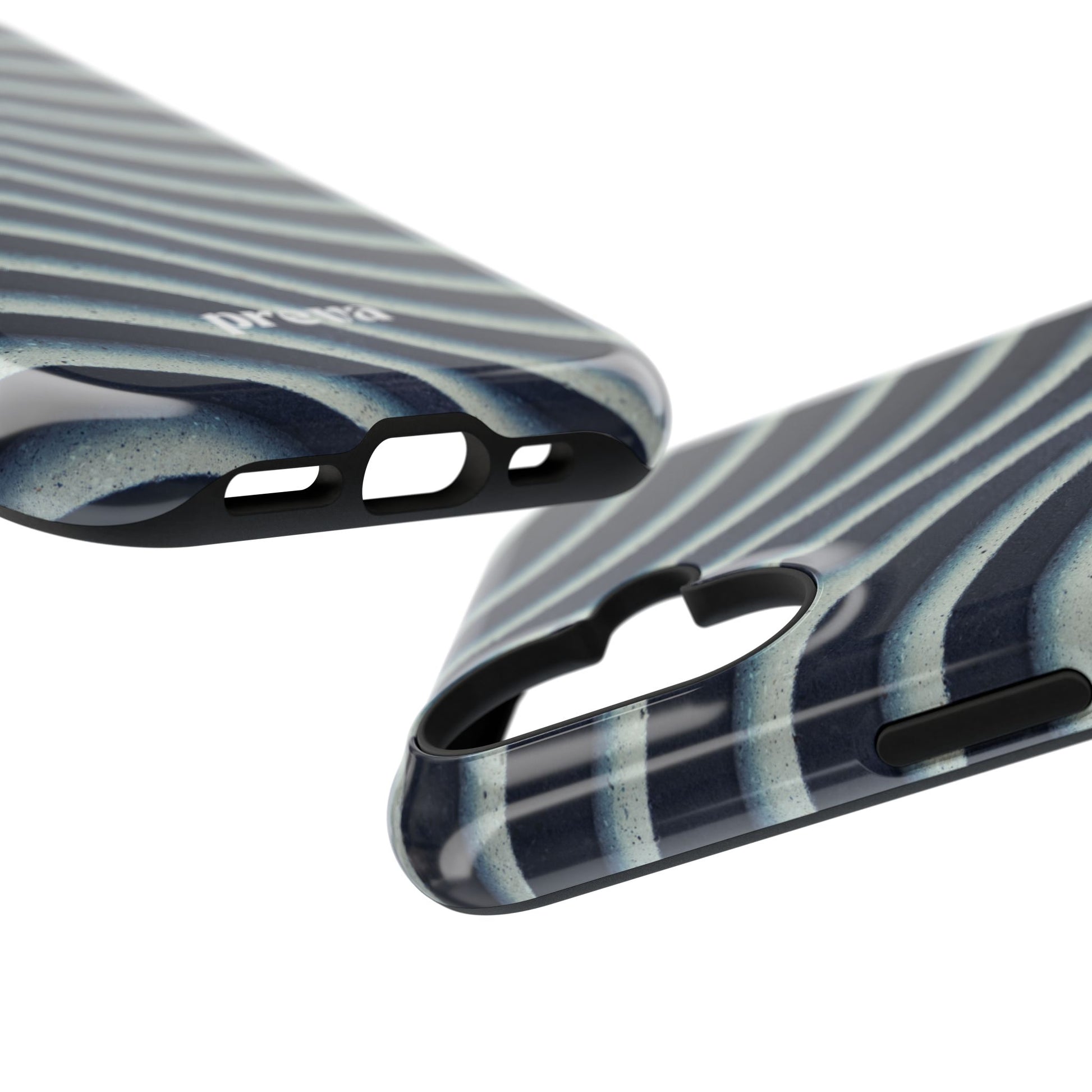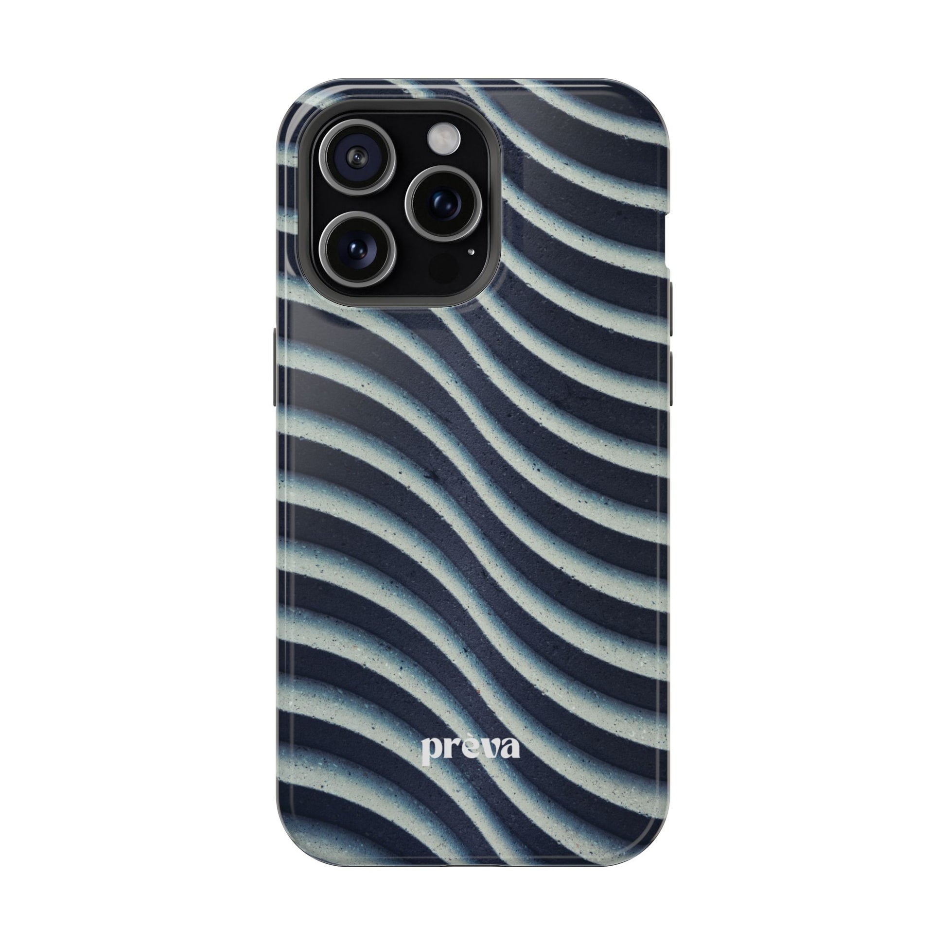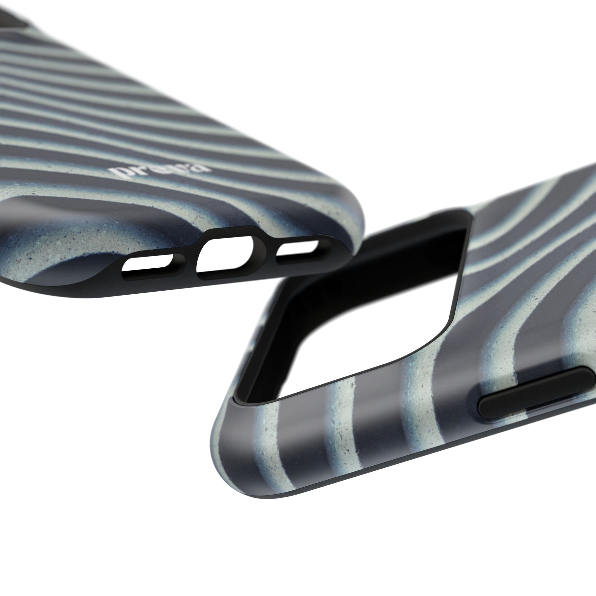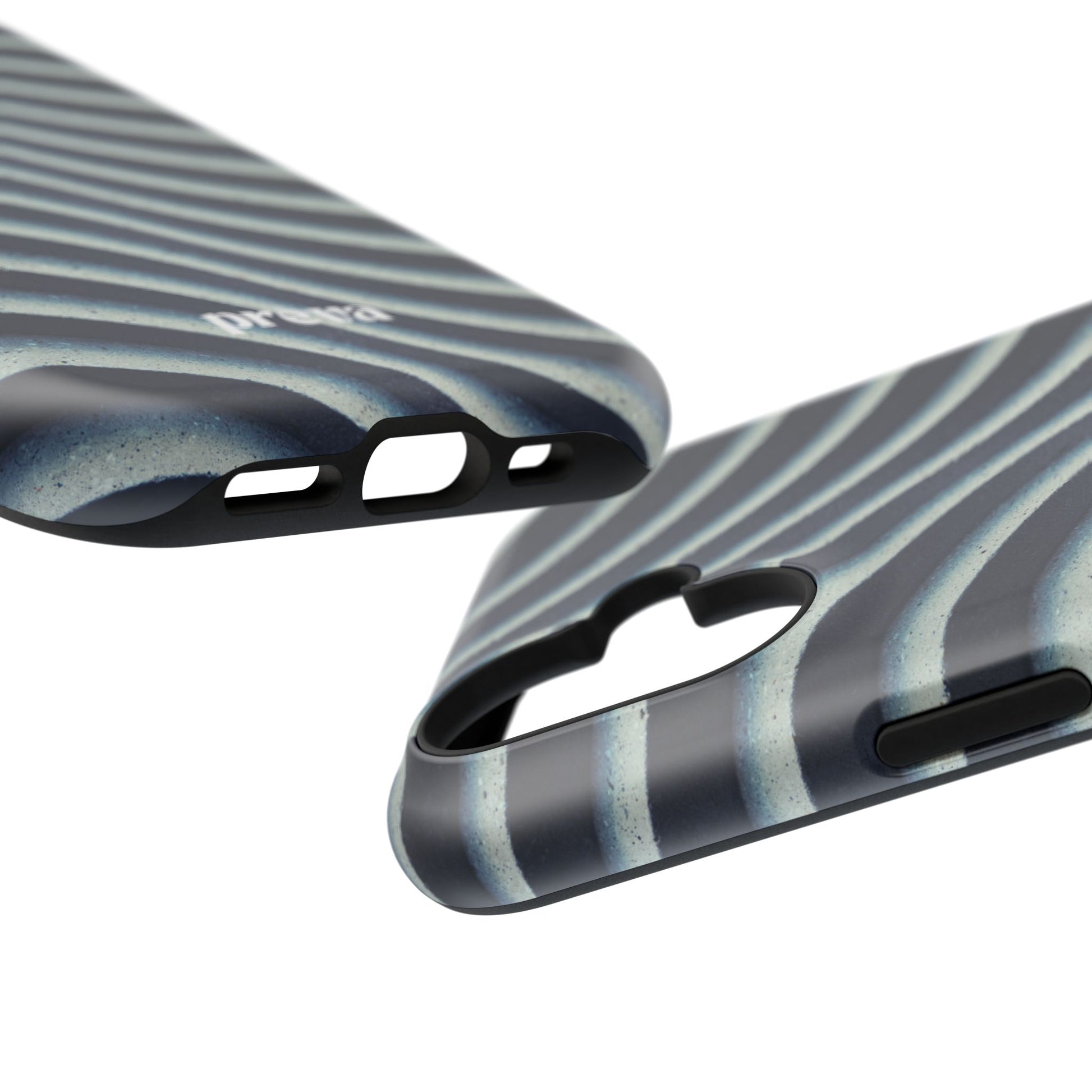 Sculpted waves ripple across this impact-resistant phone case, catching light in a deep, matte-ready finish. The design feels modern and tactile — like a quiet architecture for your pocket. The dual-layer construction gives weight and reassurance without bulk, while wireless charging stays effortless. Slip it on before a commute or creative meet-up; it wears like a thoughtful detail that complements minimal, design-forward wardrobes.