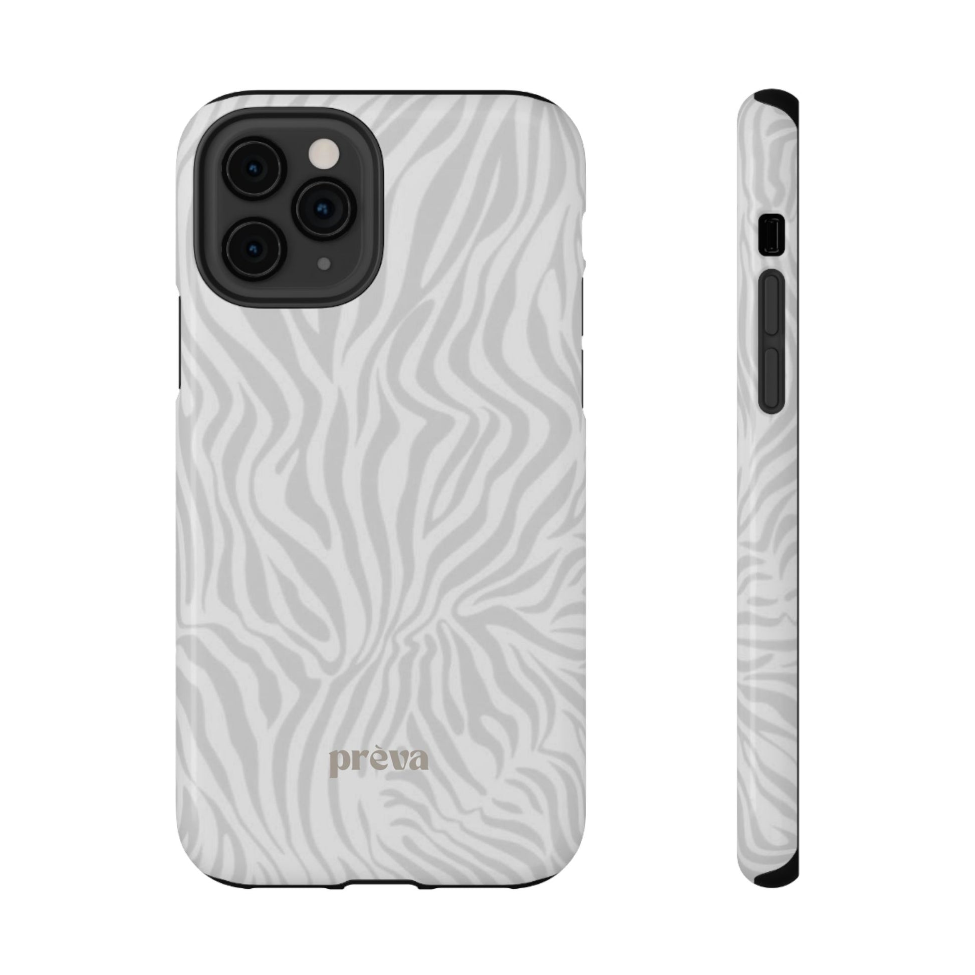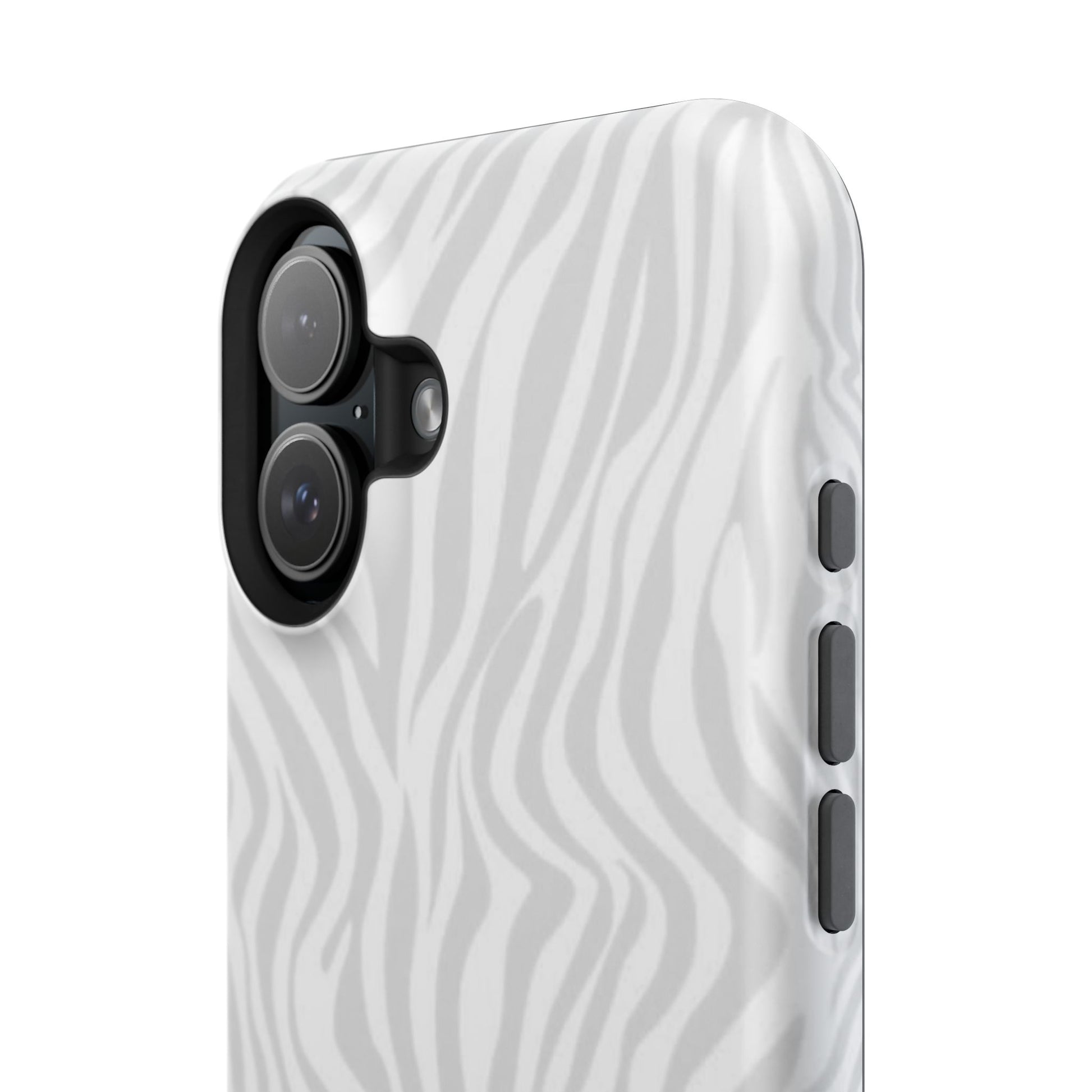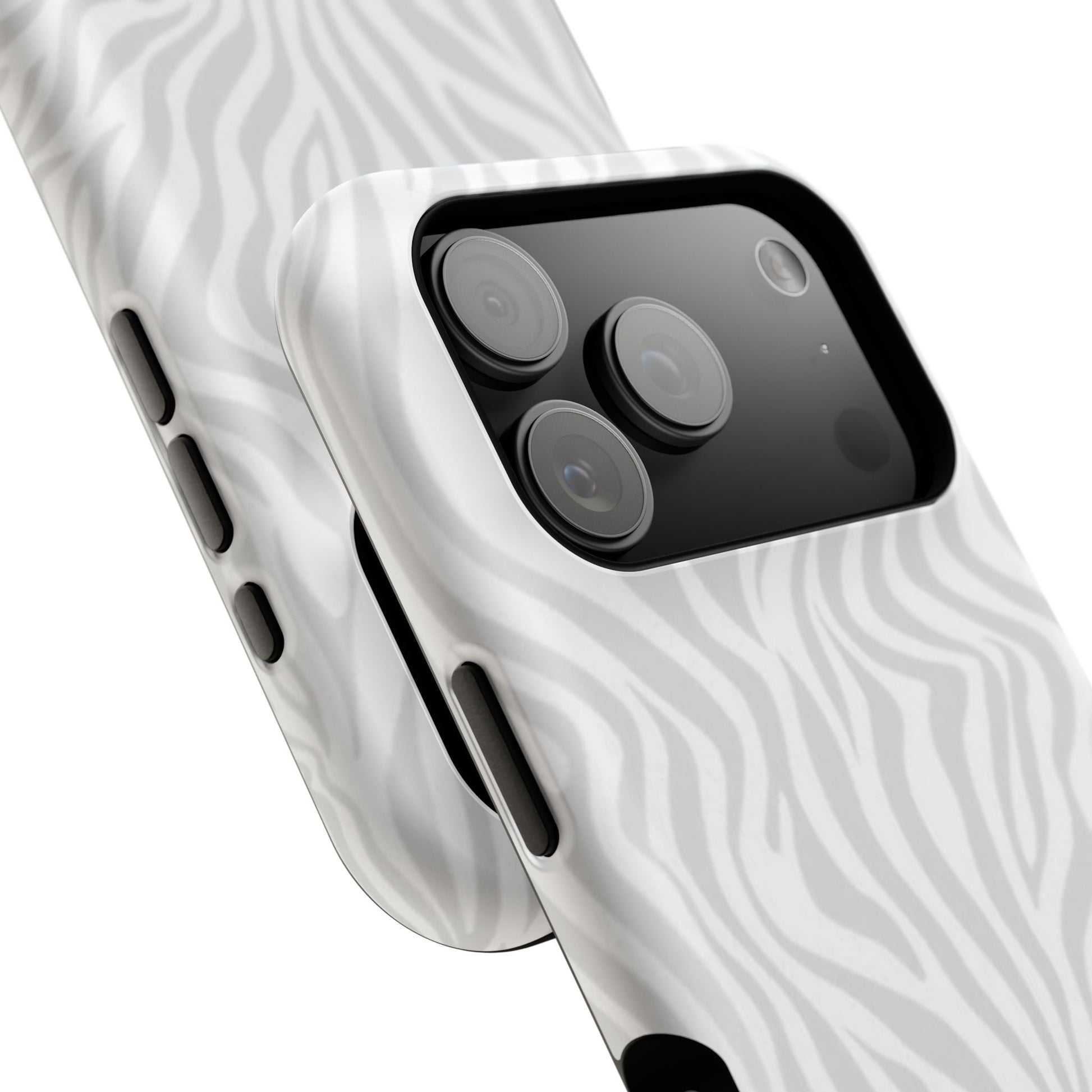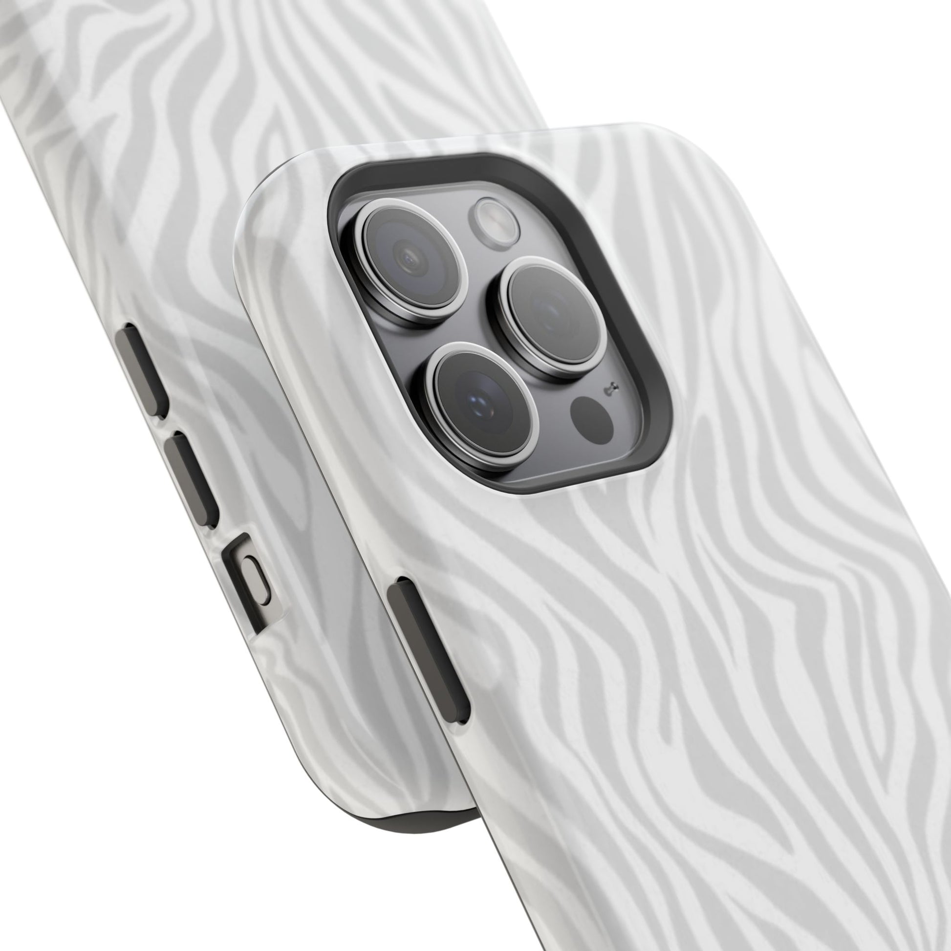 This slim, impact-resistant phone case brings quiet sophistication to everyday carry. A soft, monochrome zebra pattern wraps the exterior in a subtle, textured look that reads understated and modern. The rigid polycarbonate shell and inner TPU liner work together to absorb shocks and resist scratches, while the full-wrap print keeps the design seamless around edges. Choose glossy for a bright, reflective finish or matte for a velvety, low-sheen feel. Lightweight and wireless-charging compatible, it slips into pockets and bags without bulk — built for people who want elevated style and dependable protection during daily commutes, nights out, or travel.