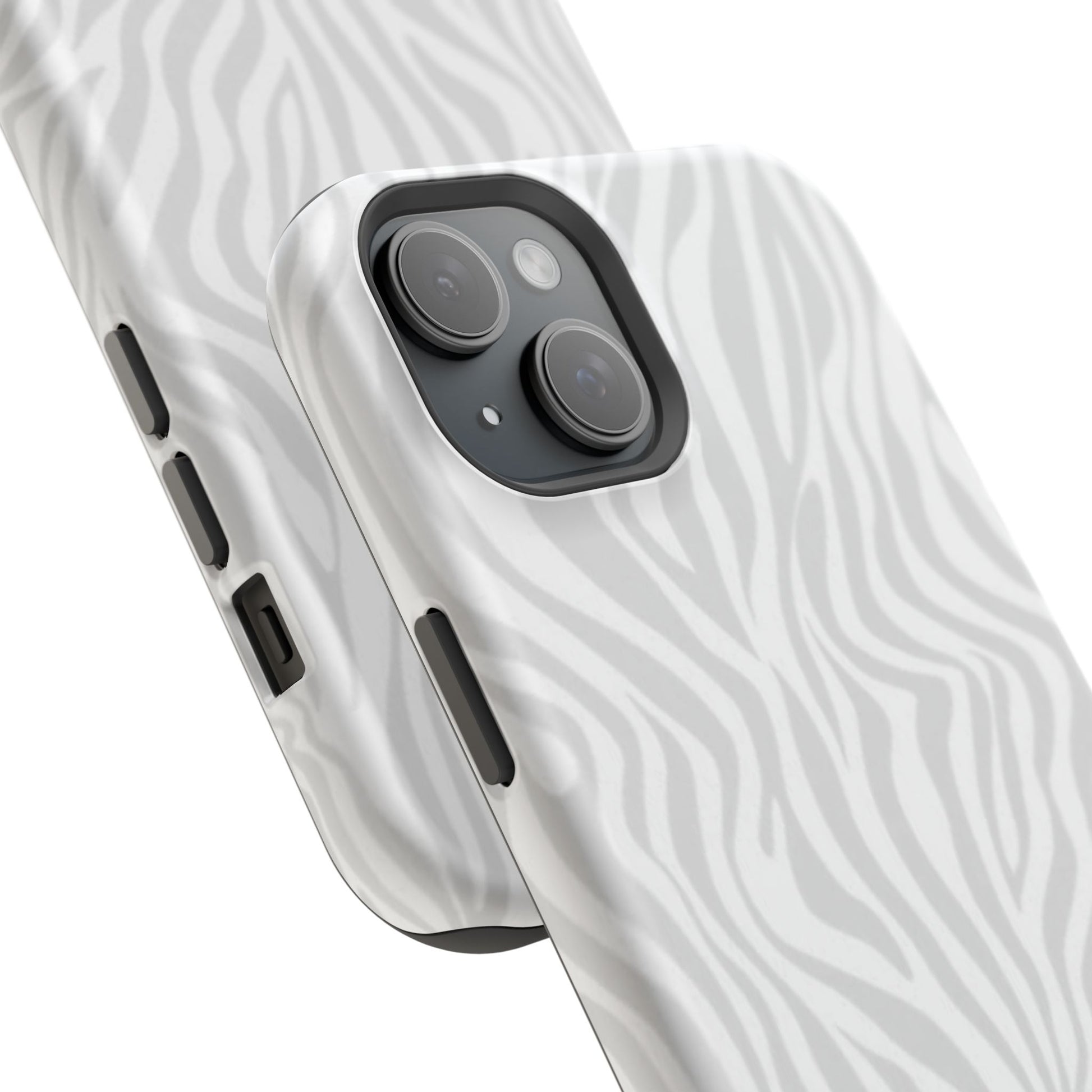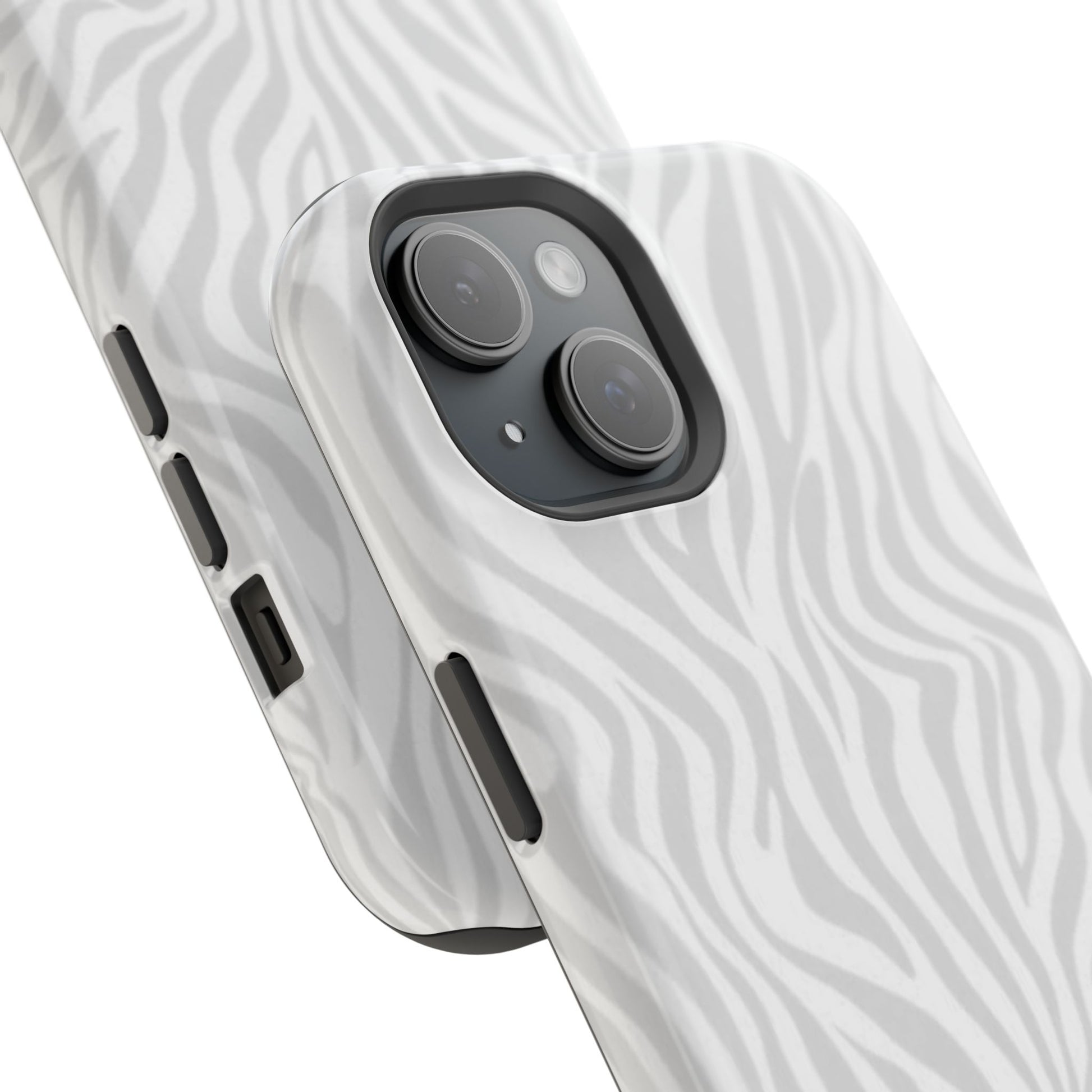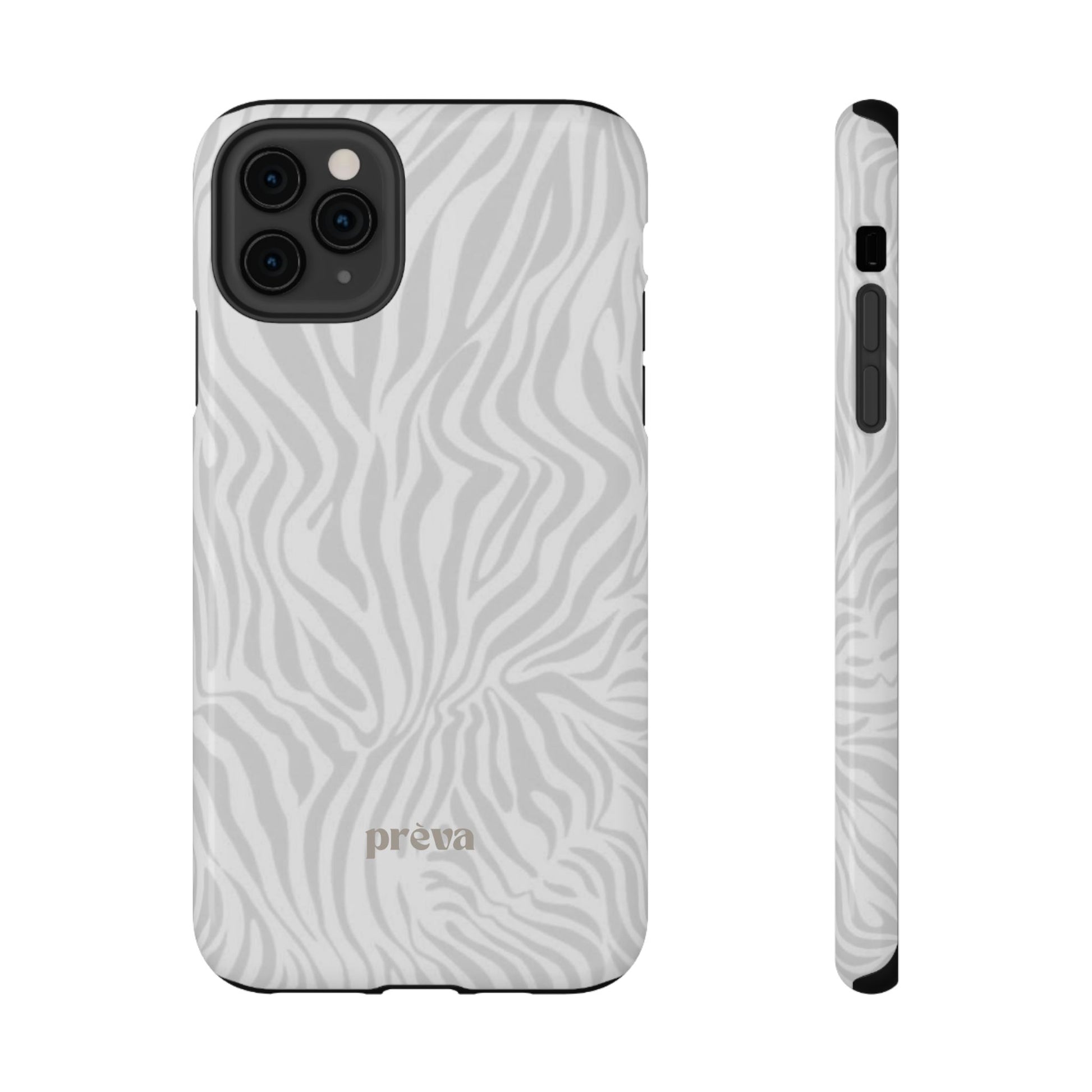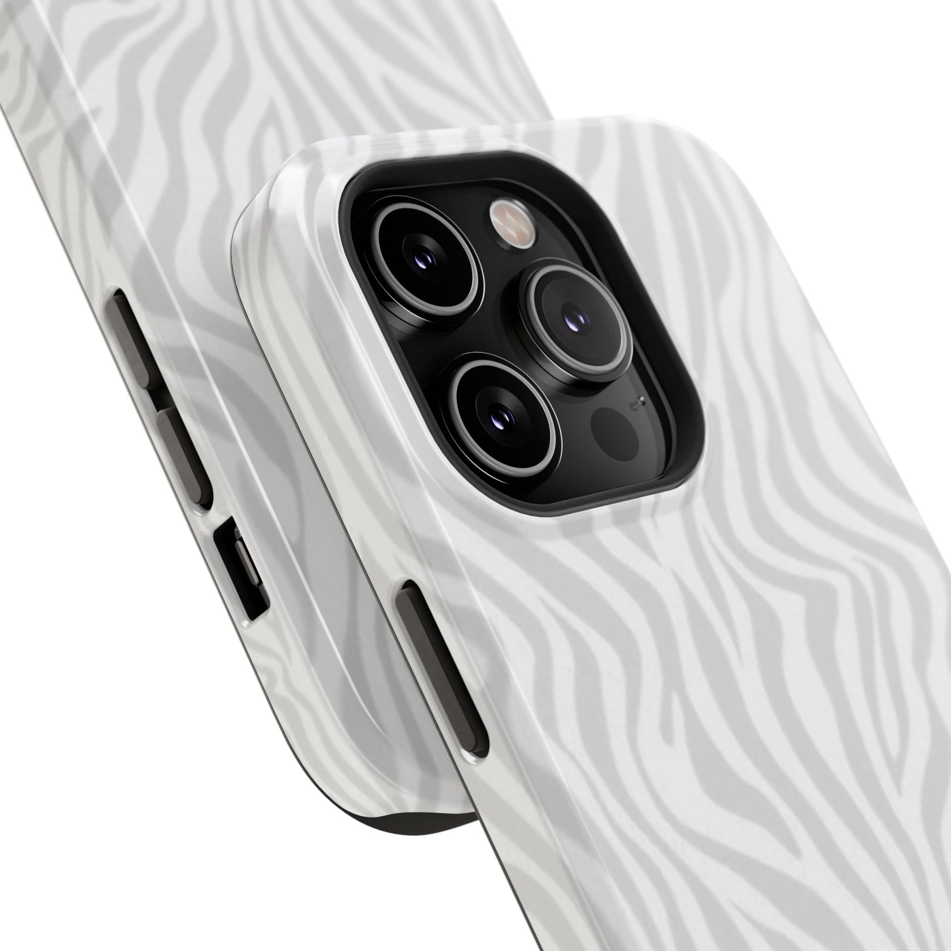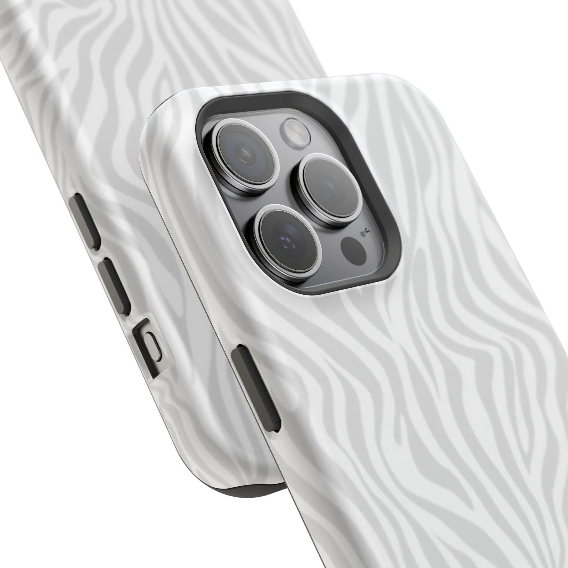 This slim, impact-resistant phone case brings quiet sophistication to everyday carry. A soft, monochrome zebra pattern wraps the exterior in a subtle, textured look that reads understated and modern. The rigid polycarbonate shell and inner TPU liner work together to absorb shocks and resist scratches, while the full-wrap print keeps the design seamless around edges. Choose glossy for a bright, reflective finish or matte for a velvety, low-sheen feel. Lightweight and wireless-charging compatible, it slips into pockets and bags without bulk — built for people who want elevated style and dependable protection during daily commutes, nights out, or travel.