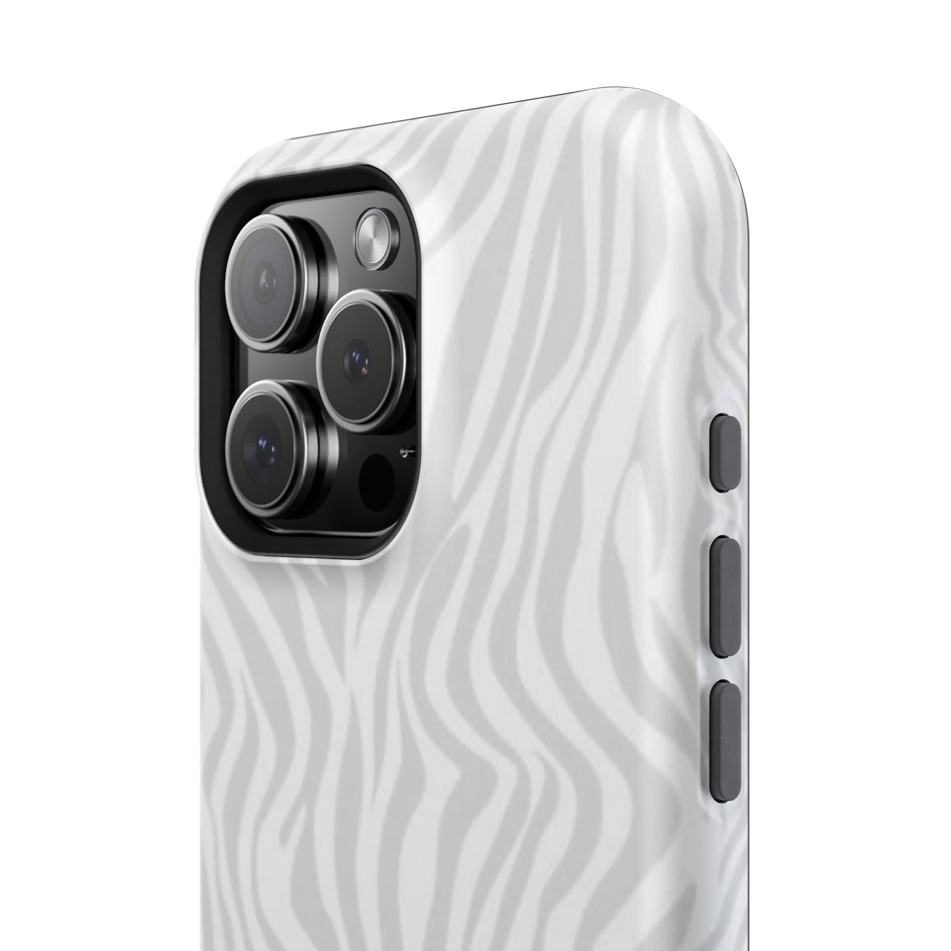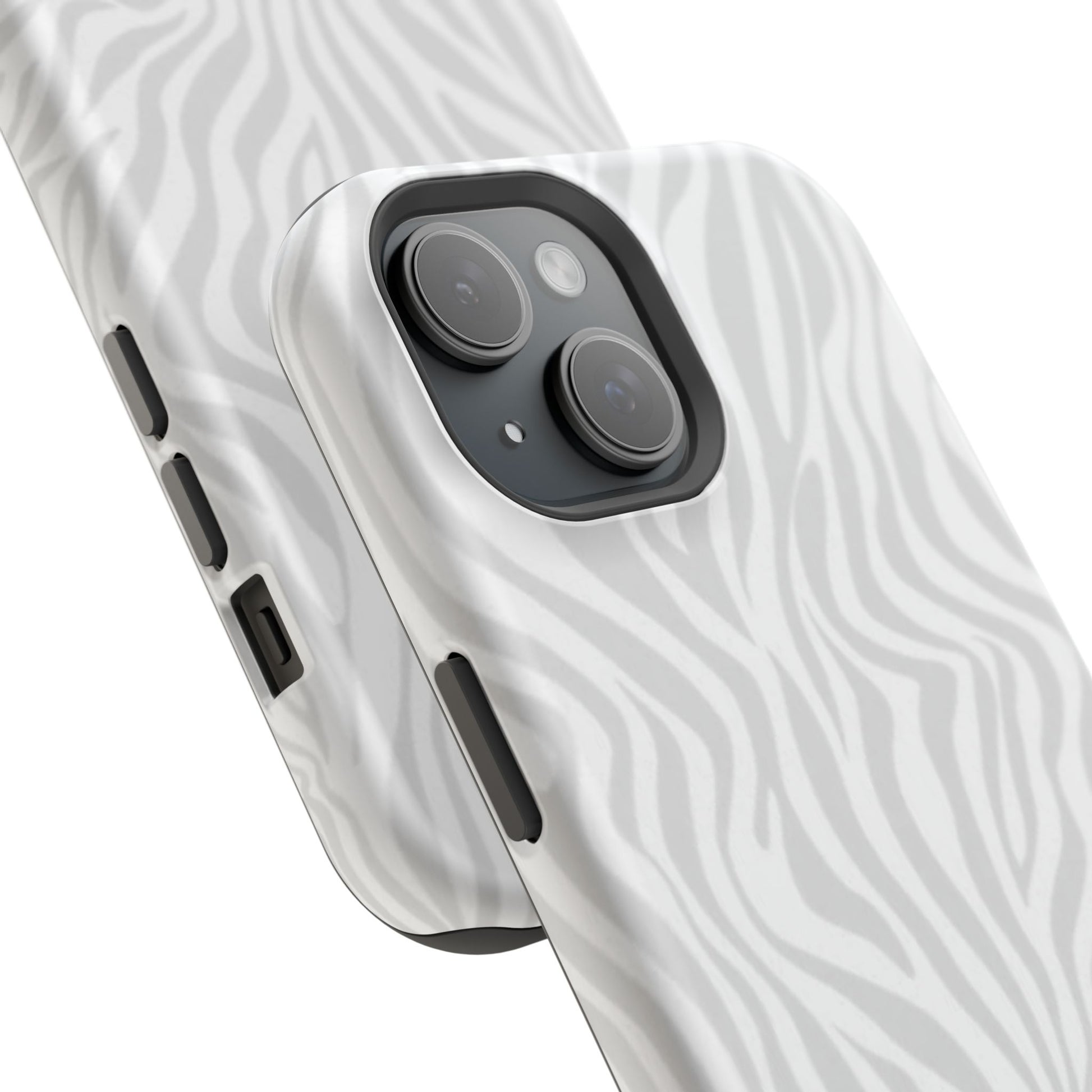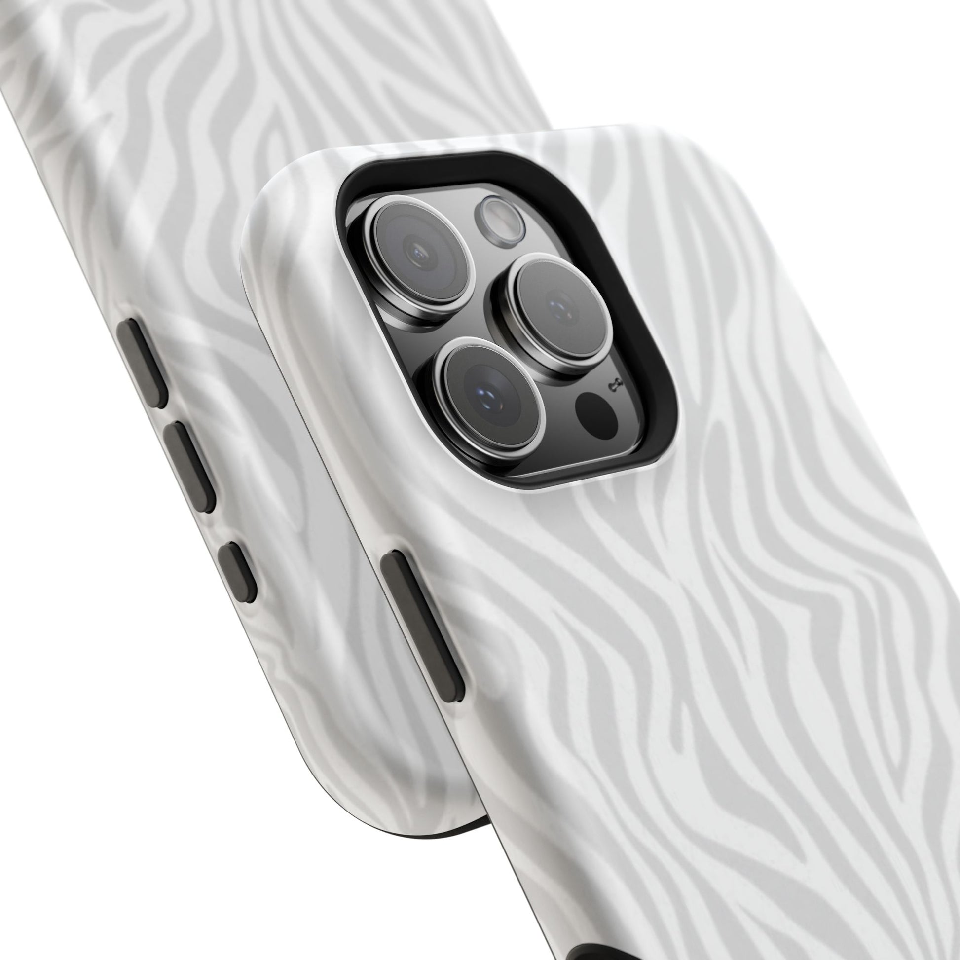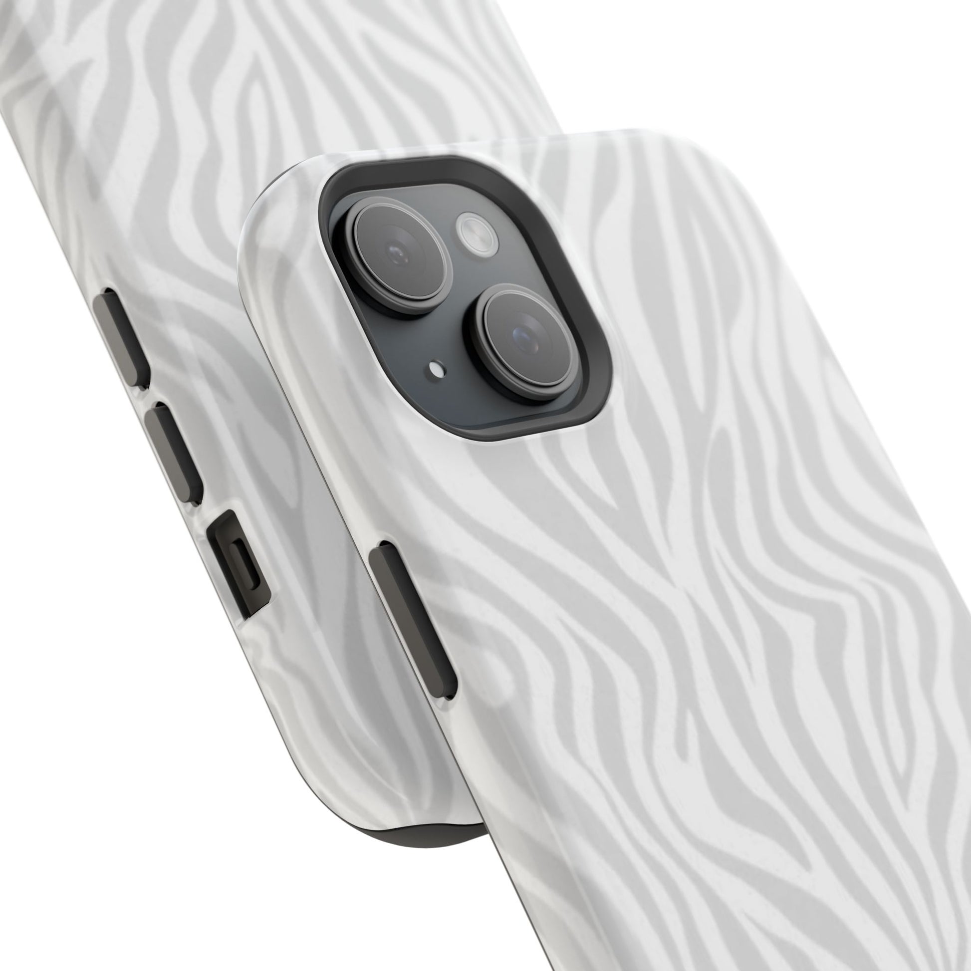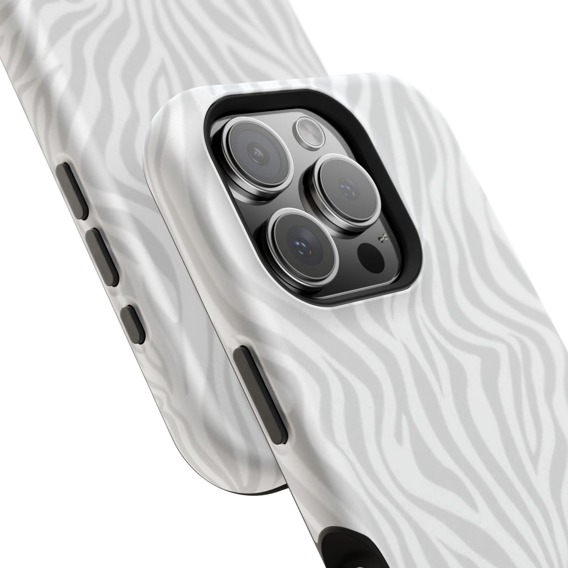 This slim, impact-resistant phone case brings quiet sophistication to everyday carry. A soft, monochrome zebra pattern wraps the exterior in a subtle, textured look that reads understated and modern. The rigid polycarbonate shell and inner TPU liner work together to absorb shocks and resist scratches, while the full-wrap print keeps the design seamless around edges. Choose glossy for a bright, reflective finish or matte for a velvety, low-sheen feel. Lightweight and wireless-charging compatible, it slips into pockets and bags without bulk — built for people who want elevated style and dependable protection during daily commutes, nights out, or travel.