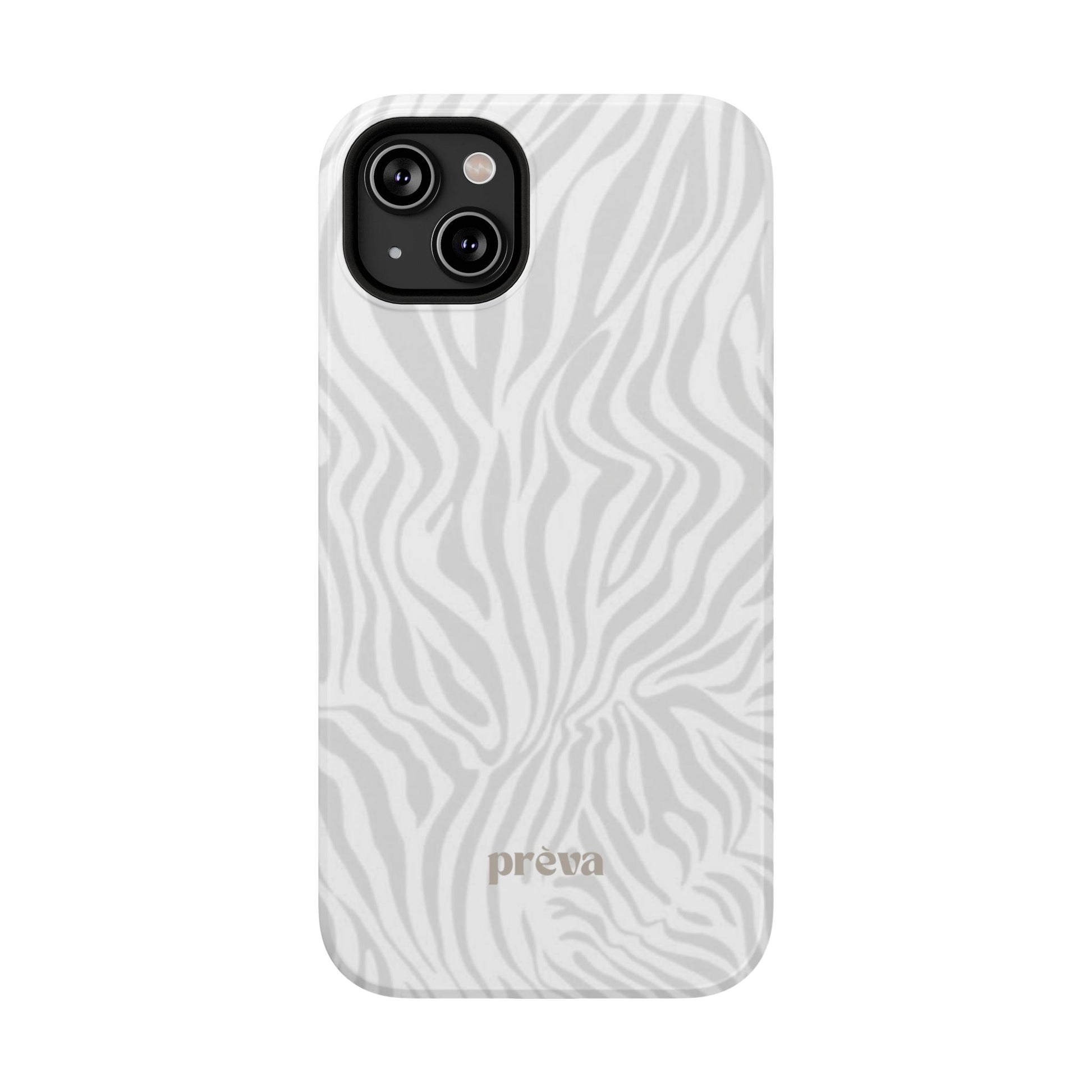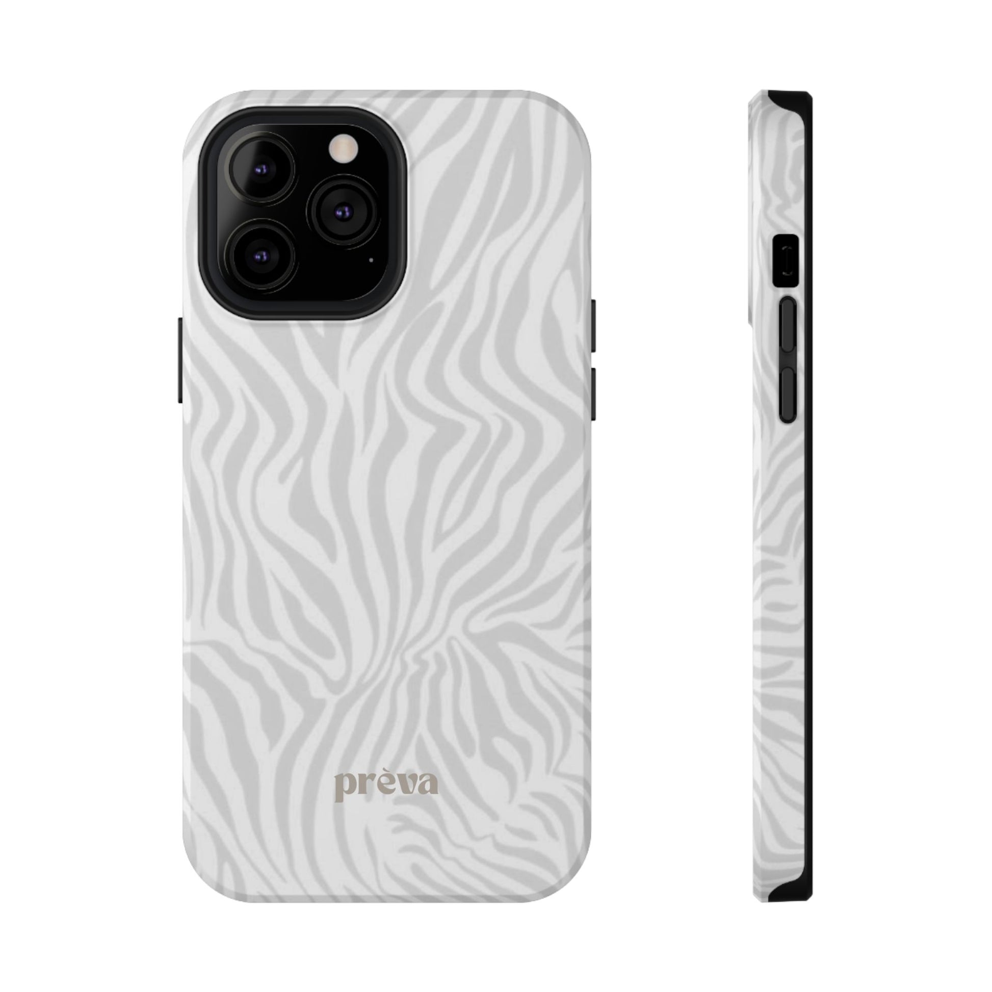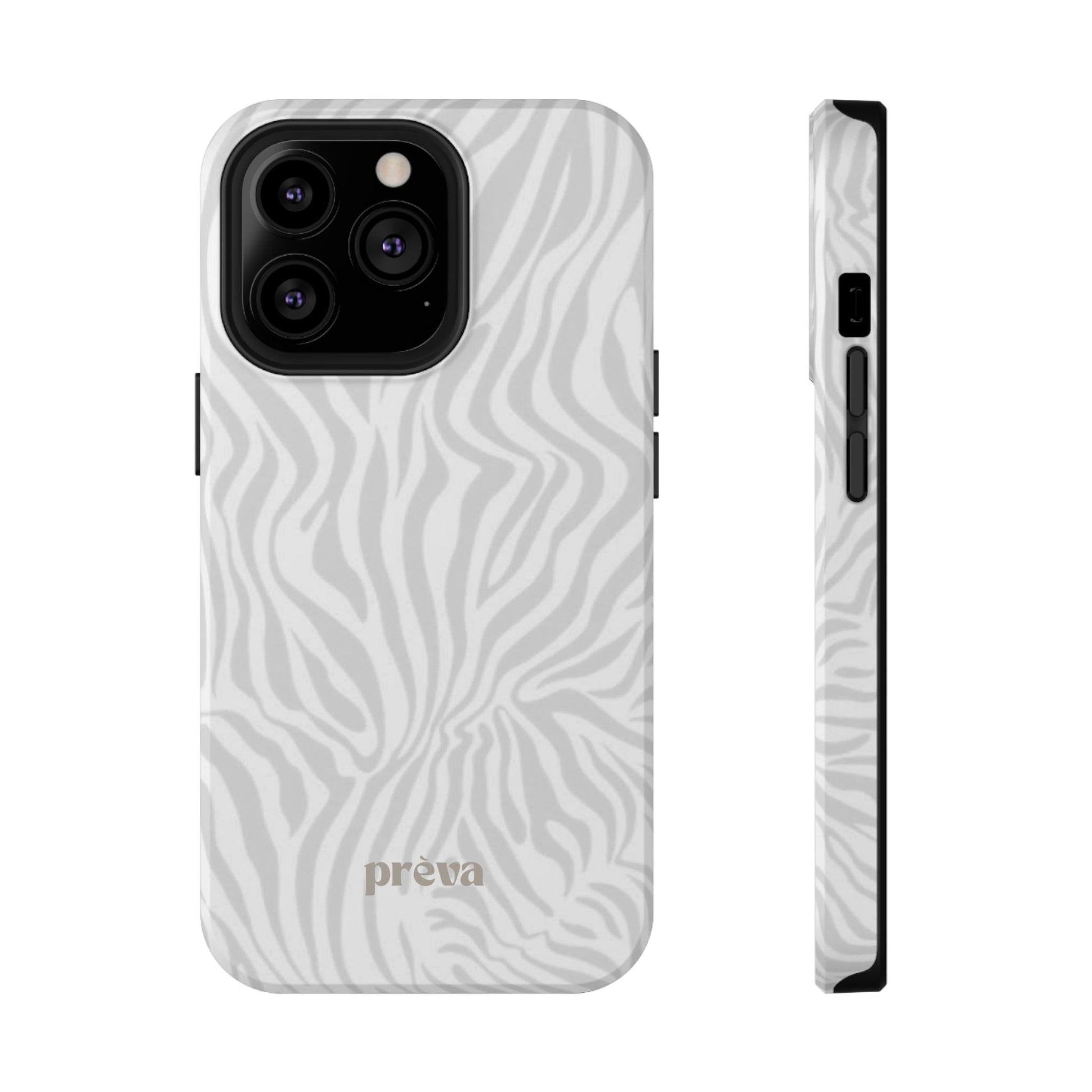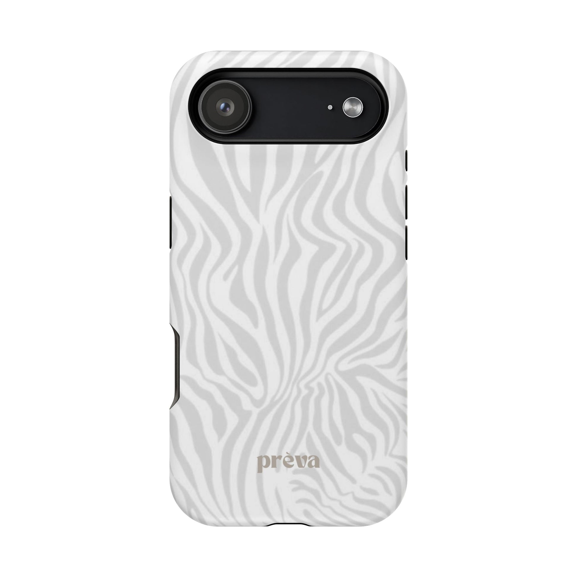 This slim, impact-resistant phone case brings quiet sophistication to everyday carry. A soft, monochrome zebra pattern wraps the exterior in a subtle, textured look that reads understated and modern. The rigid polycarbonate shell and inner TPU liner work together to absorb shocks and resist scratches, while the full-wrap print keeps the design seamless around edges. Choose glossy for a bright, reflective finish or matte for a velvety, low-sheen feel. Lightweight and wireless-charging compatible, it slips into pockets and bags without bulk — built for people who want elevated style and dependable protection during daily commutes, nights out, or travel.