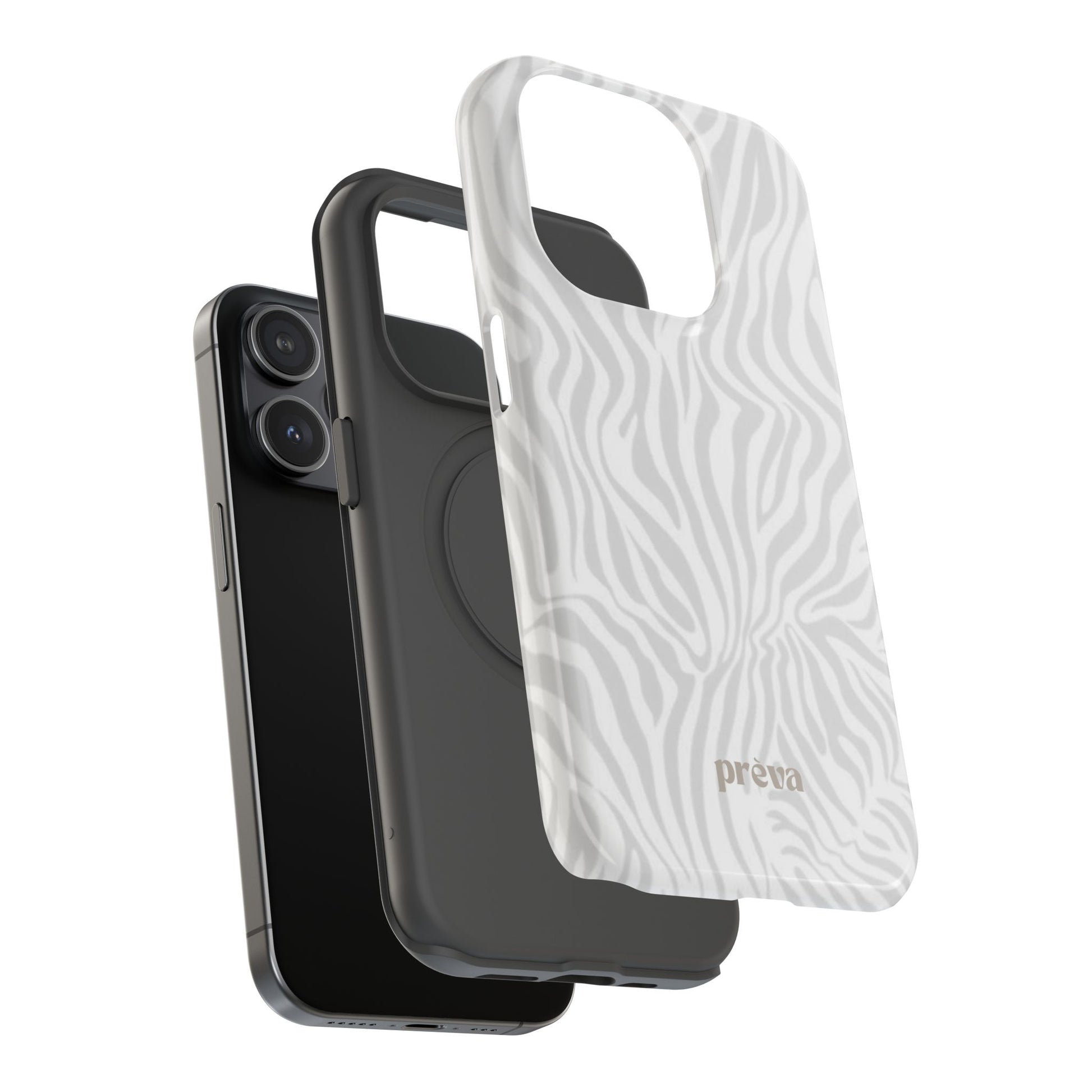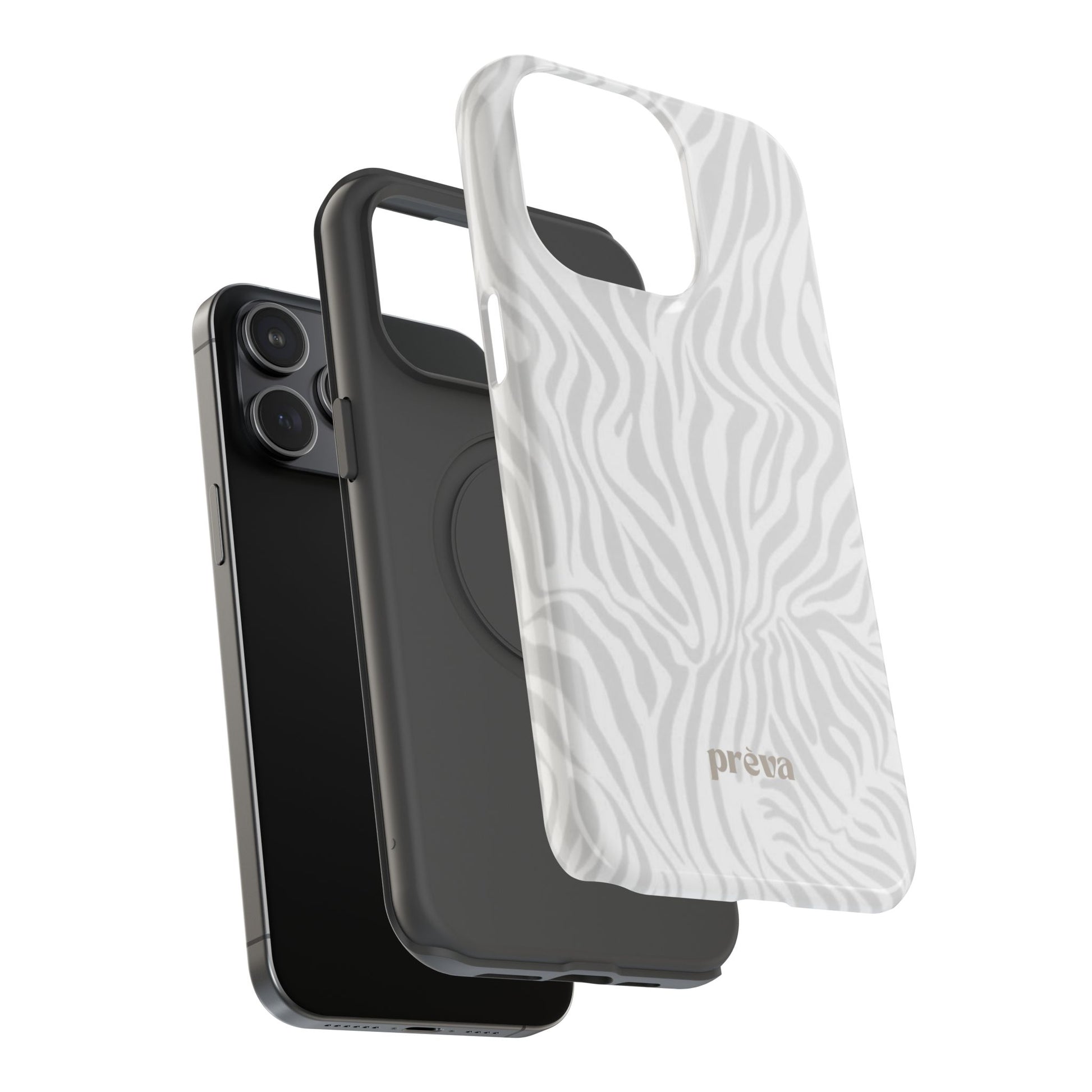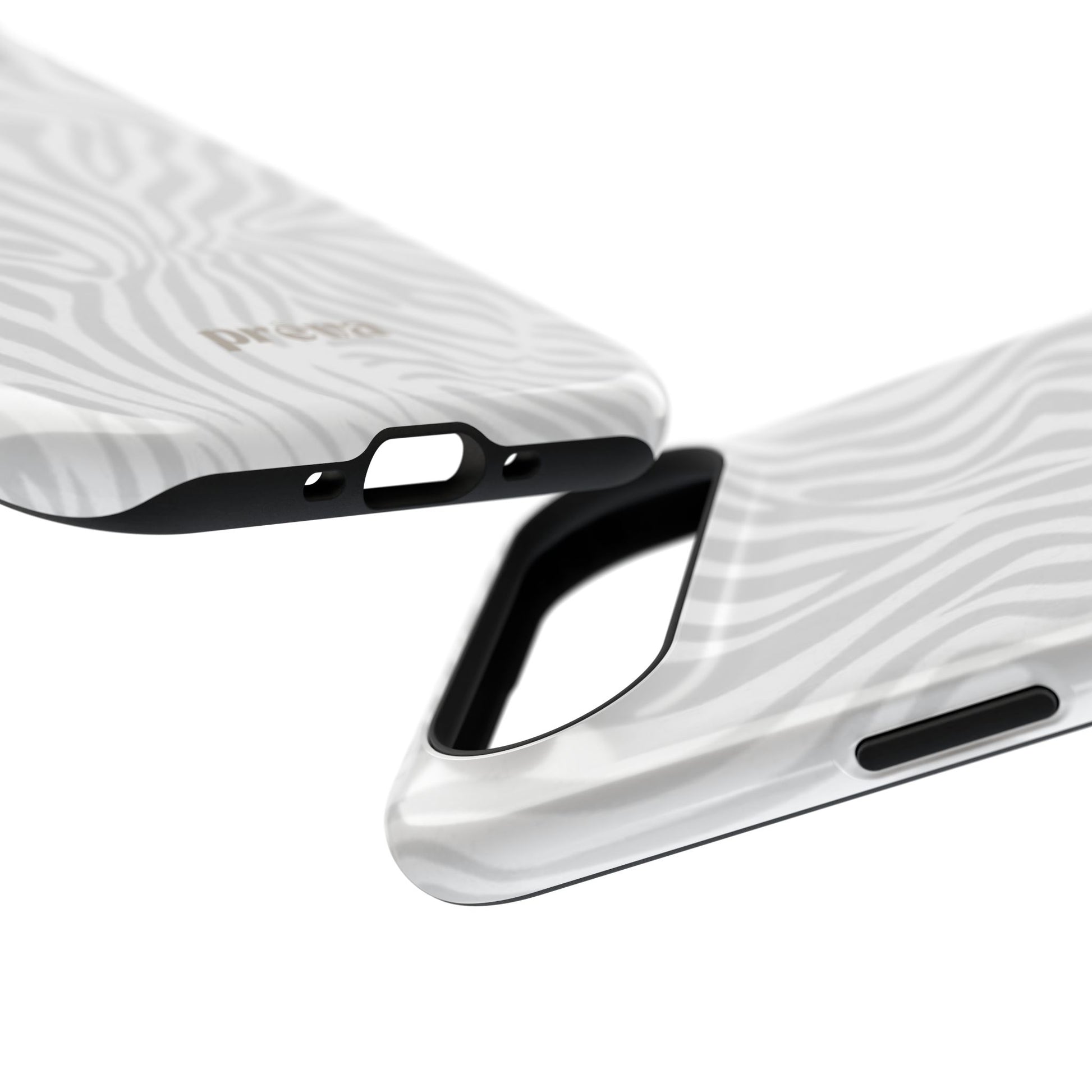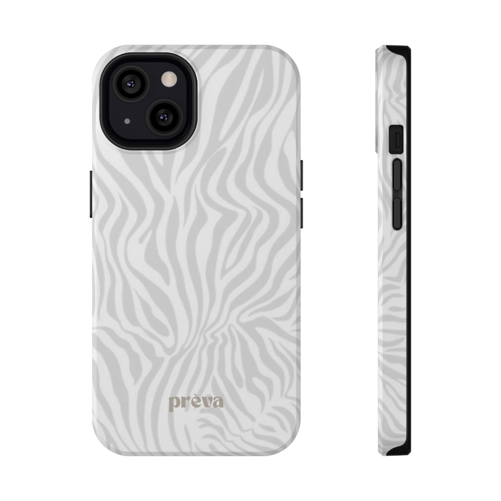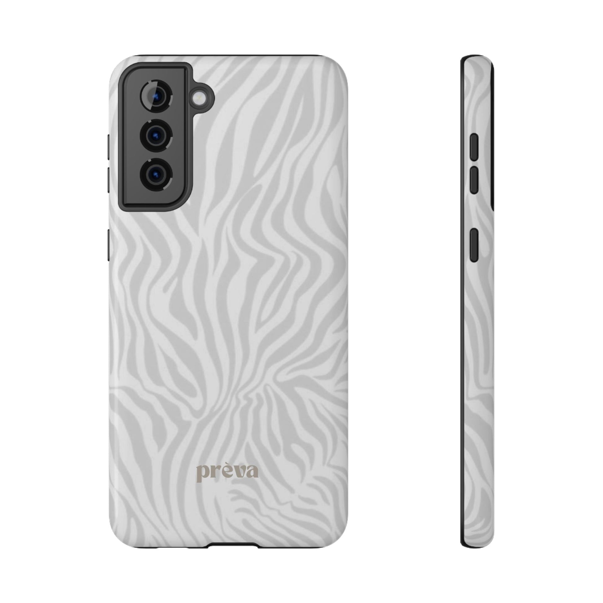 This slim, impact-resistant phone case brings quiet sophistication to everyday carry. A soft, monochrome zebra pattern wraps the exterior in a subtle, textured look that reads understated and modern. The rigid polycarbonate shell and inner TPU liner work together to absorb shocks and resist scratches, while the full-wrap print keeps the design seamless around edges. Choose glossy for a bright, reflective finish or matte for a velvety, low-sheen feel. Lightweight and wireless-charging compatible, it slips into pockets and bags without bulk — built for people who want elevated style and dependable protection during daily commutes, nights out, or travel.