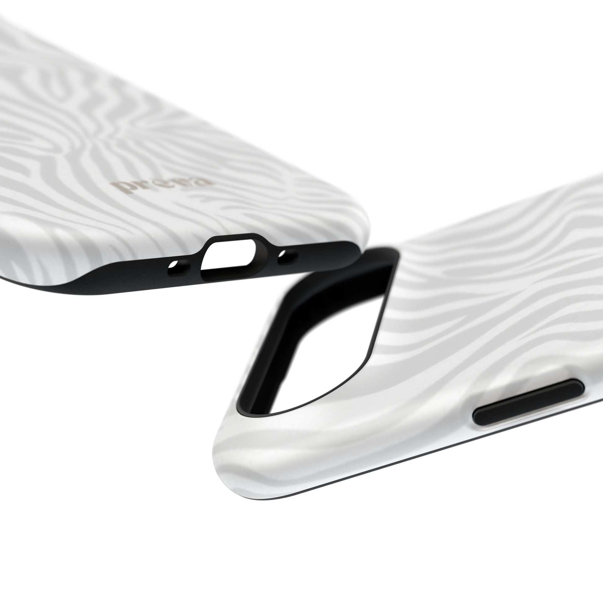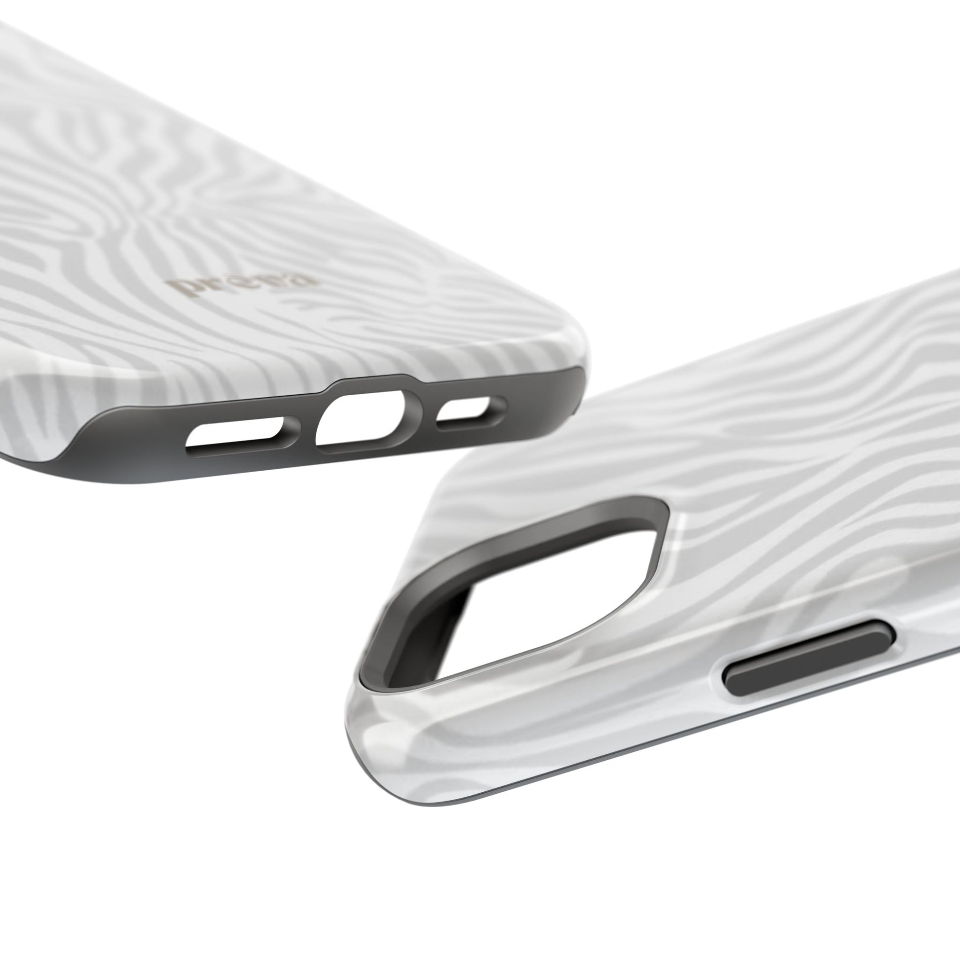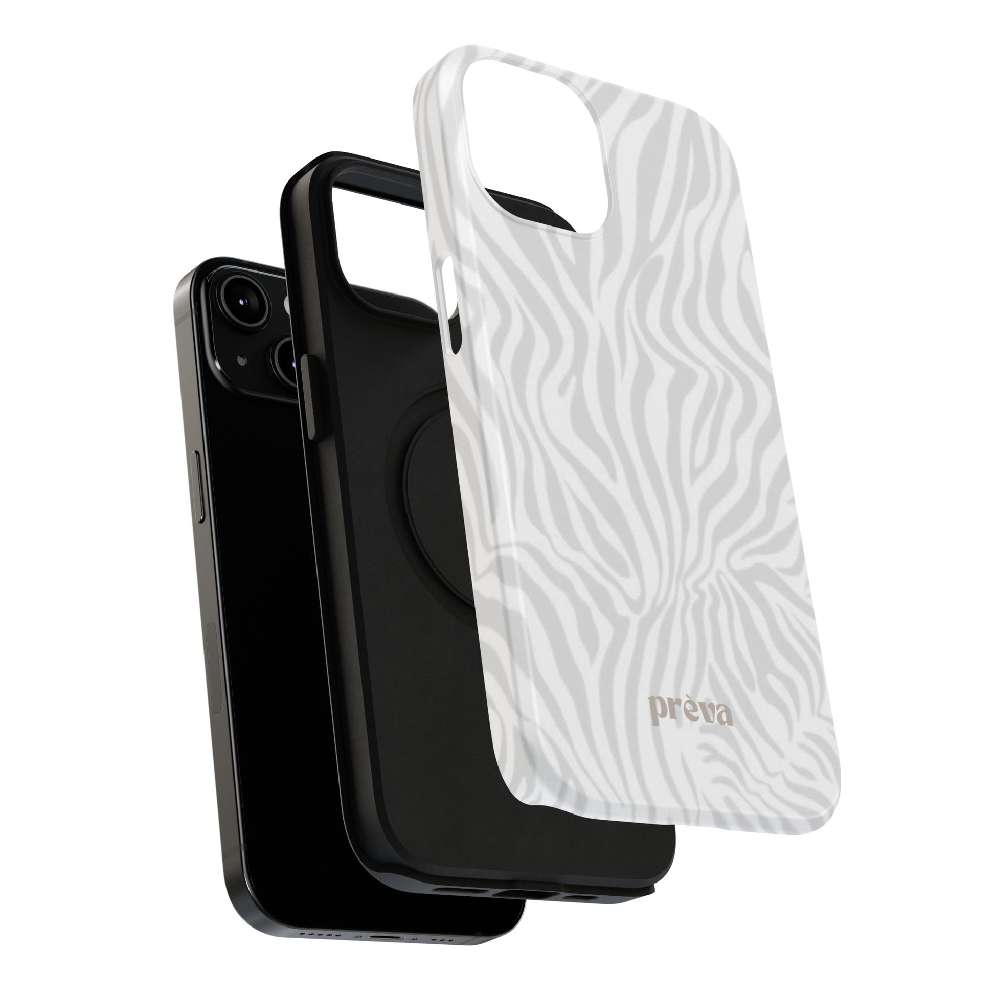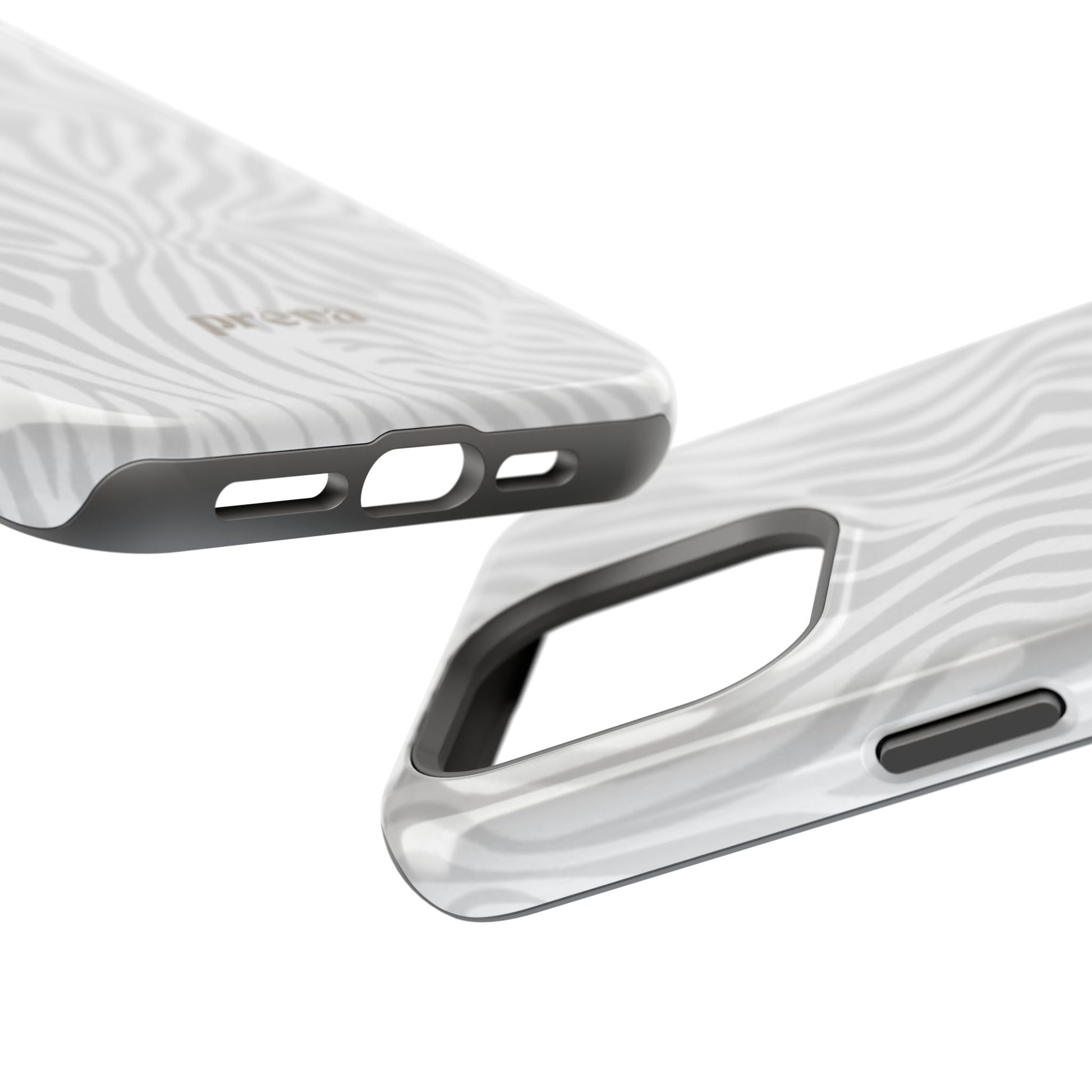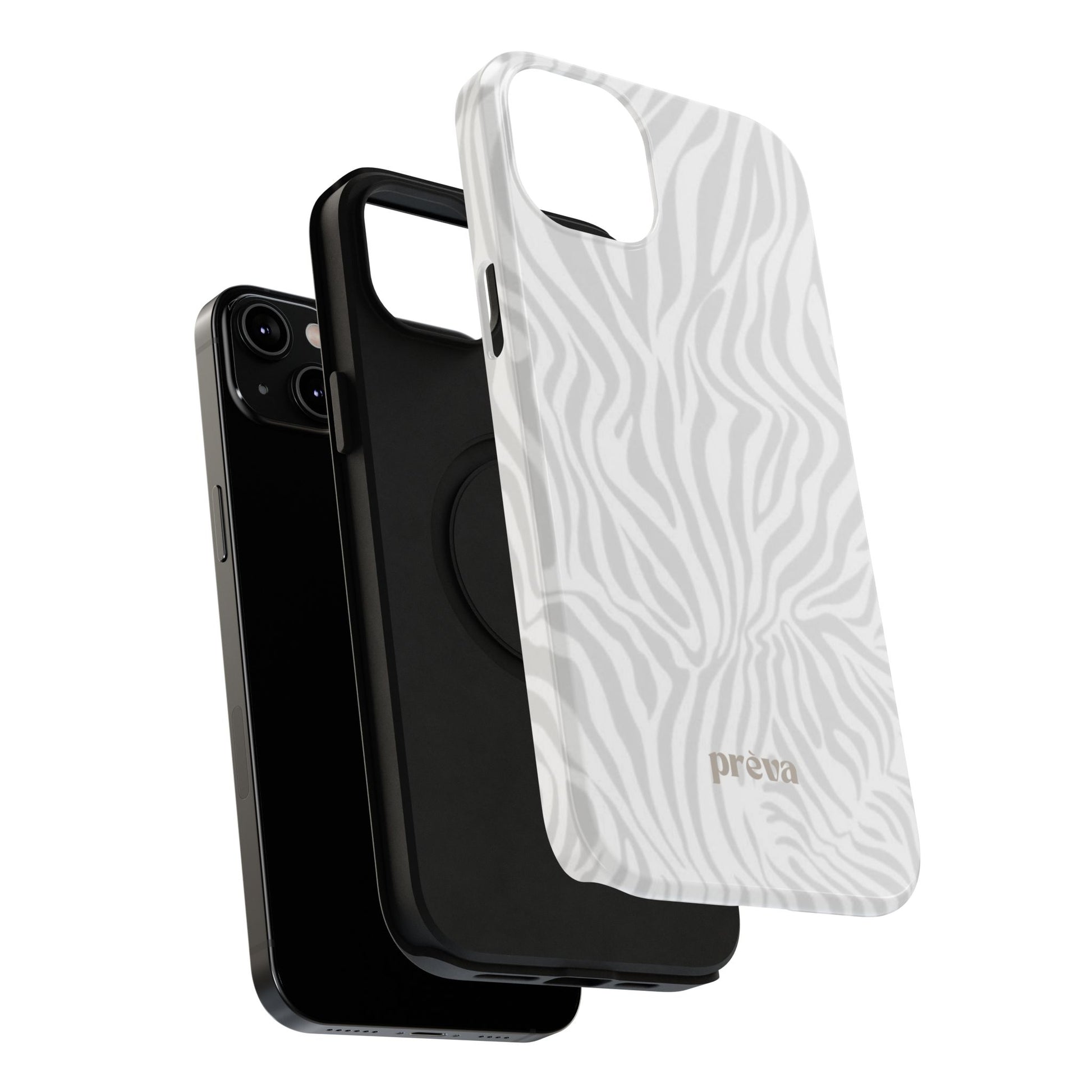 This slim, impact-resistant phone case brings quiet sophistication to everyday carry. A soft, monochrome zebra pattern wraps the exterior in a subtle, textured look that reads understated and modern. The rigid polycarbonate shell and inner TPU liner work together to absorb shocks and resist scratches, while the full-wrap print keeps the design seamless around edges. Choose glossy for a bright, reflective finish or matte for a velvety, low-sheen feel. Lightweight and wireless-charging compatible, it slips into pockets and bags without bulk — built for people who want elevated style and dependable protection during daily commutes, nights out, or travel.