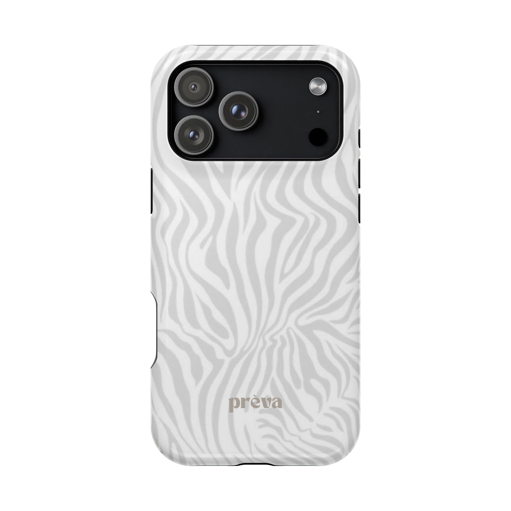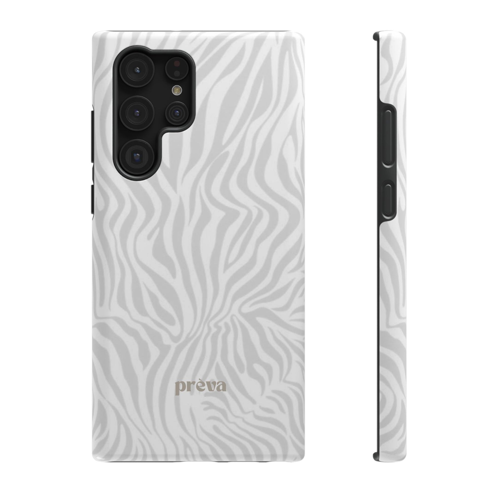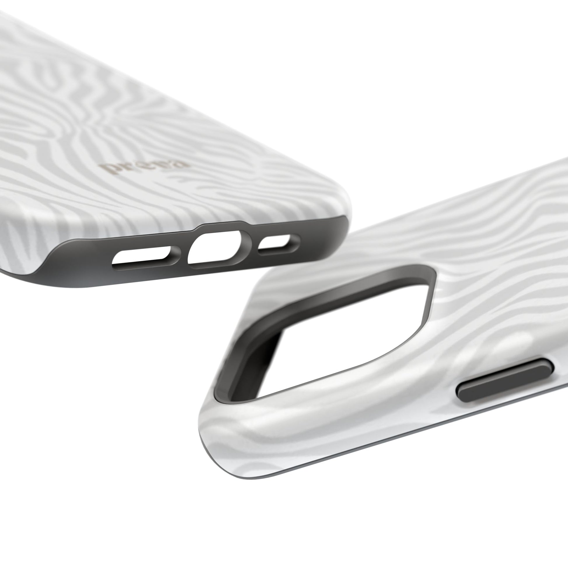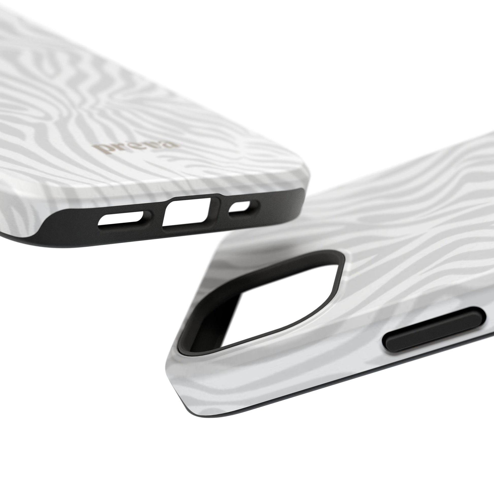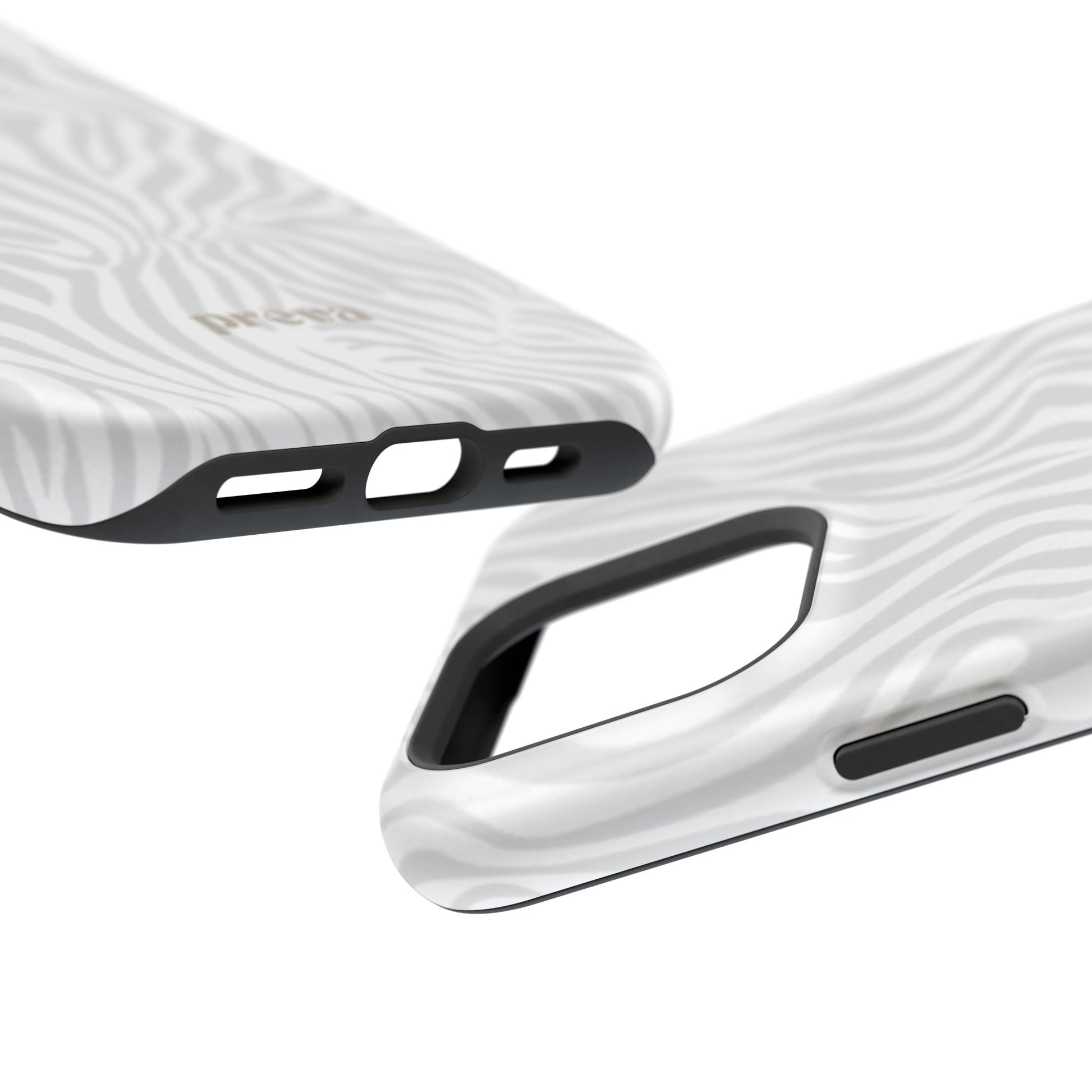 This slim, impact-resistant phone case brings quiet sophistication to everyday carry. A soft, monochrome zebra pattern wraps the exterior in a subtle, textured look that reads understated and modern. The rigid polycarbonate shell and inner TPU liner work together to absorb shocks and resist scratches, while the full-wrap print keeps the design seamless around edges. Choose glossy for a bright, reflective finish or matte for a velvety, low-sheen feel. Lightweight and wireless-charging compatible, it slips into pockets and bags without bulk — built for people who want elevated style and dependable protection during daily commutes, nights out, or travel.