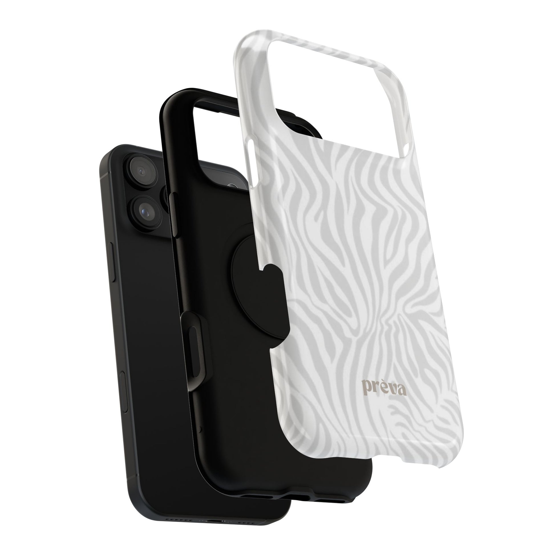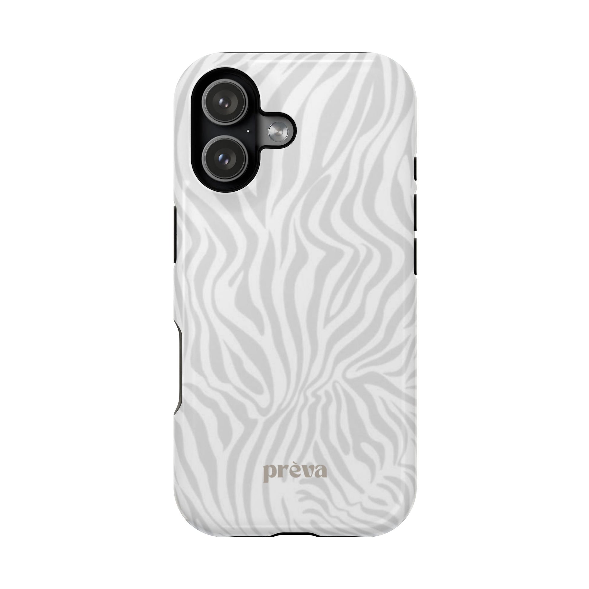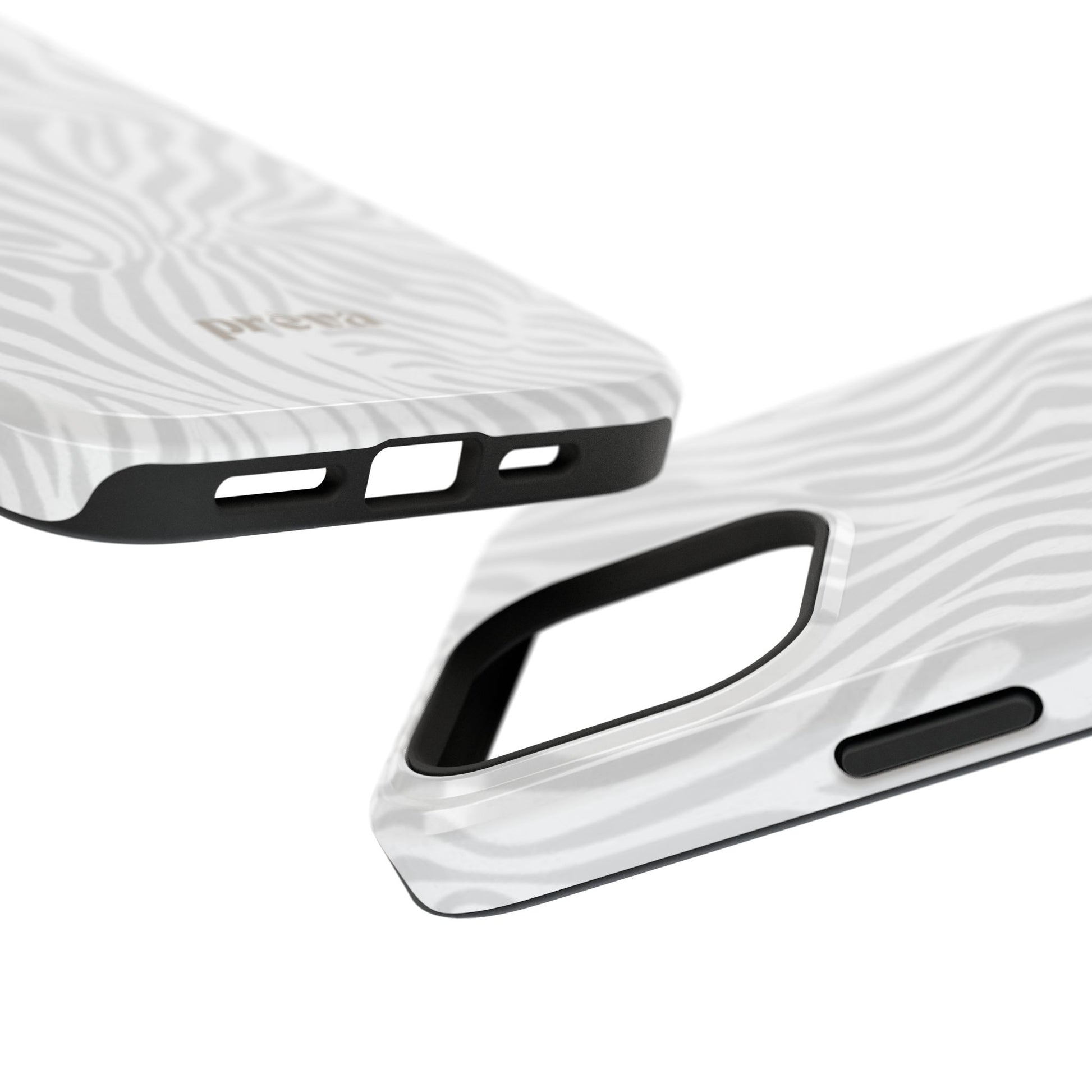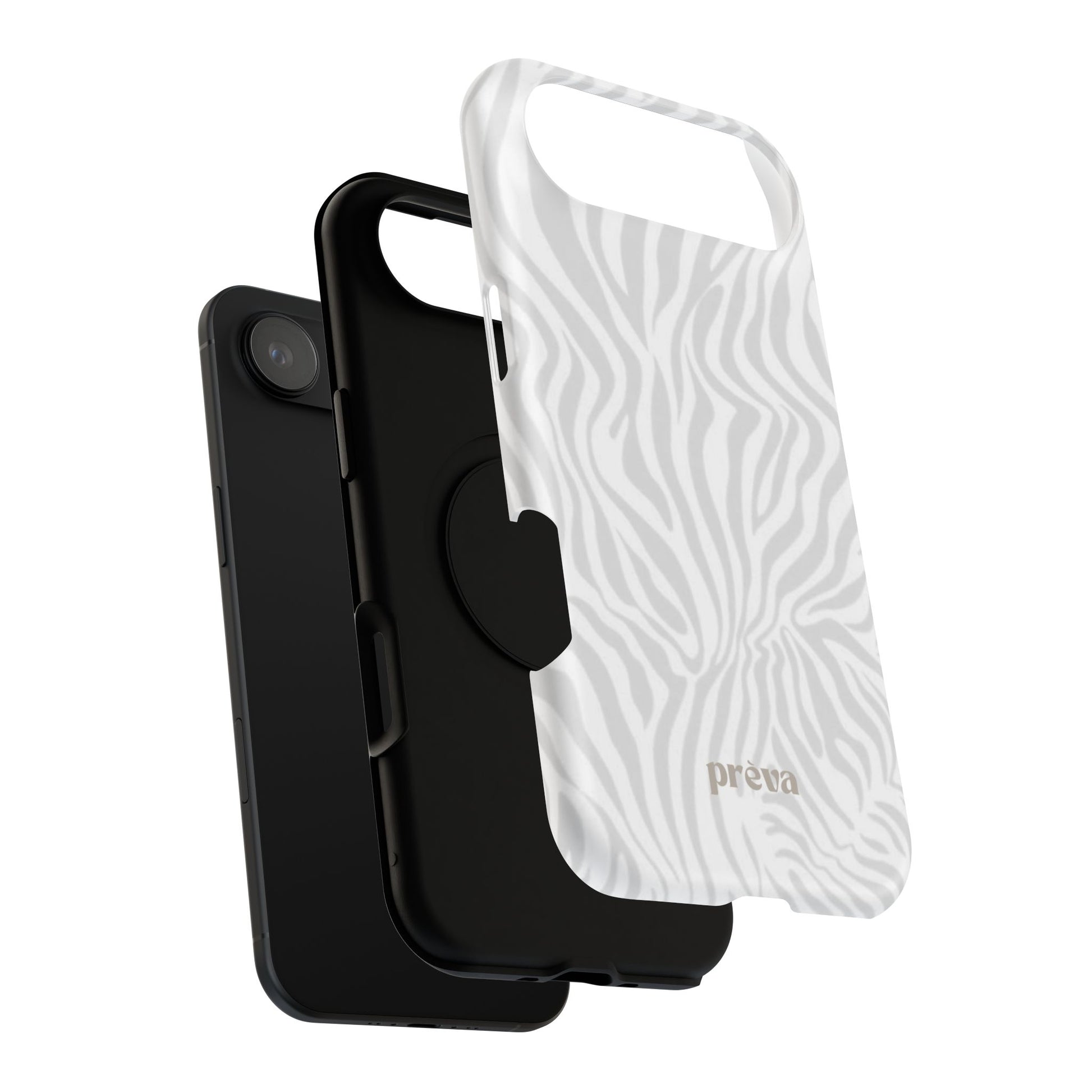 This slim, impact-resistant phone case brings quiet sophistication to everyday carry. A soft, monochrome zebra pattern wraps the exterior in a subtle, textured look that reads understated and modern. The rigid polycarbonate shell and inner TPU liner work together to absorb shocks and resist scratches, while the full-wrap print keeps the design seamless around edges. Choose glossy for a bright, reflective finish or matte for a velvety, low-sheen feel. Lightweight and wireless-charging compatible, it slips into pockets and bags without bulk — built for people who want elevated style and dependable protection during daily commutes, nights out, or travel.