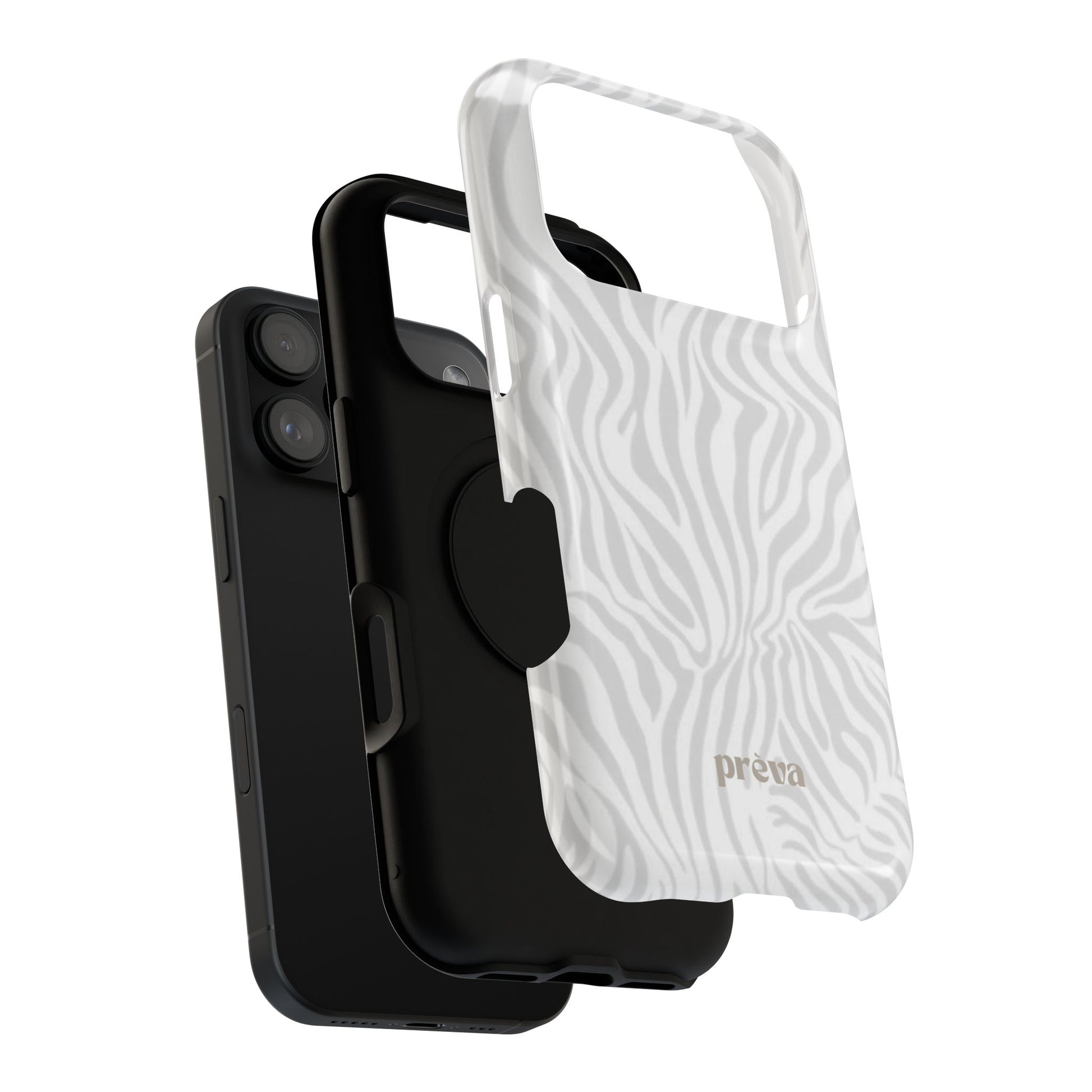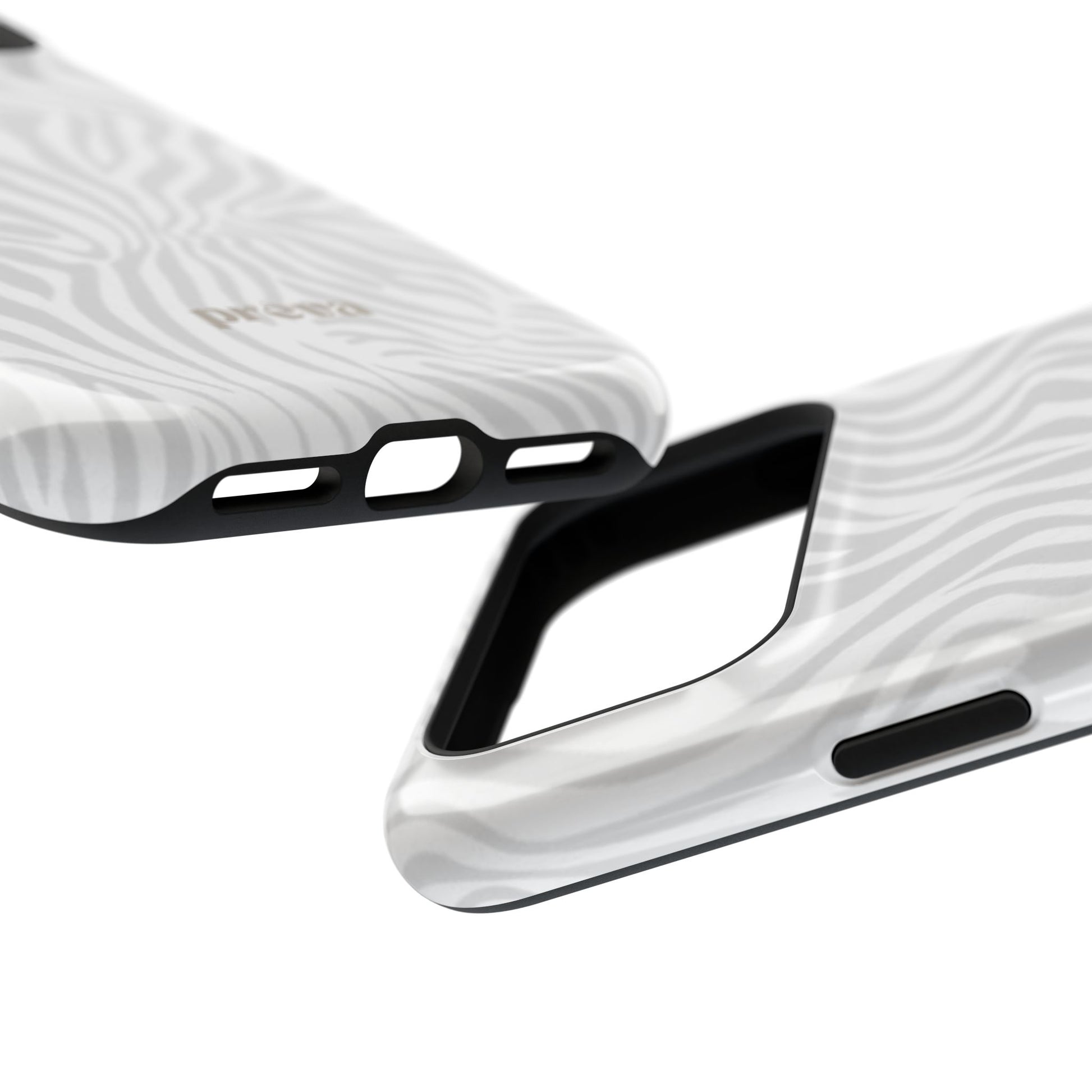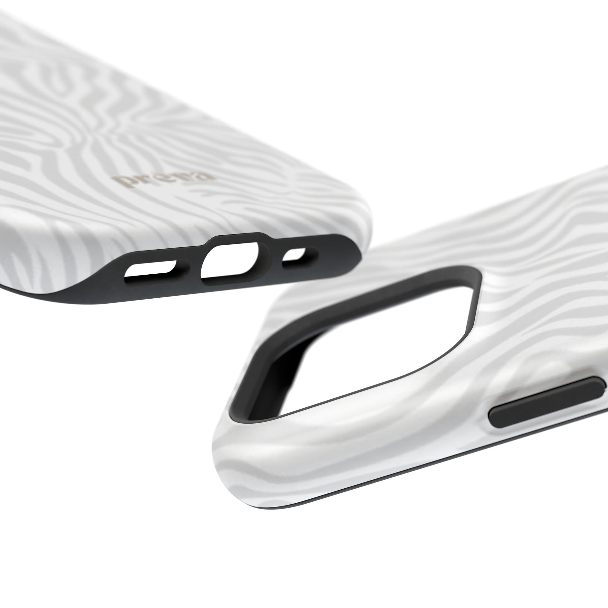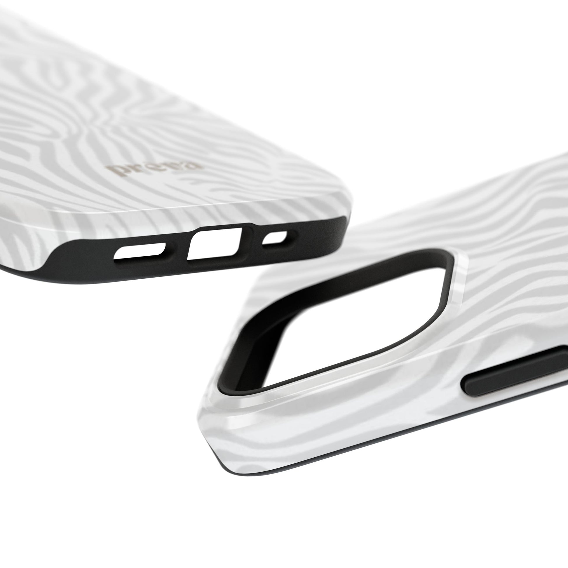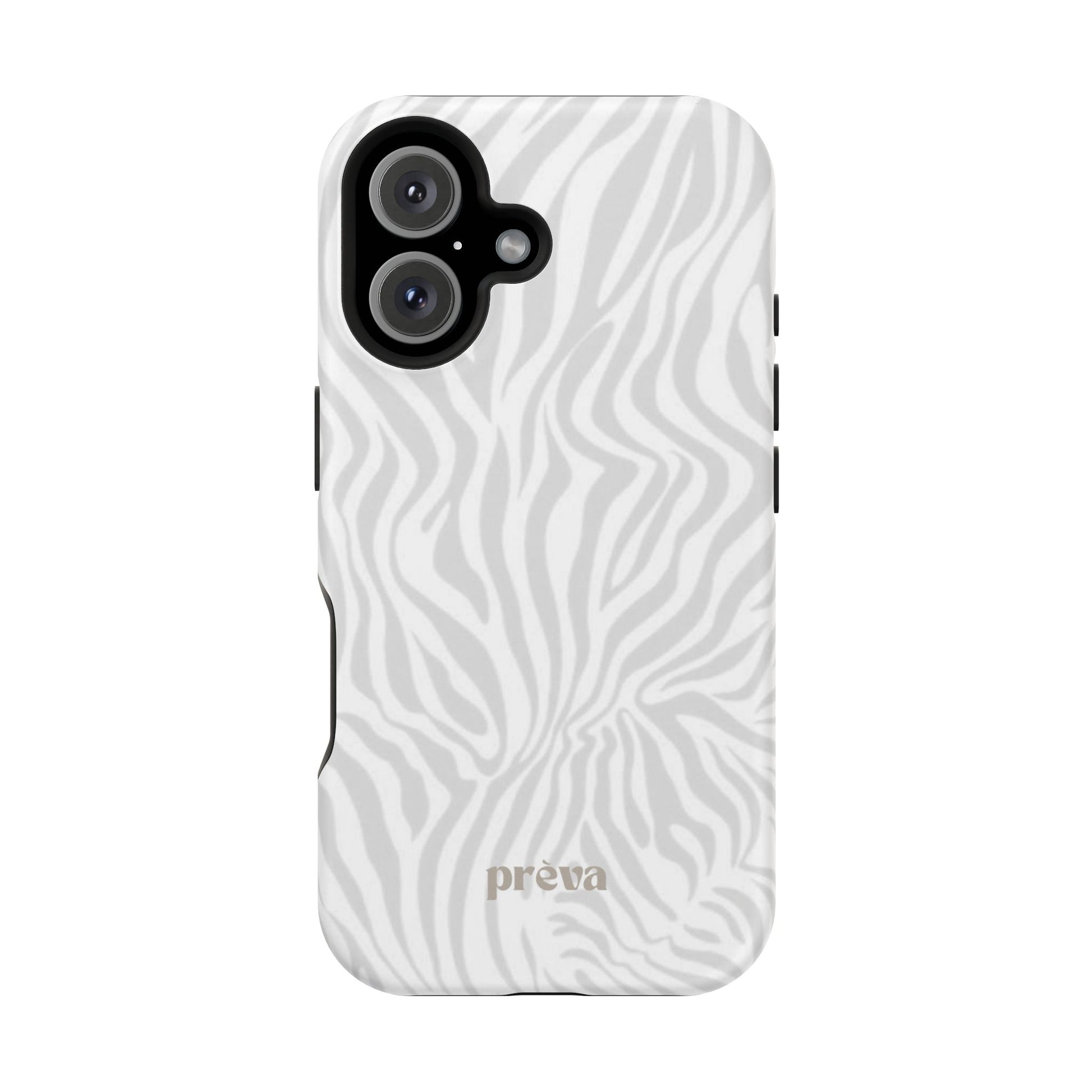 This slim, impact-resistant phone case brings quiet sophistication to everyday carry. A soft, monochrome zebra pattern wraps the exterior in a subtle, textured look that reads understated and modern. The rigid polycarbonate shell and inner TPU liner work together to absorb shocks and resist scratches, while the full-wrap print keeps the design seamless around edges. Choose glossy for a bright, reflective finish or matte for a velvety, low-sheen feel. Lightweight and wireless-charging compatible, it slips into pockets and bags without bulk — built for people who want elevated style and dependable protection during daily commutes, nights out, or travel.
